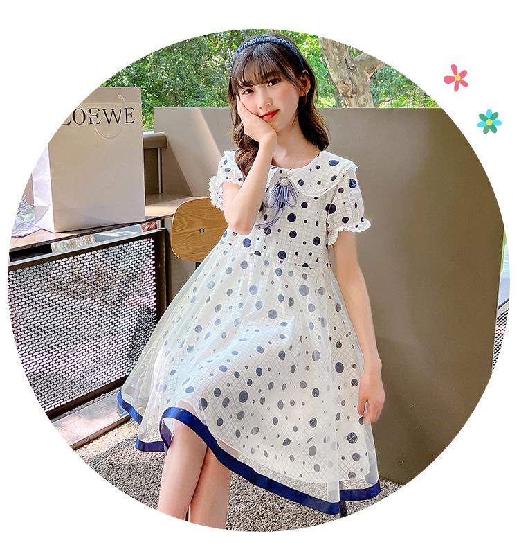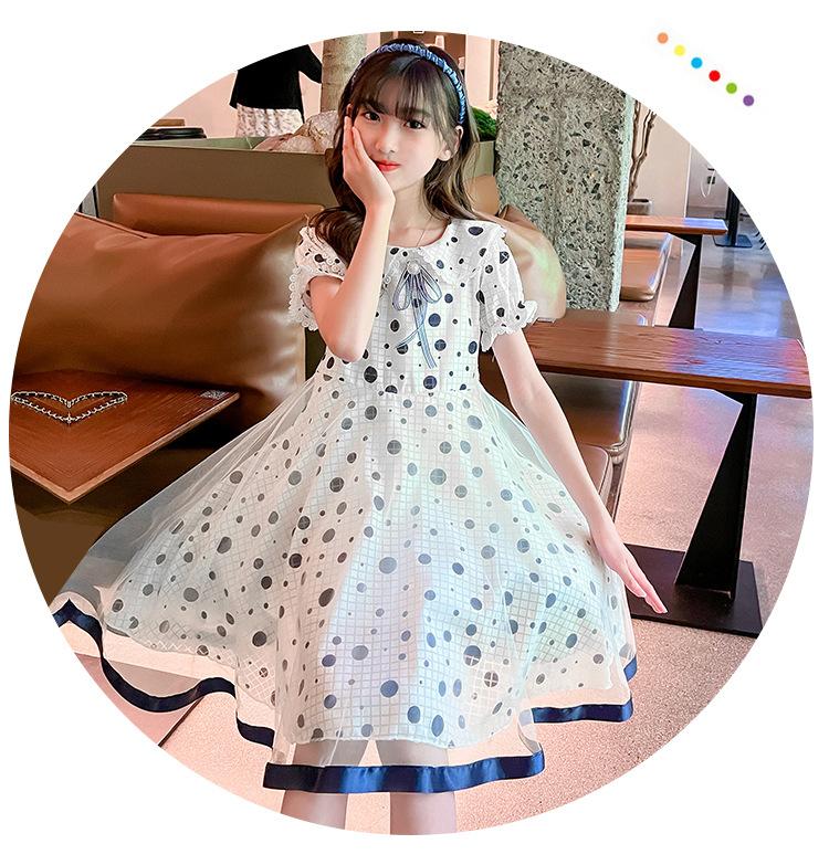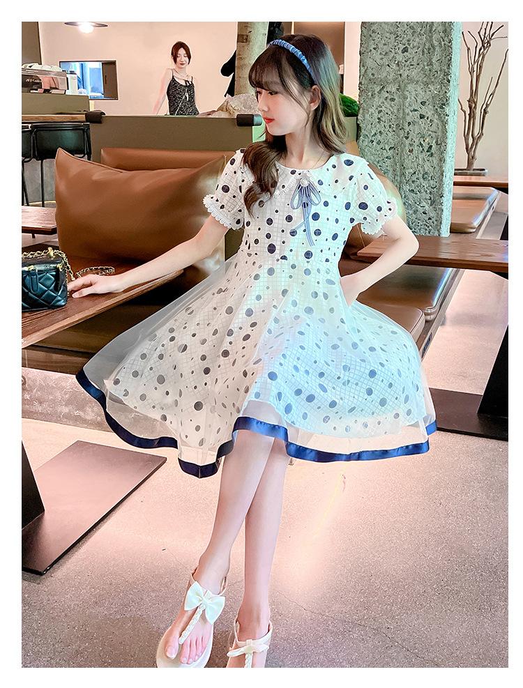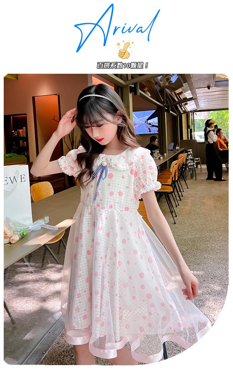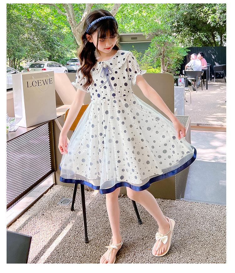 Vestido de Verano para Niñas Dulce y Lindo de Lunares Moda para Niñas Casual Estilo Occidental Falda Midi de Lunares