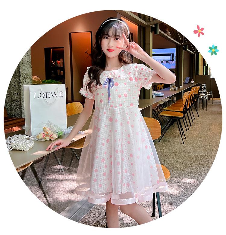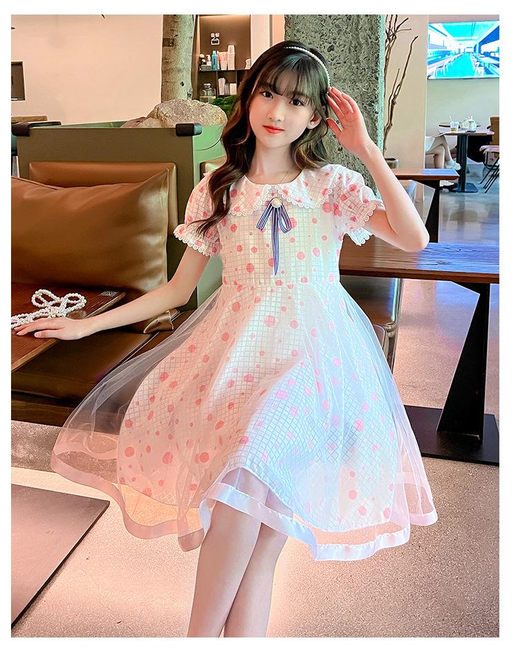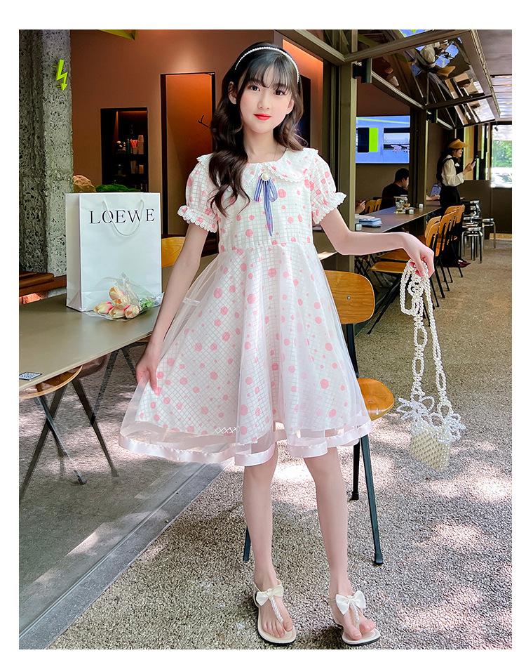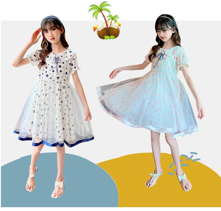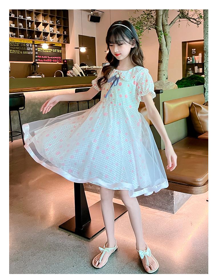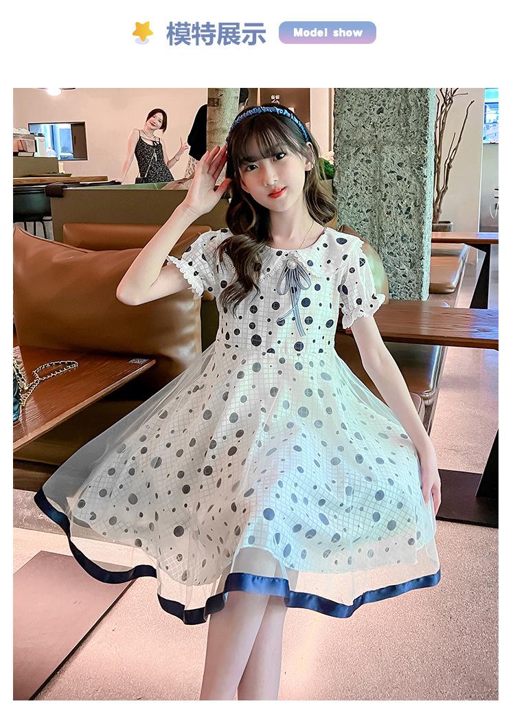 Vestido de Verano para Niñas Dulce y Lindo de Lunares Moda para Niñas Casual Estilo Occidental Falda Midi de Lunares