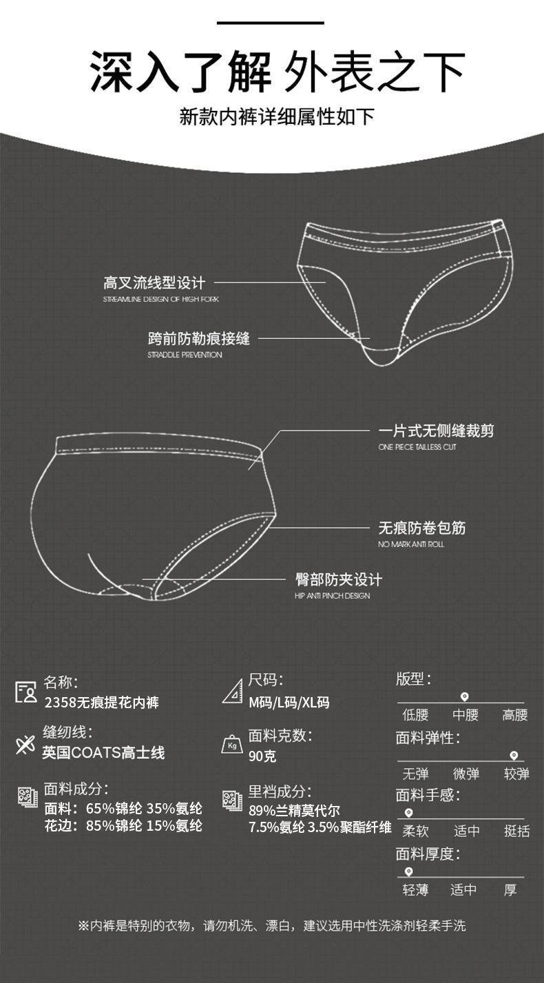 No trace, Quick drying, Breathable, Invisible, Anti-running light