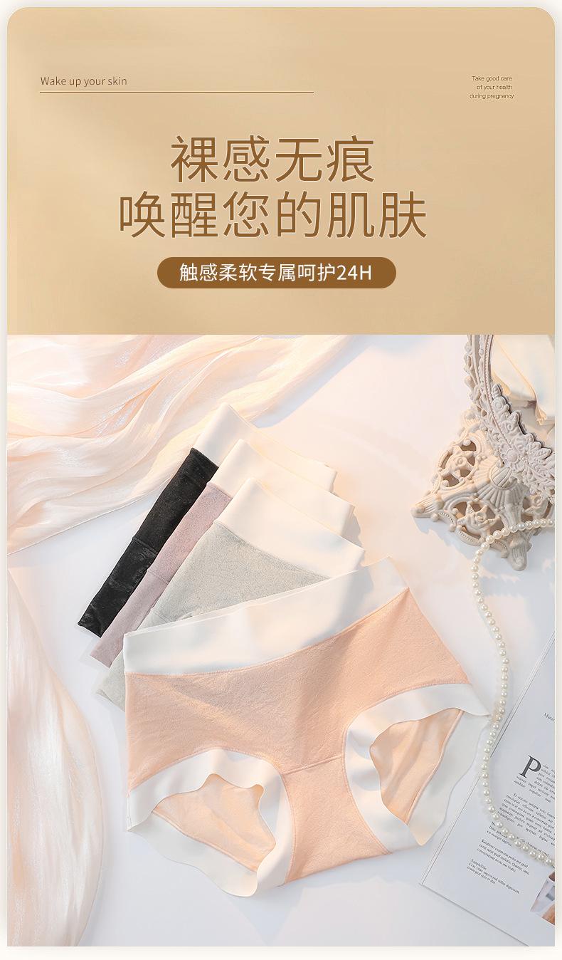 Ropa interior nueva sin costuras invisible de cintura media para mujer, fresca de seda de hielo, modal para mujer, antibacteriana, sexy, para verano
