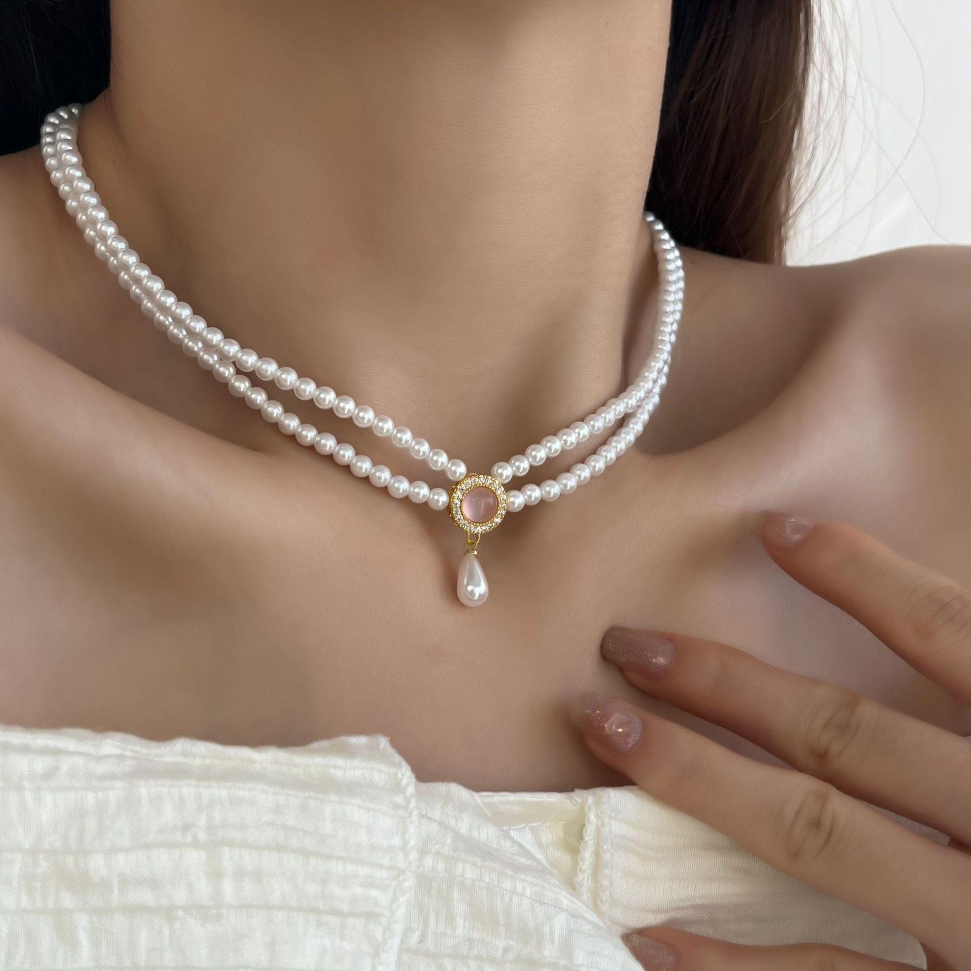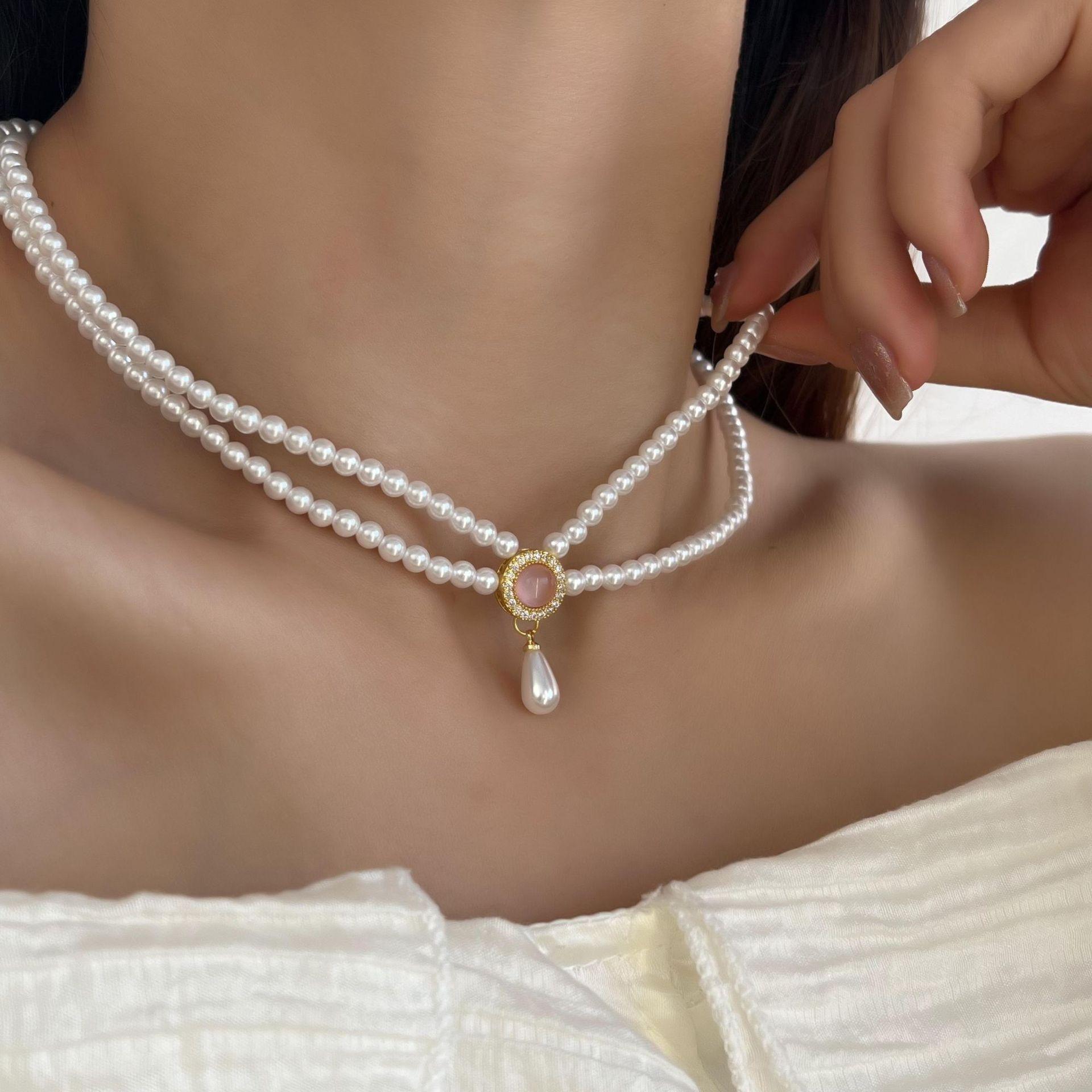 Collar de perlas estilo francés, calcedonia rosa, nuevo colgante de perlas de moda, elegante, de alta calidad, regalo que combina con todo, joyería