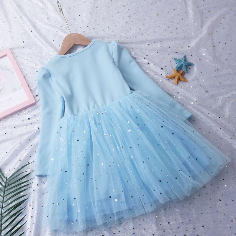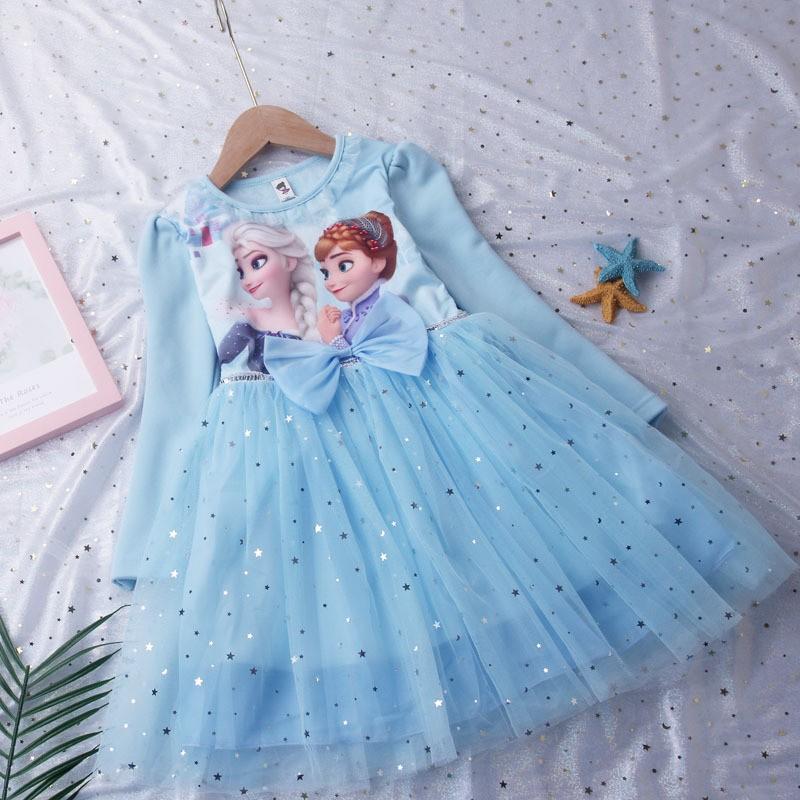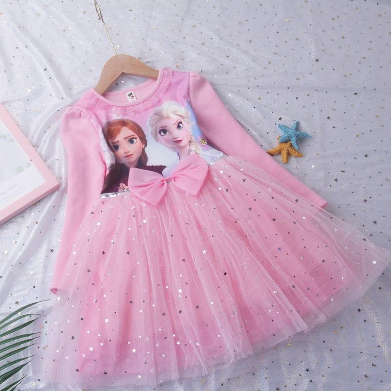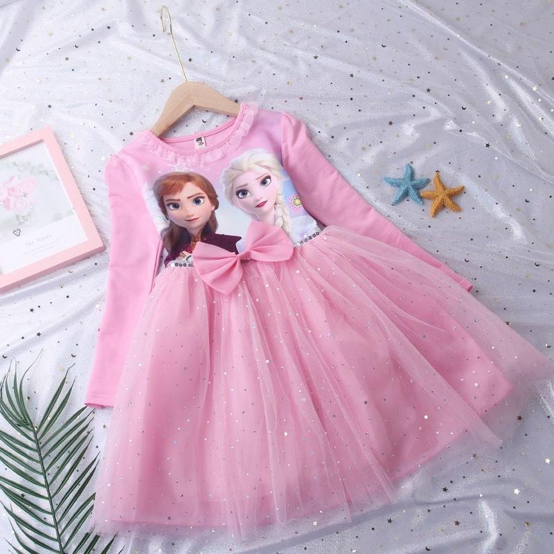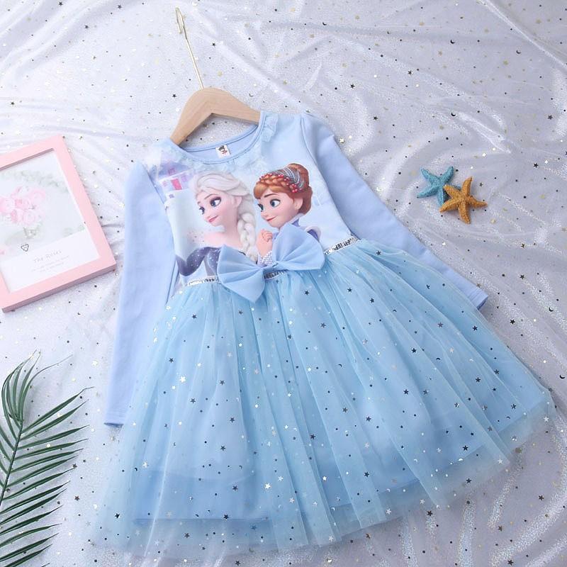 Vestido de Princesa Frozen 2025 Niñas Elsa Manga Larga Ropa de Otoño para Bebé Vestido de Gasa Abullonado para Niños Vestido de Cumpleaños Trendy