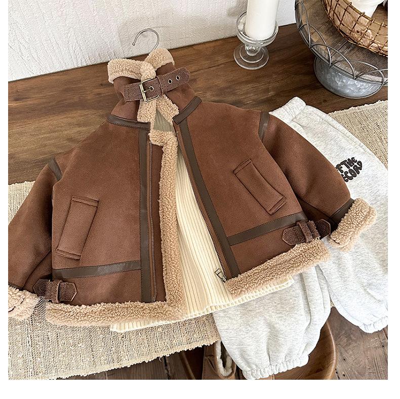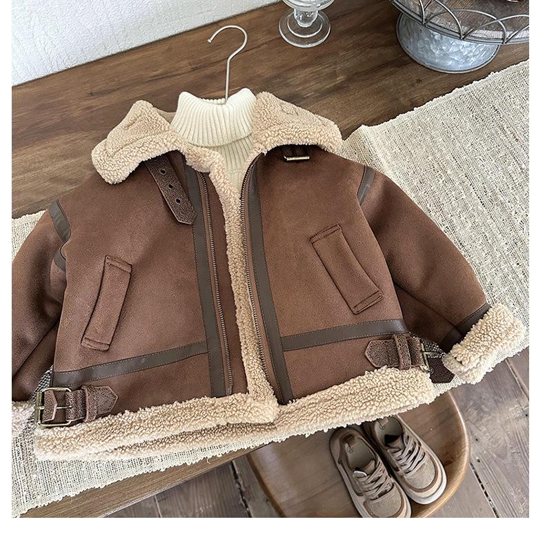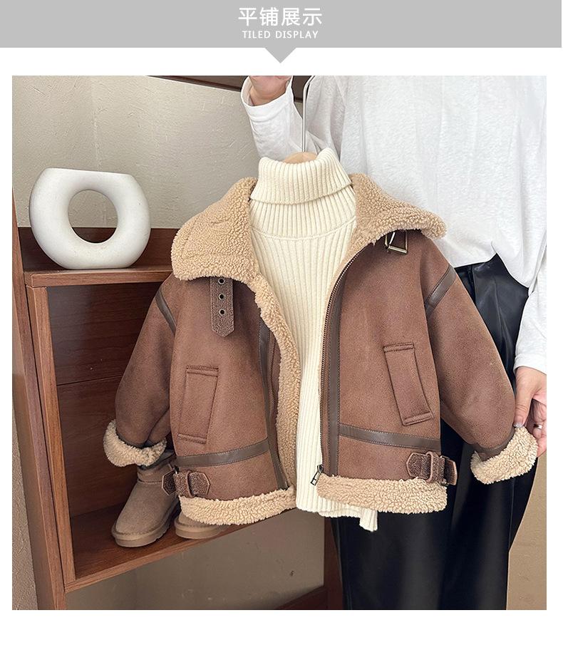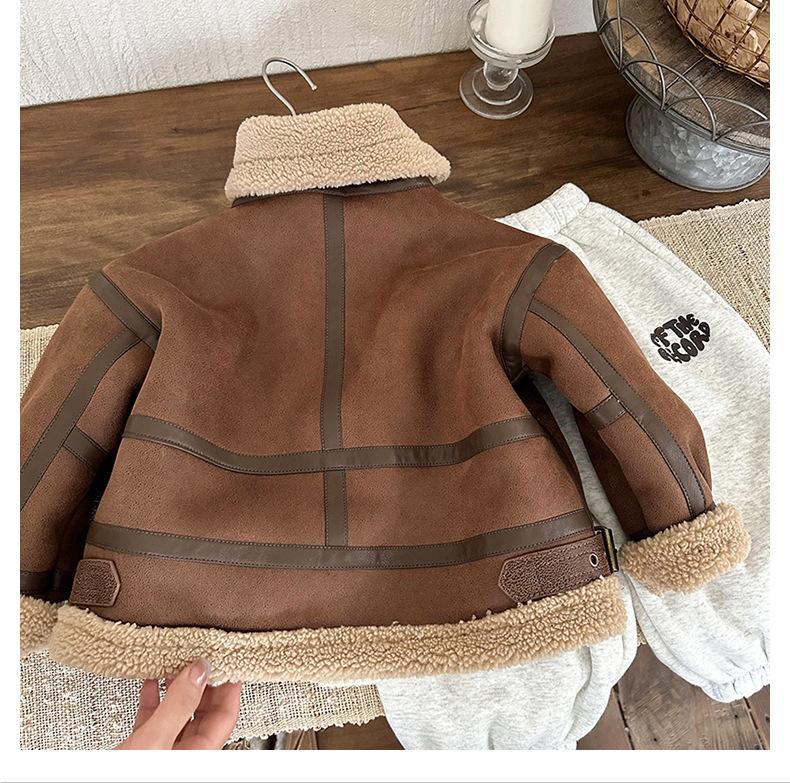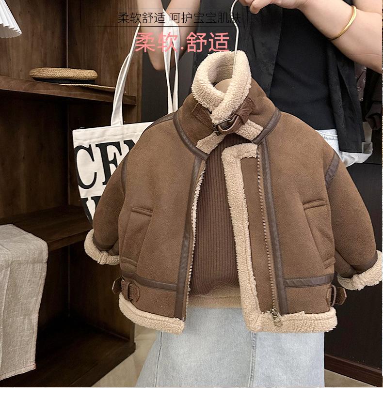 Chaqueta de Cuero de Borreguito de Una Pieza para Niño Invierno 2024 Nuevo Chaqueta para Niña con Forro Polar de Borreguito