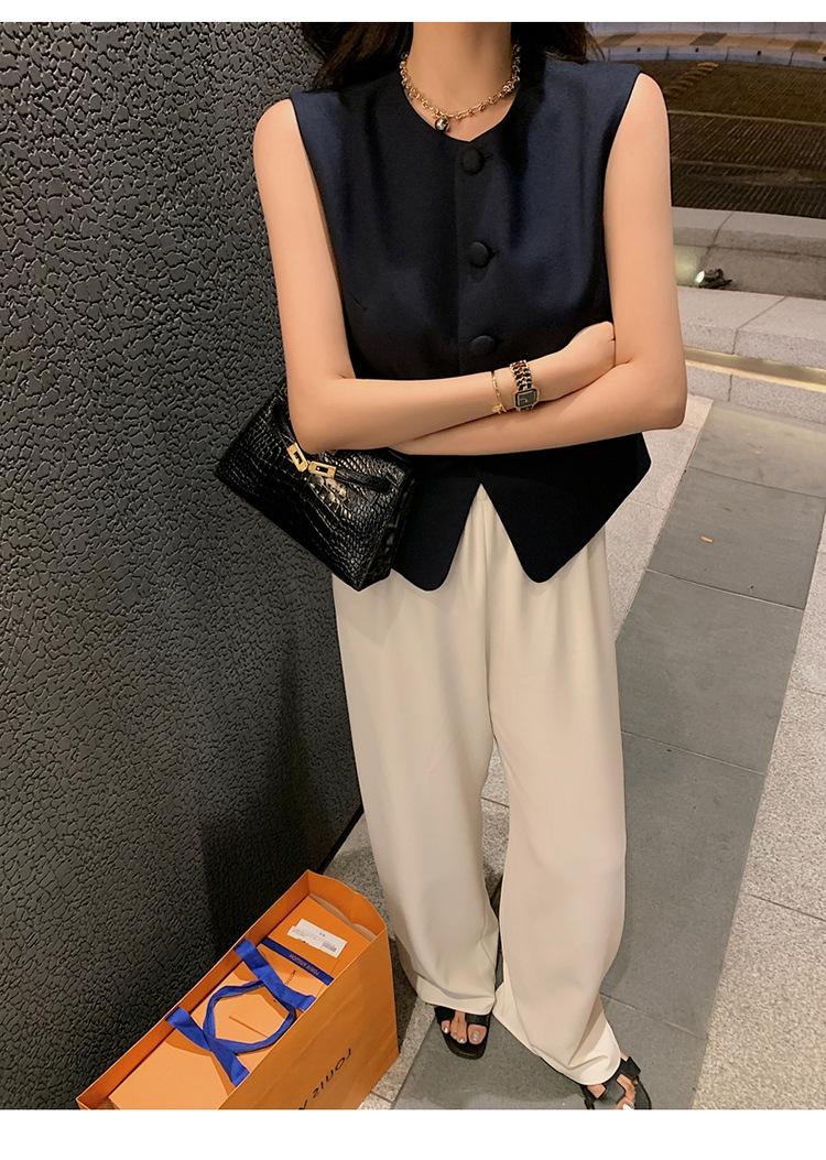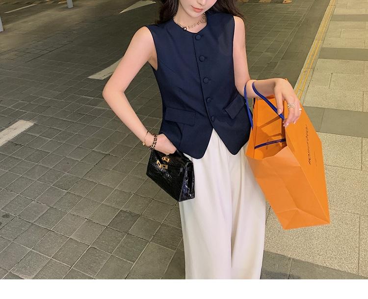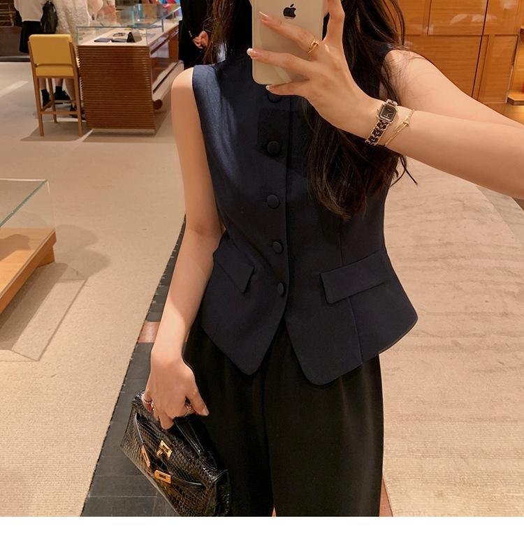 El chaleco de traje es un chaleco sin mangas entallado con cuello redondo.