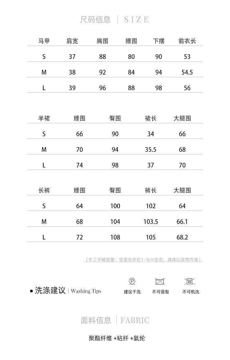 Esta serie tiene tres estilos de chaleco/falda/pantalón