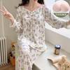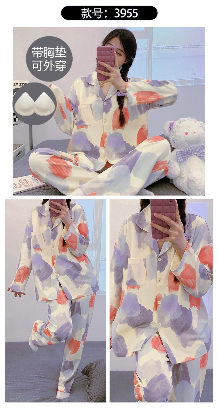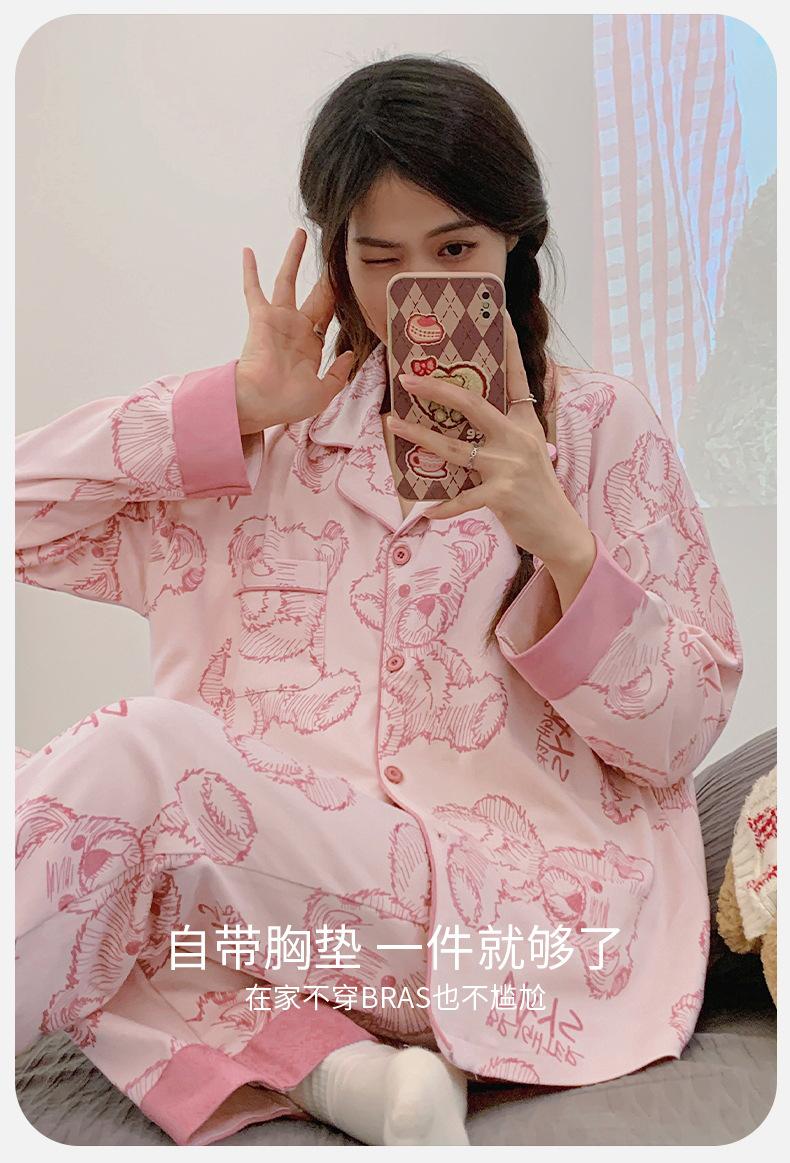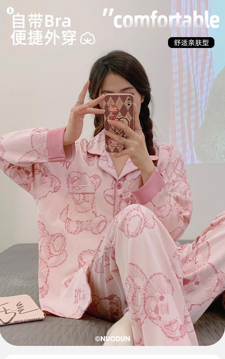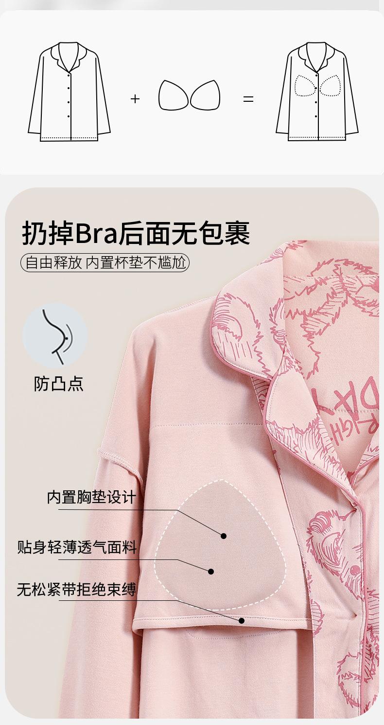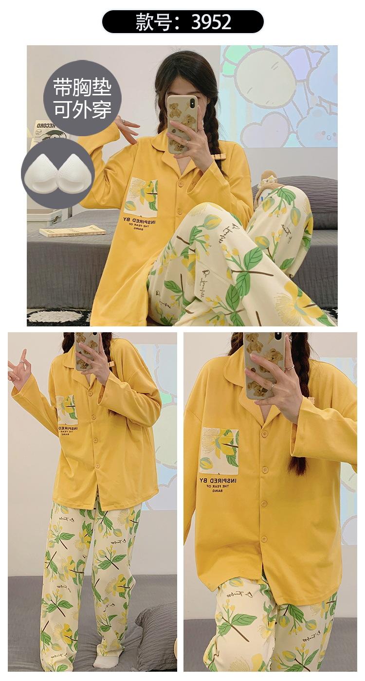 Pijama de mujer de primavera y otoño de algodón puro de manga larga, cárdigan de verano para mujer, ropa informal para el hogar con almohadilla para el pecho
