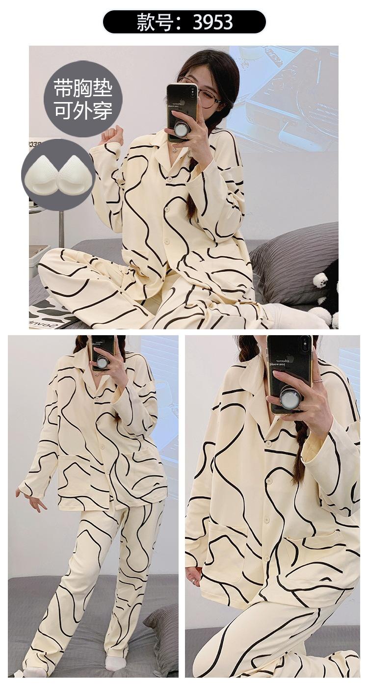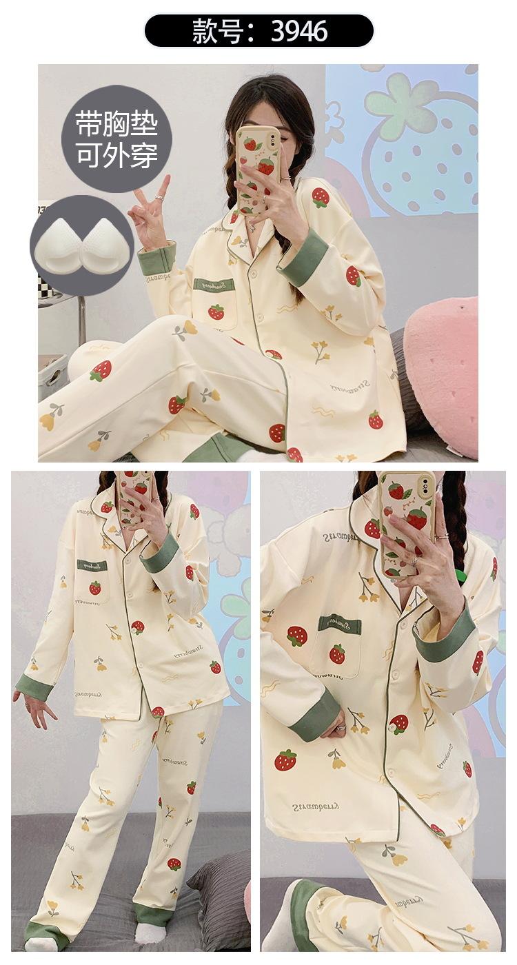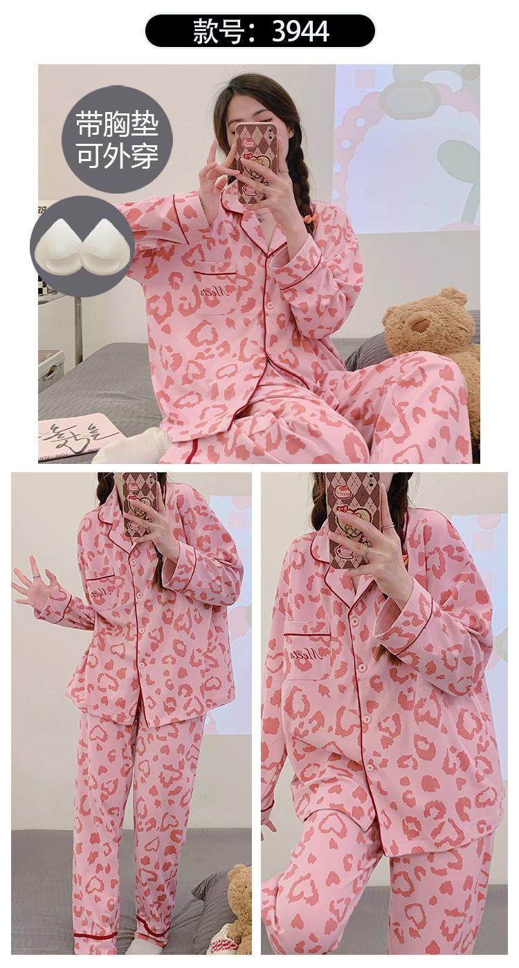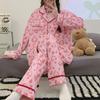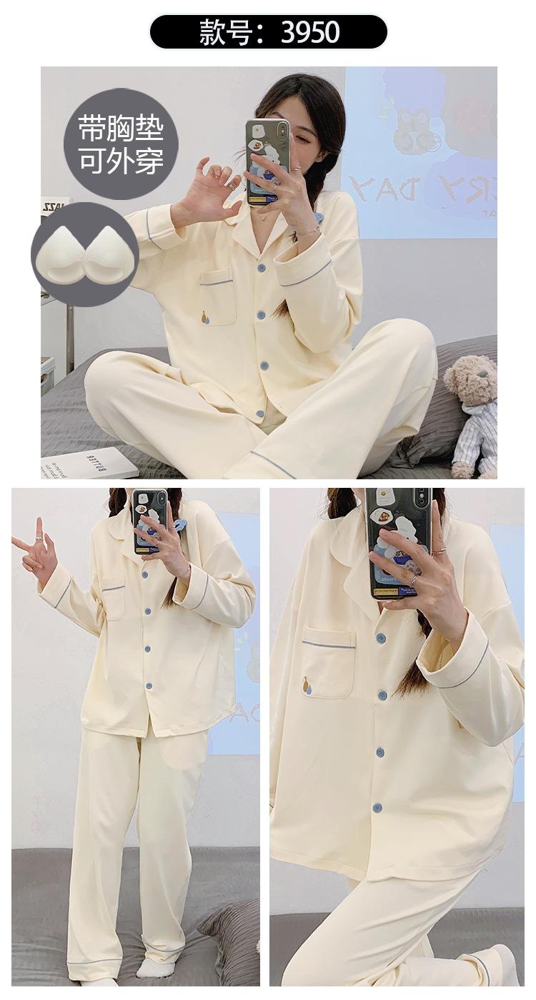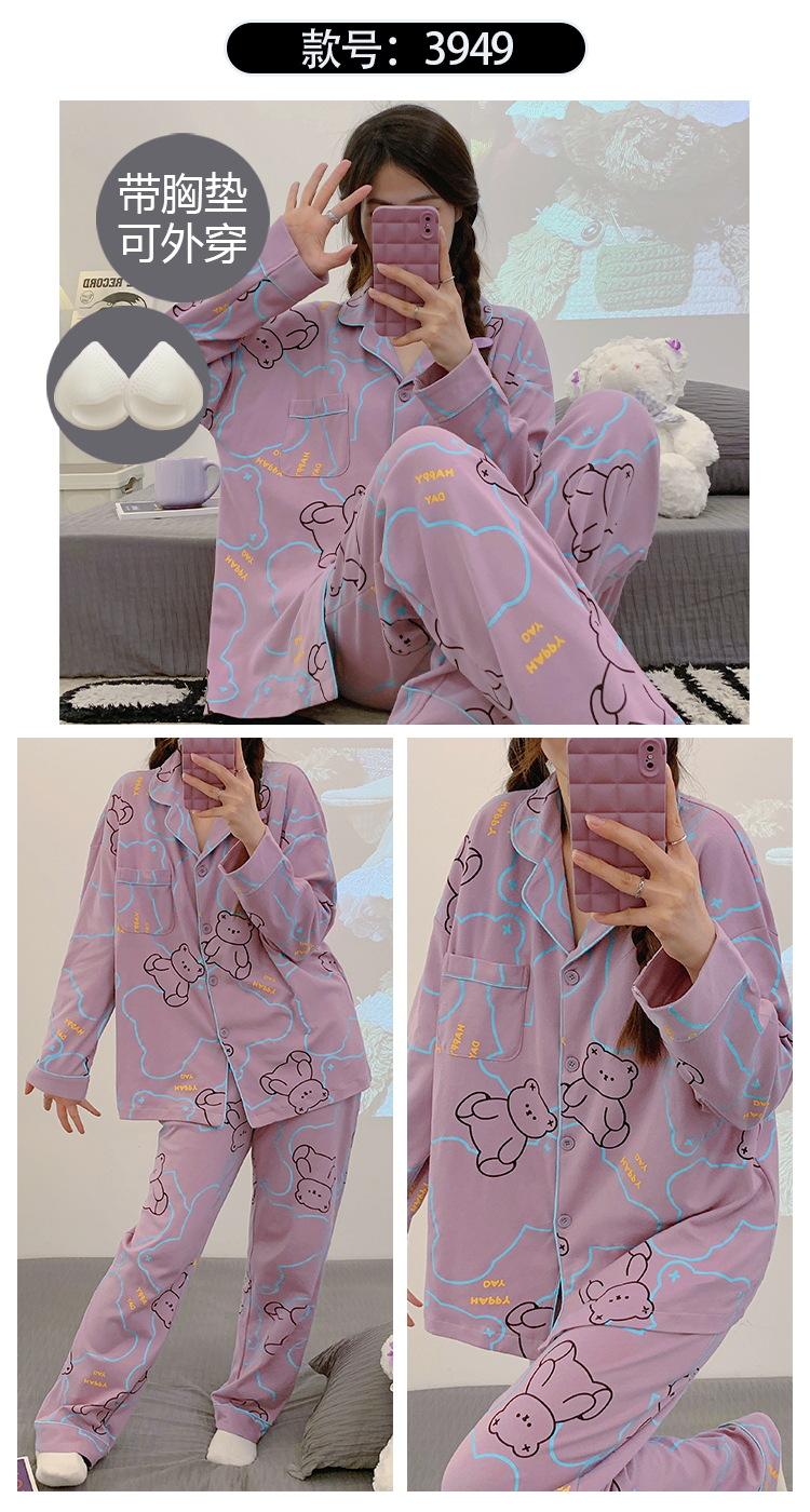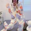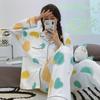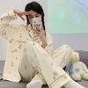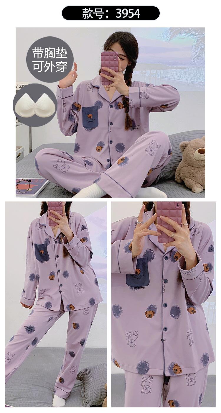 Pijama de mujer de primavera y otoño de algodón puro de manga larga, cárdigan de verano para mujer, ropa informal para el hogar con almohadilla para el pecho
