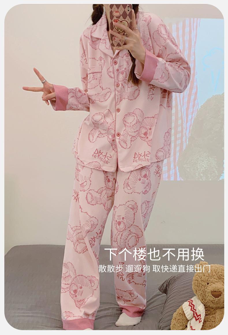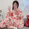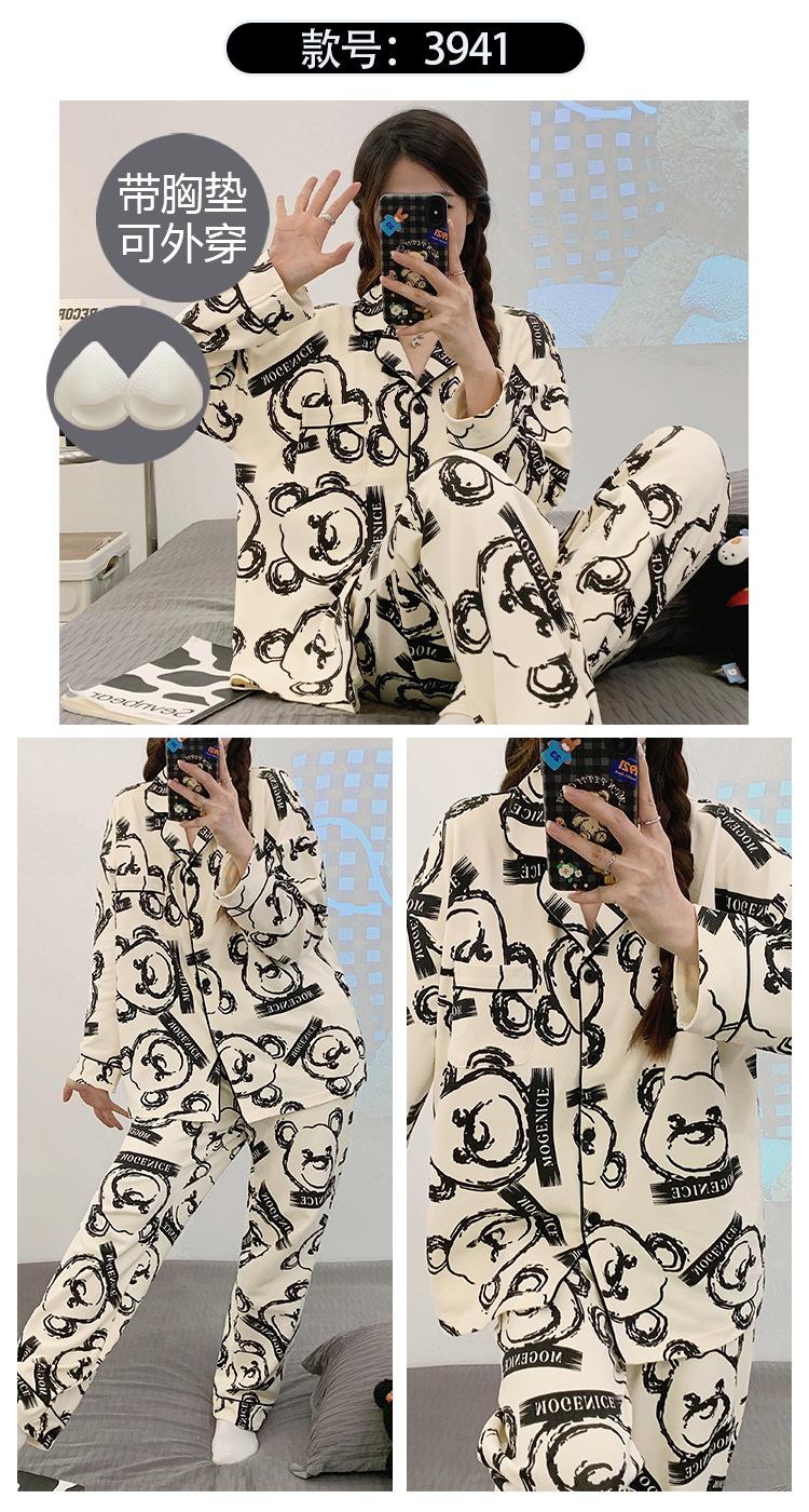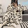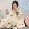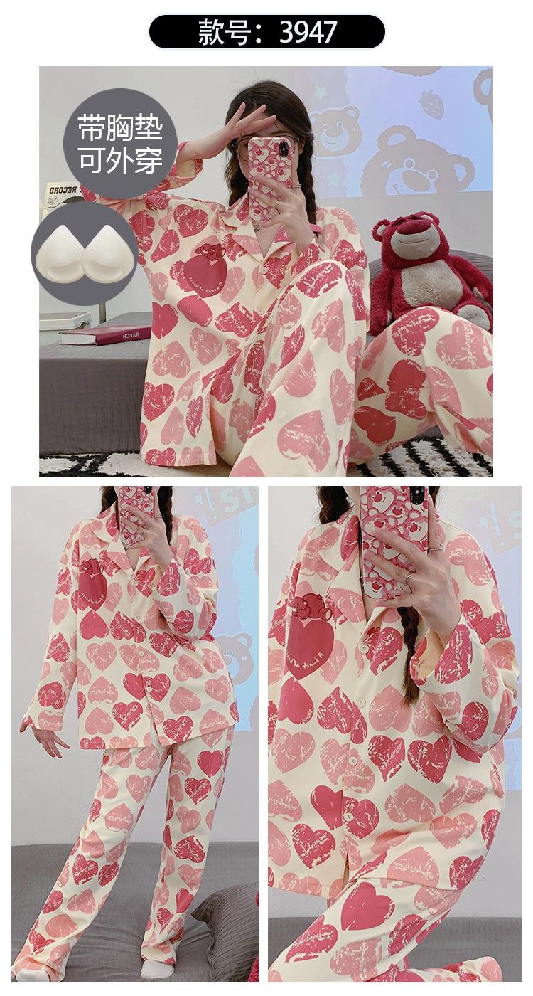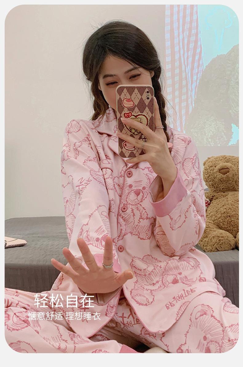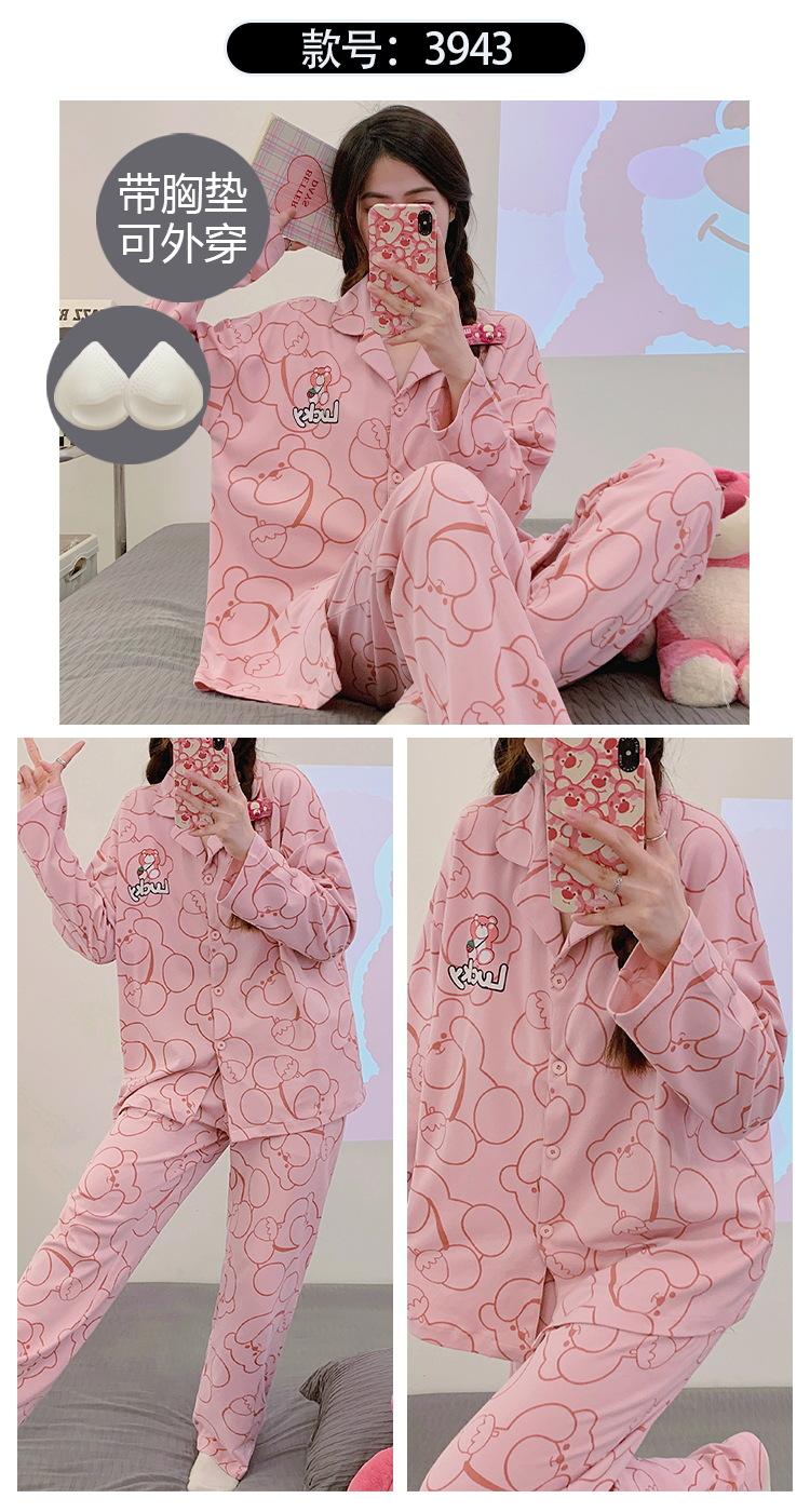Pijama de mujer de primavera y otoño de algodón puro de manga larga, cárdigan de verano para mujer, ropa informal para el hogar con almohadilla para el pecho