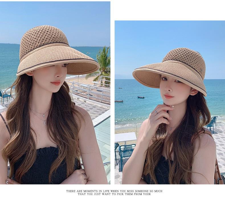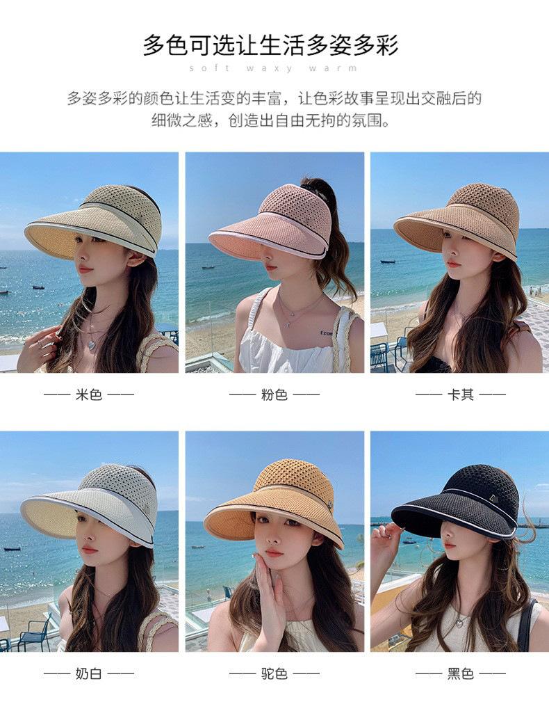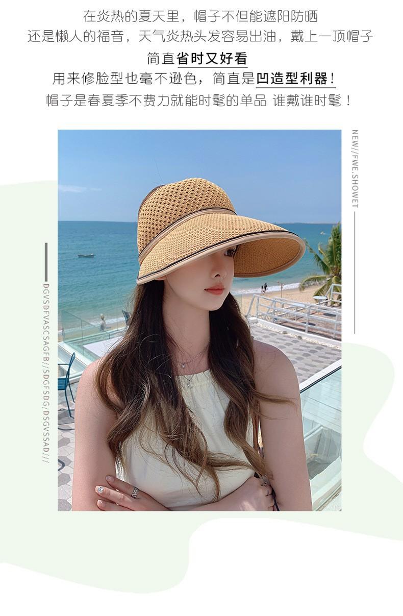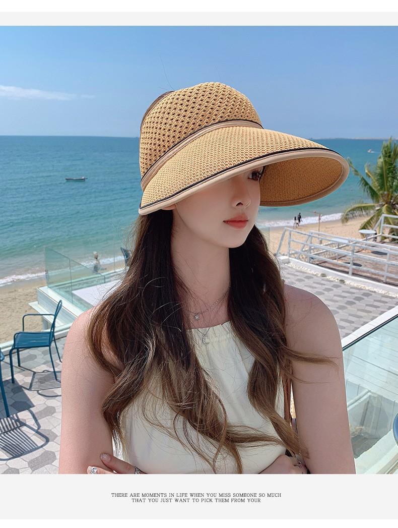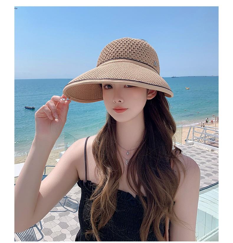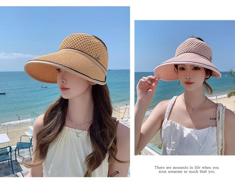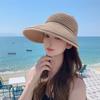 Sombrero de paja para mujer, de verano, con parte superior vacía, protección solar, hueco, transpirable, ala grande, cubre la cara, pequeño, para viajes al aire libre, sombrero para el sol en la playa.