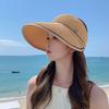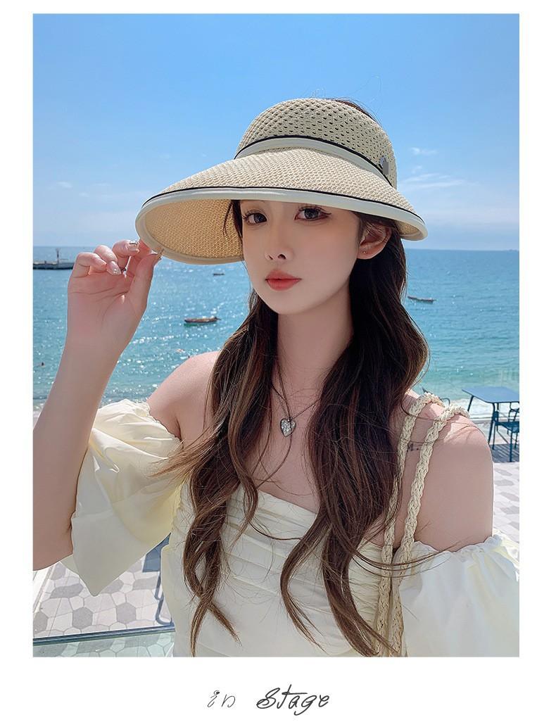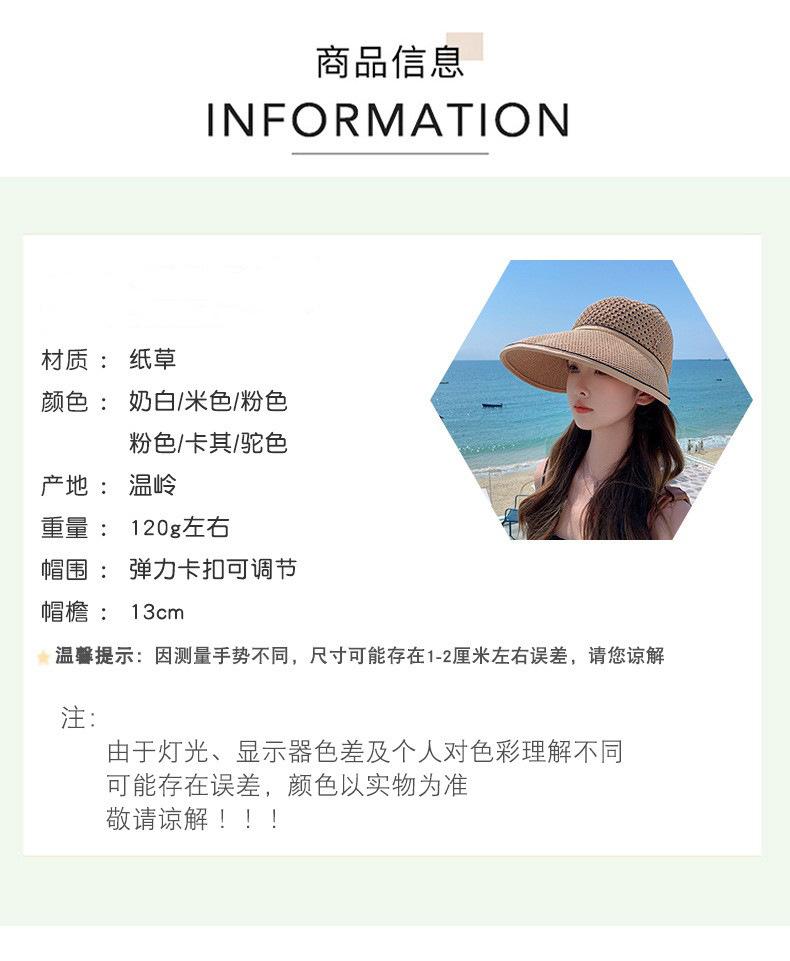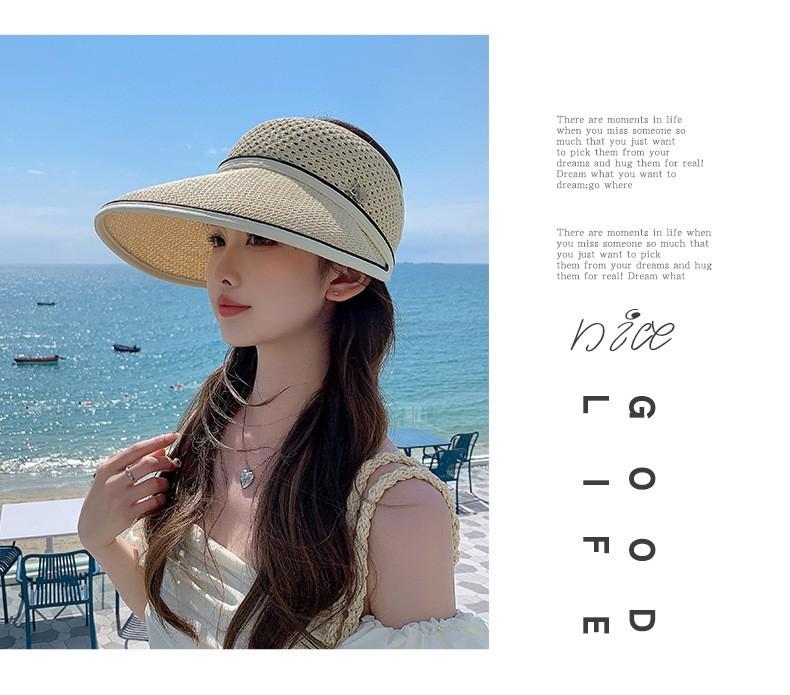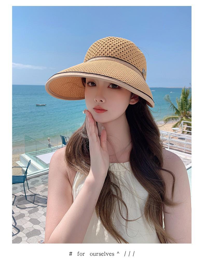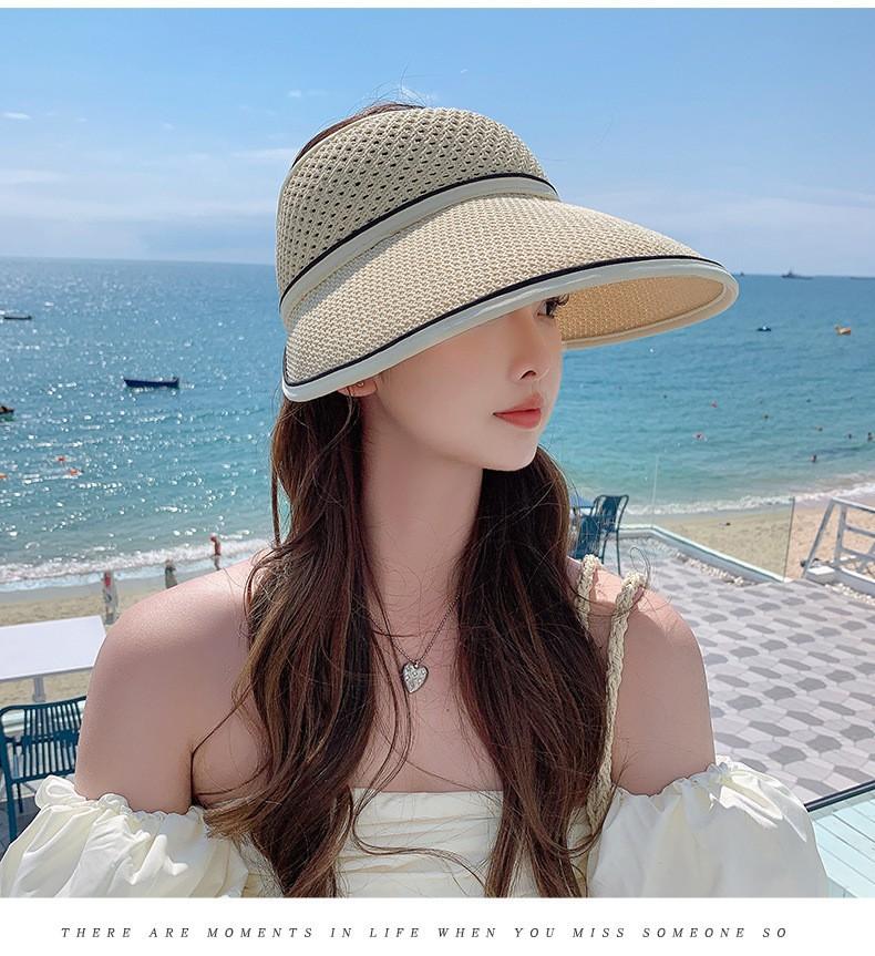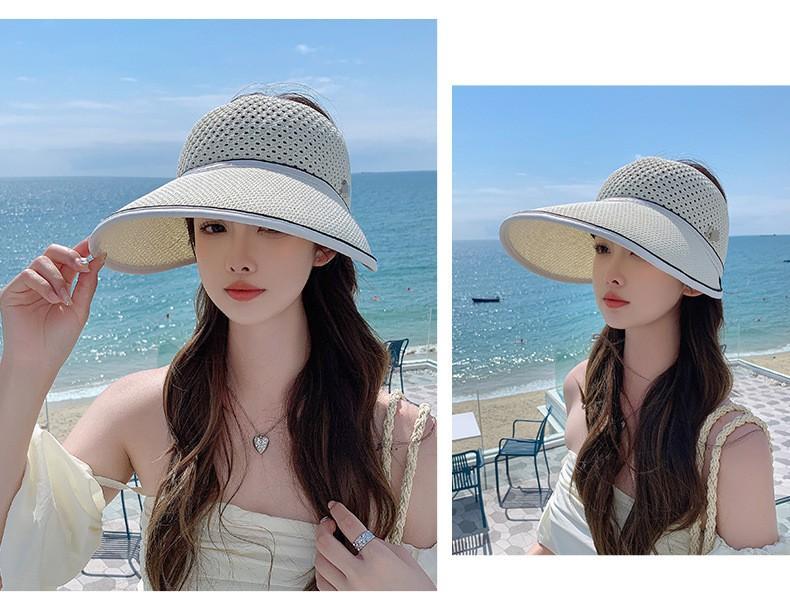 Sombrero de paja para mujer, de verano, con parte superior vacía, protección solar, hueco, transpirable, ala grande, cubre la cara, pequeño, para viajes al aire libre, sombrero para el sol en la playa.