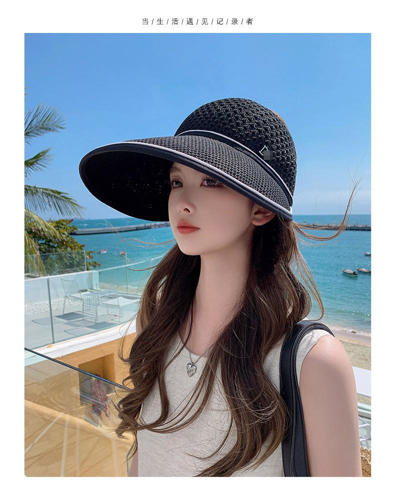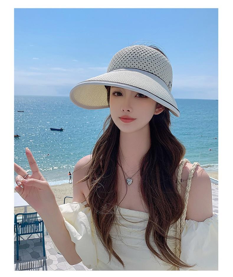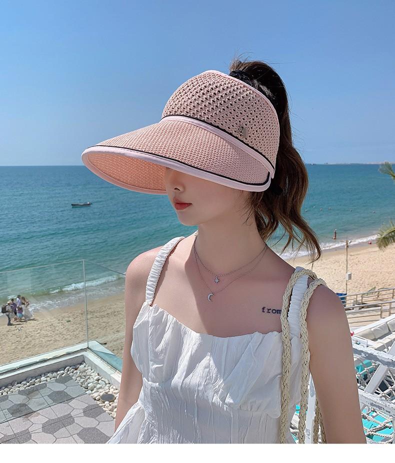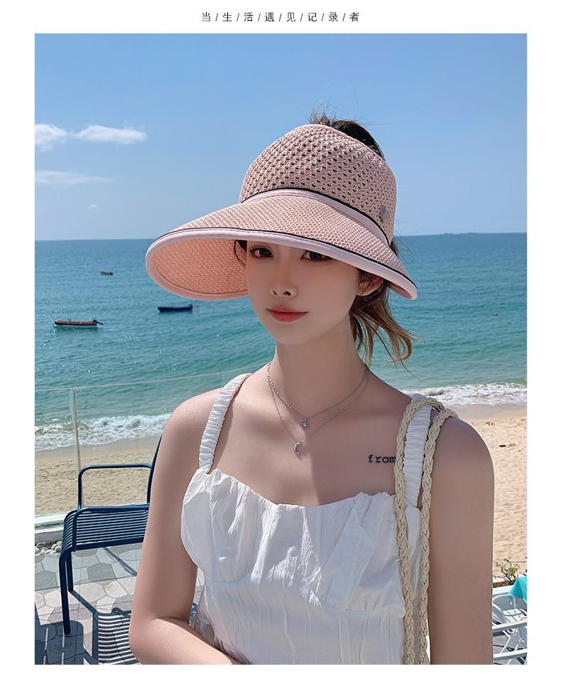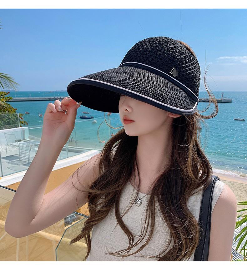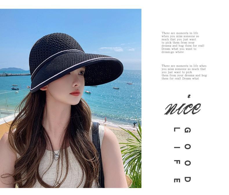 Sombrero de paja para mujer, de verano, con parte superior vacía, protección solar, hueco, transpirable, ala grande, cubre la cara, pequeño, para viajes al aire libre, sombrero para el sol en la playa.