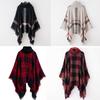 Capa dividida con borlas espinosas y cuadros gruesos para mujer, nueva capa dividida de otoño e invierno de Europa y América, comercio exterior de Amazon