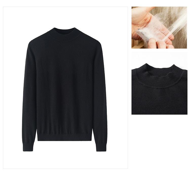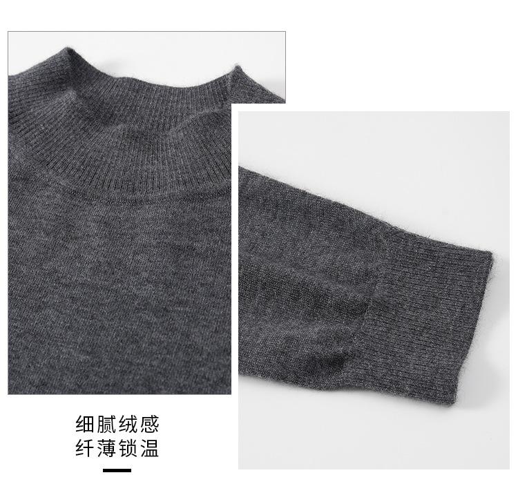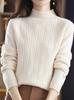 Suéter de Cachemira Pura Peinada Estilo Otoño 2024 para Mujer, Europeo y Americano Simple de Cuello Alto Ajustado para Combinar con Todo