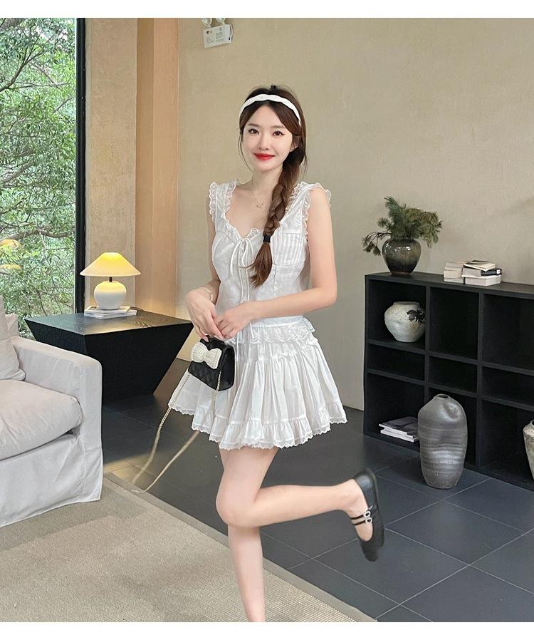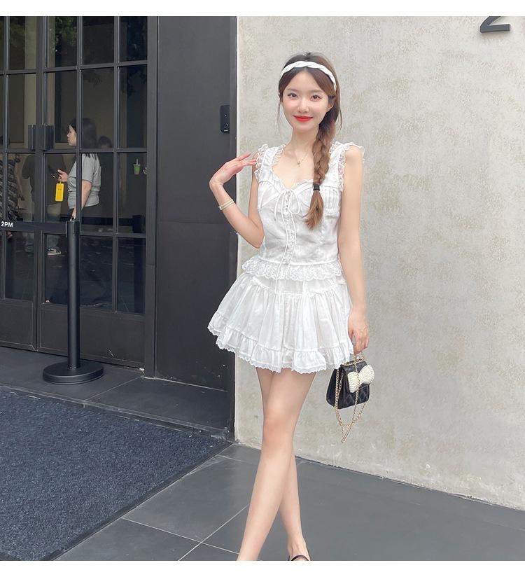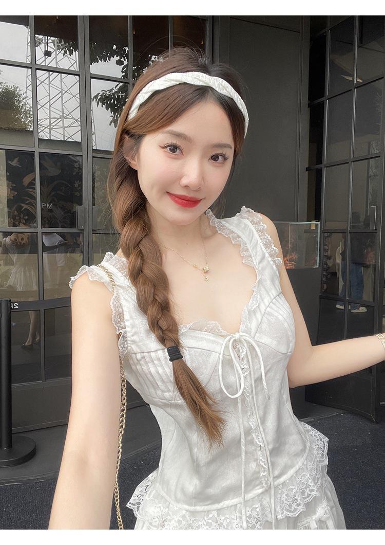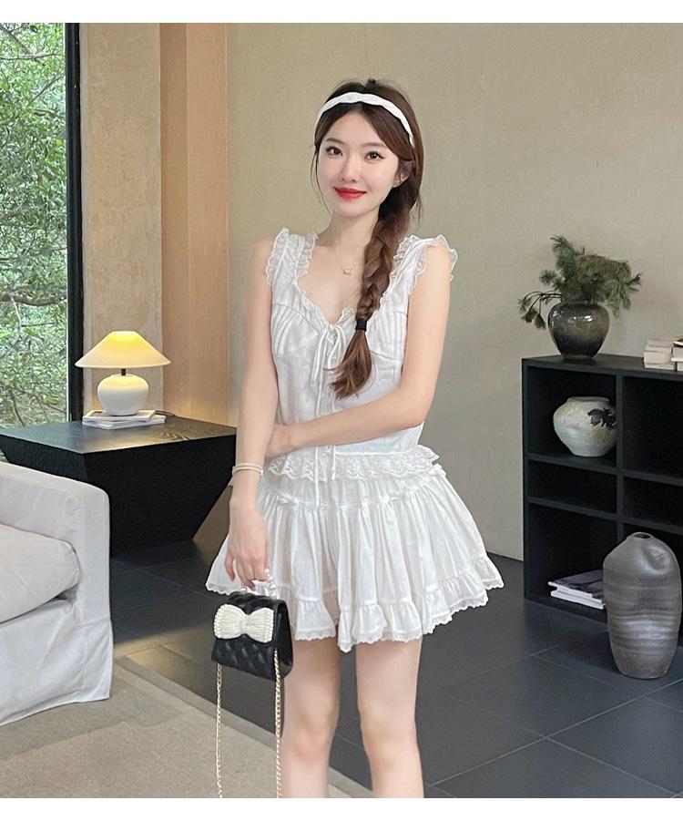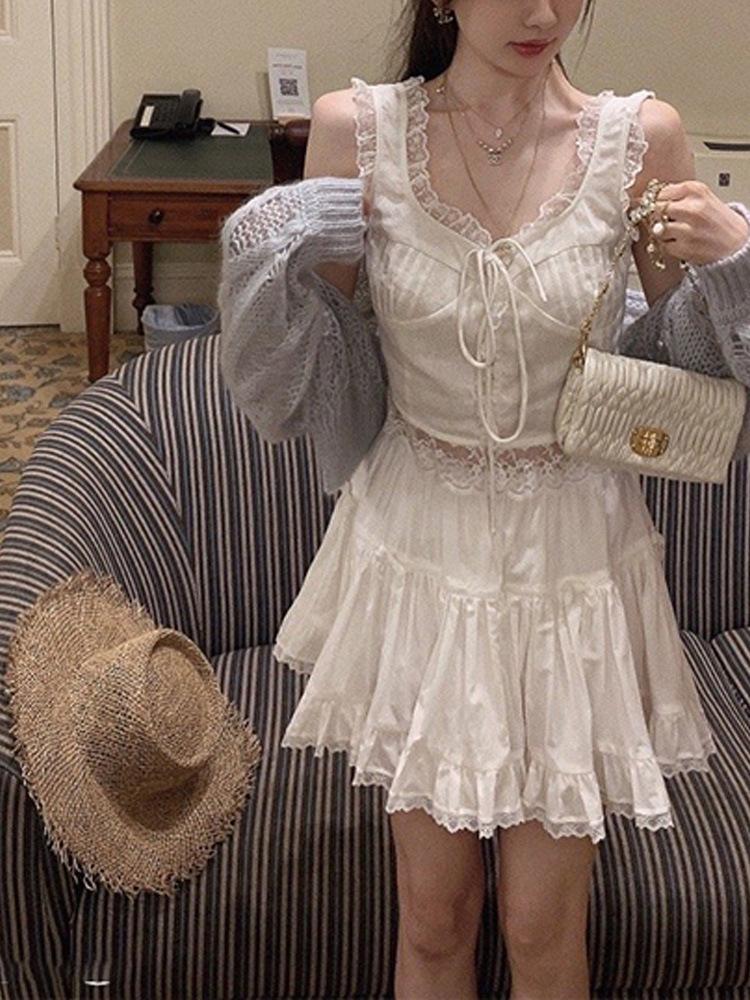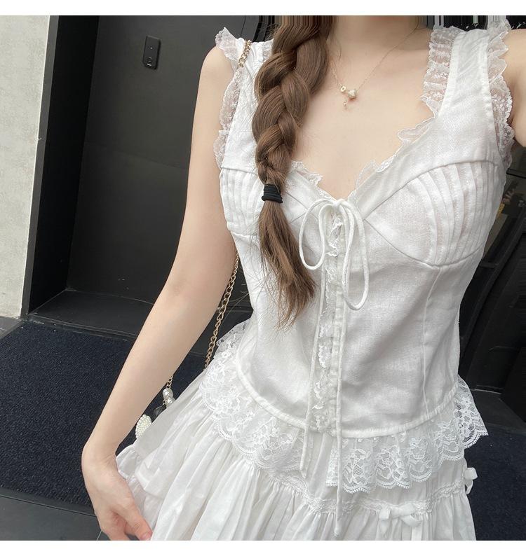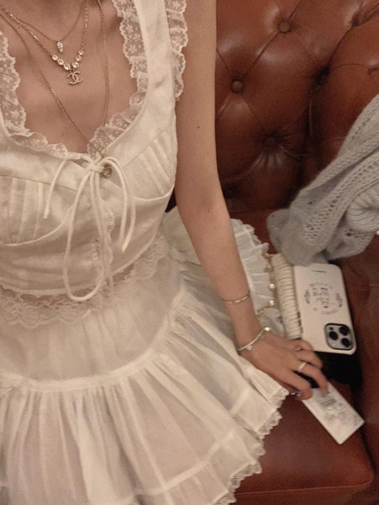El encaje cosido y los pliegues en el pecho le dan un aire delicado y femenino.