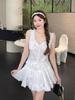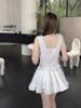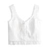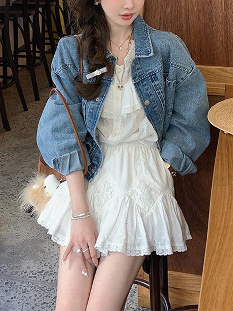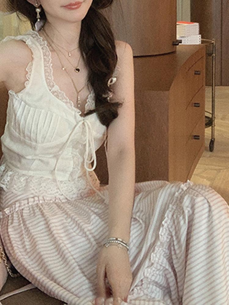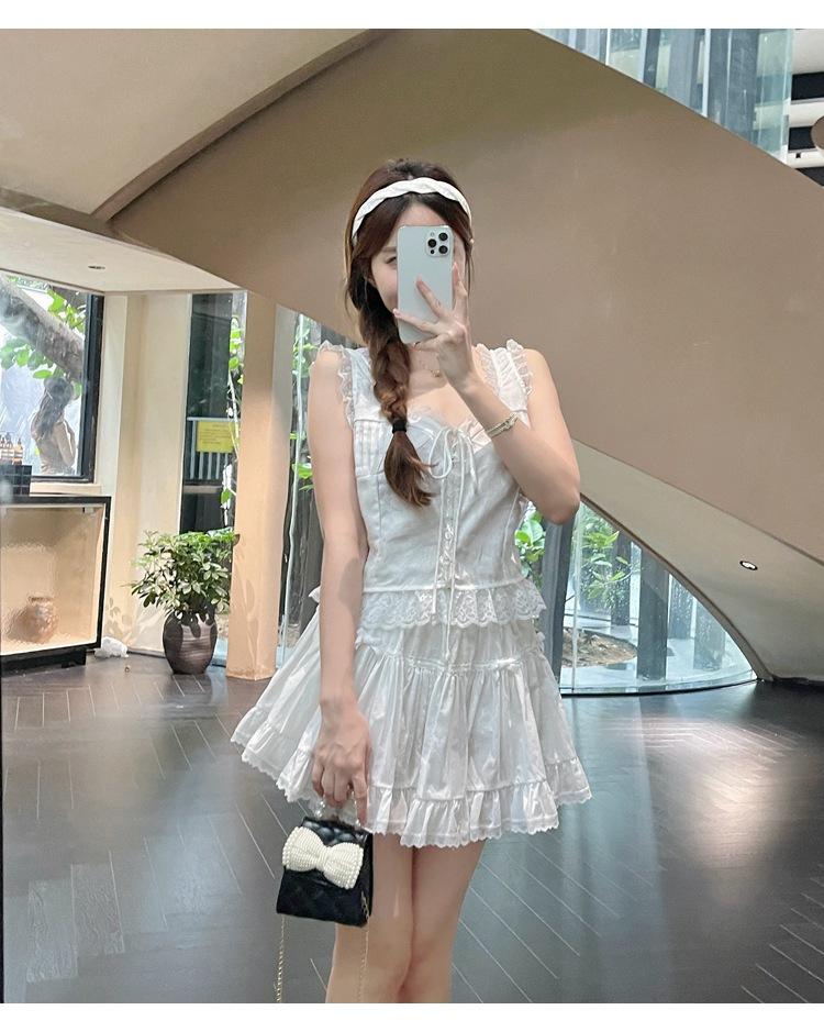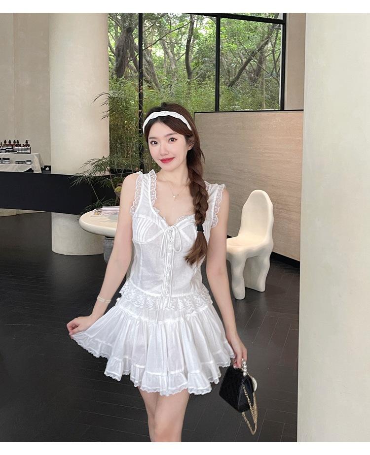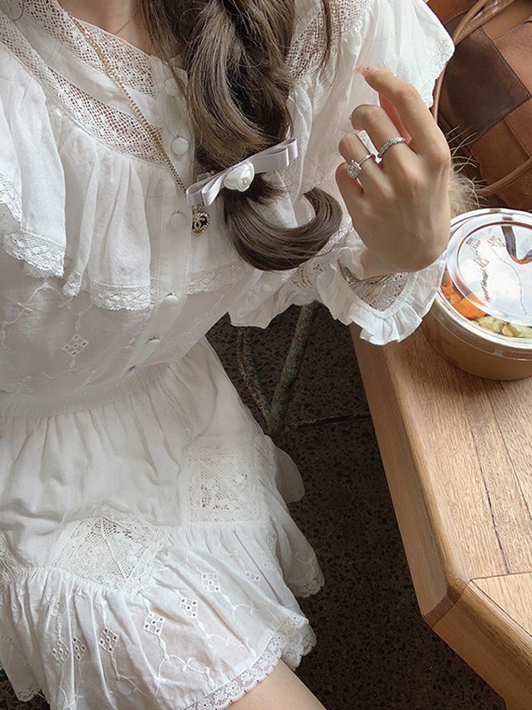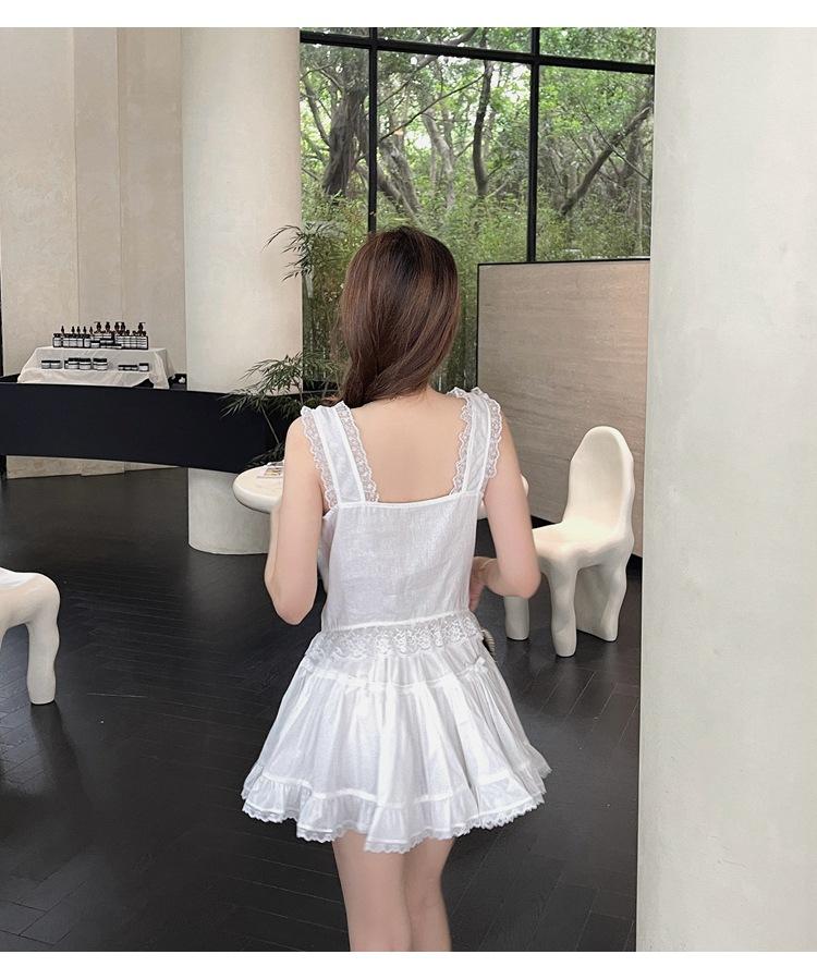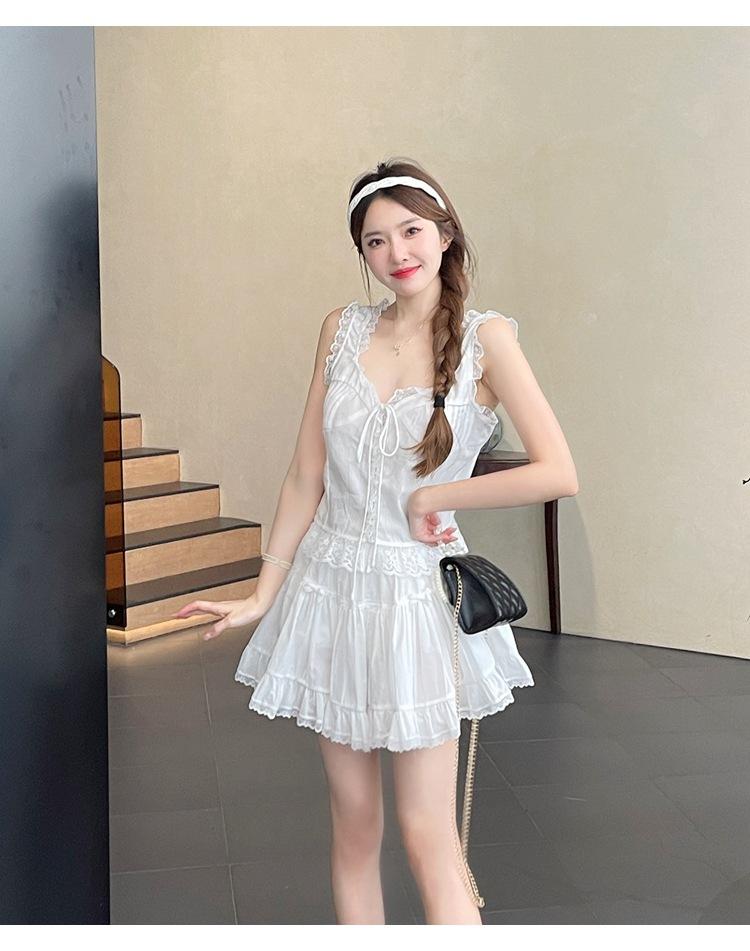 El encaje cosido y los pliegues en el pecho le dan un aire delicado y femenino.
