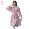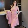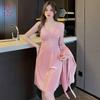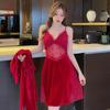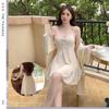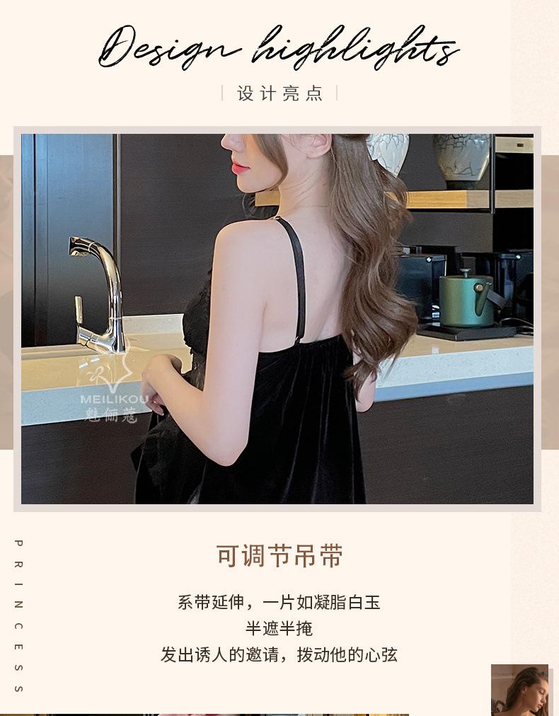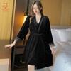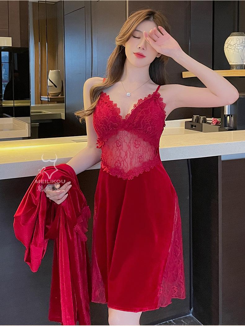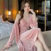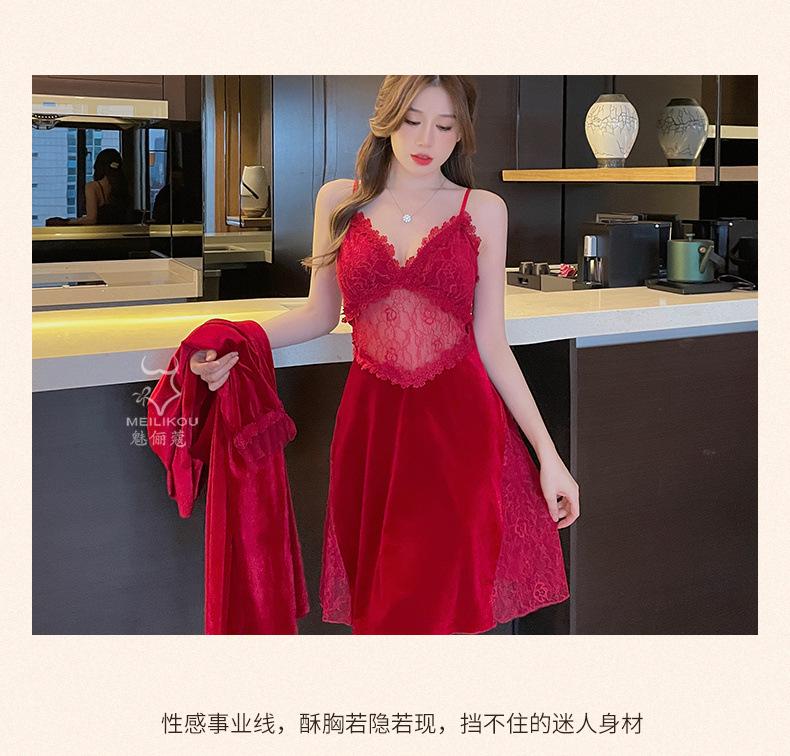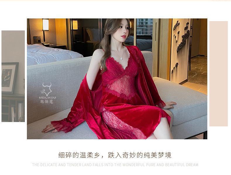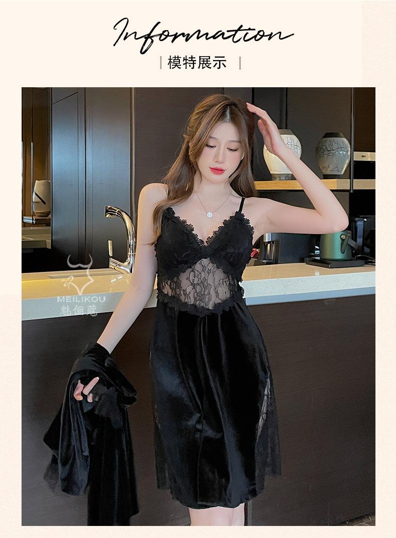 Pijama de otoño e invierno para mujer, camisón de terciopelo dorado de manga larga, cálido, con tirantes, sexy, de encaje, conjunto de camisón calado, 1908