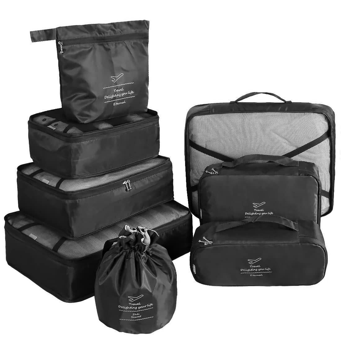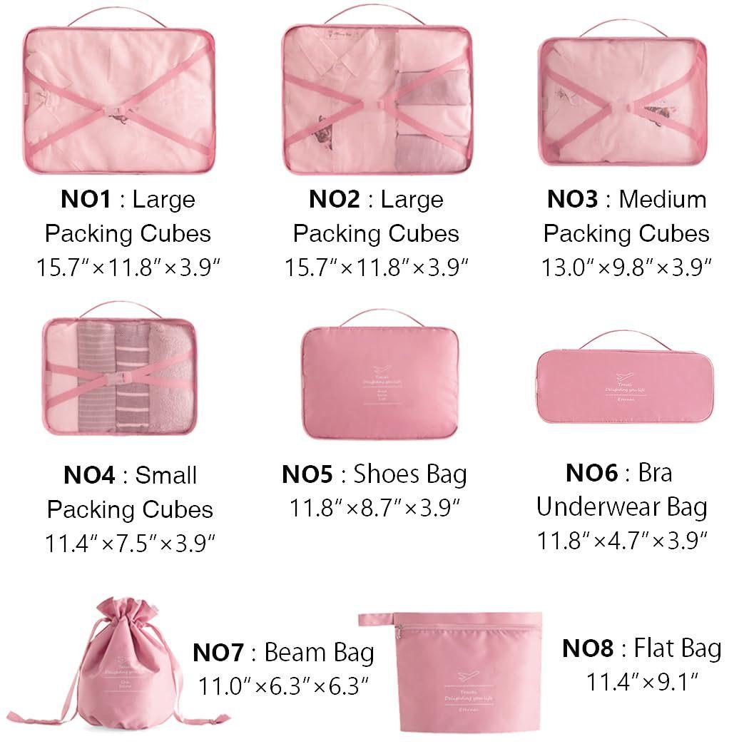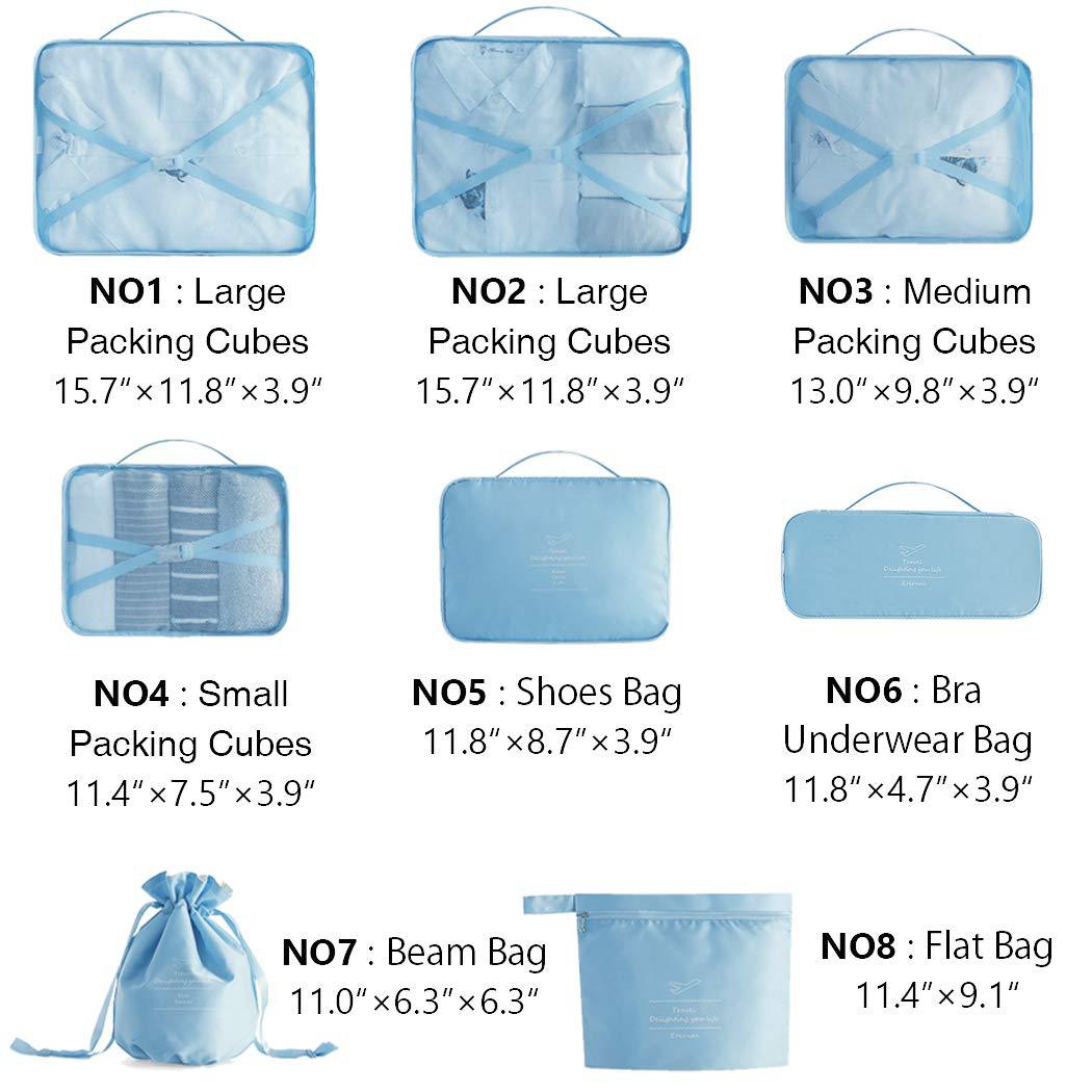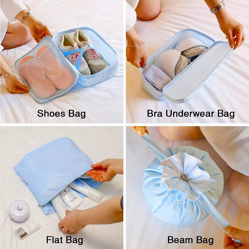 Juego de almacenamiento de viaje de 8 piezas, bolsa organizadora de equipaje, ropa interior, zapatos, neceser portátil, neceser.
