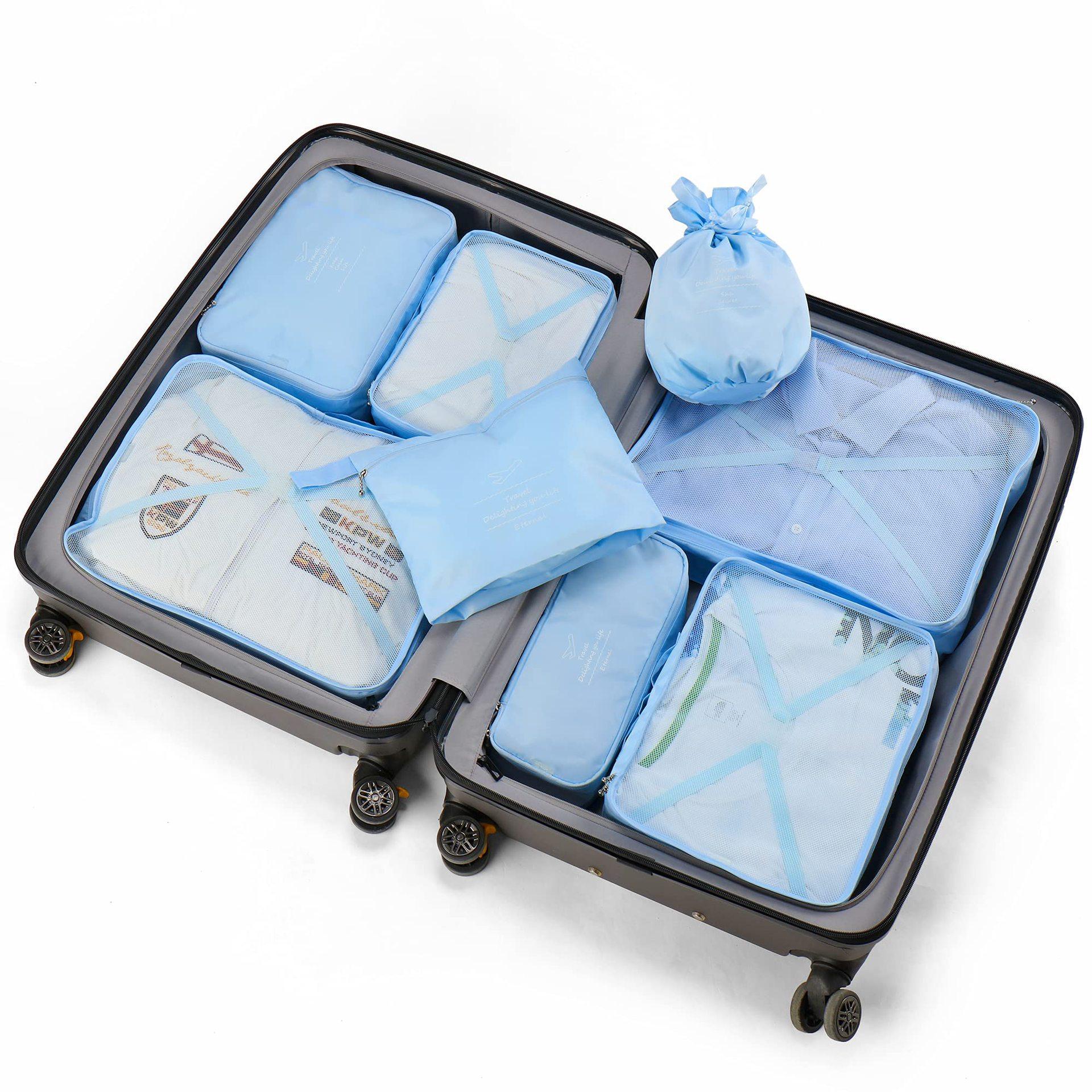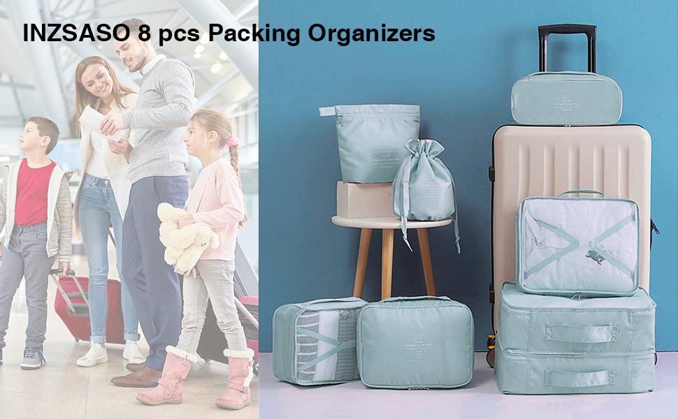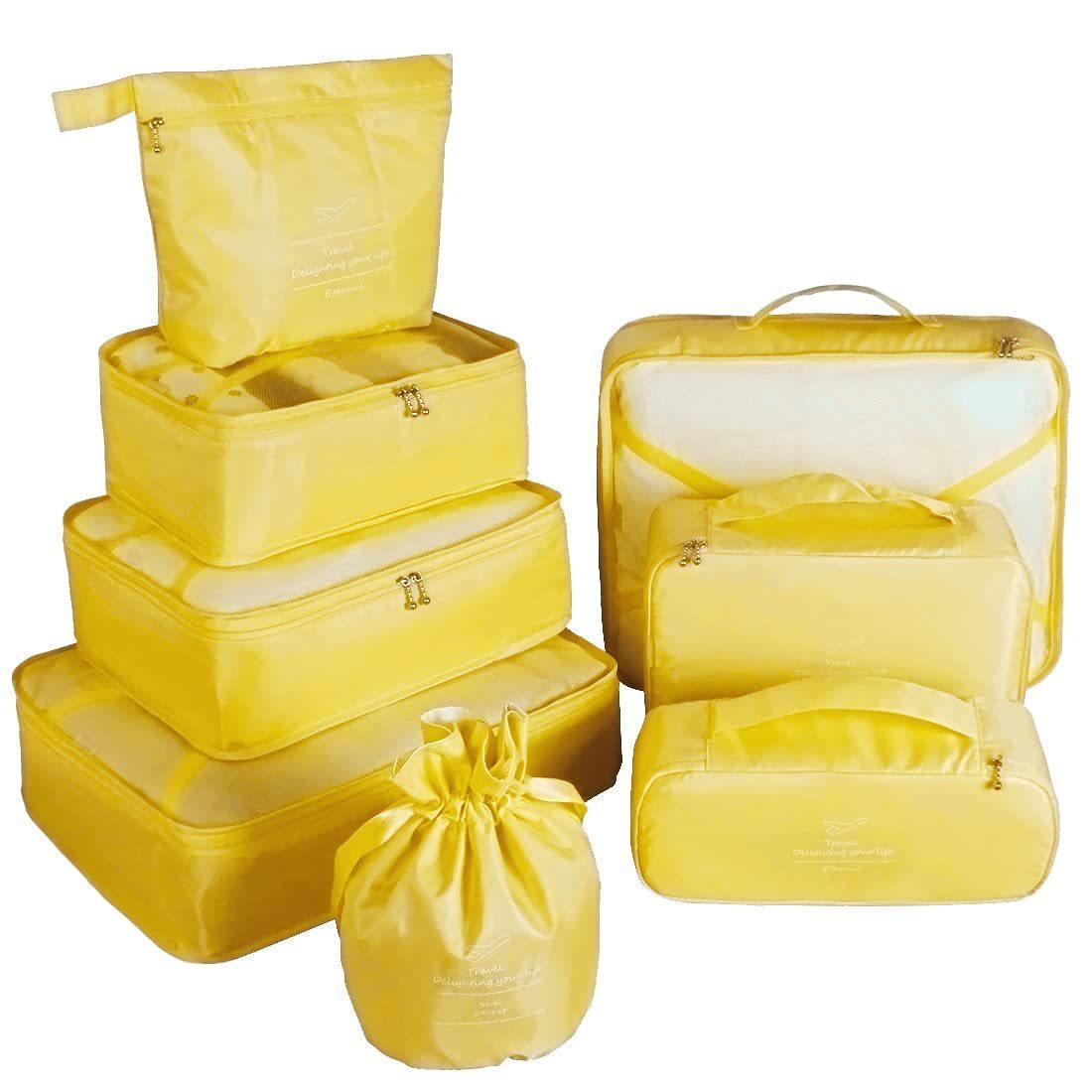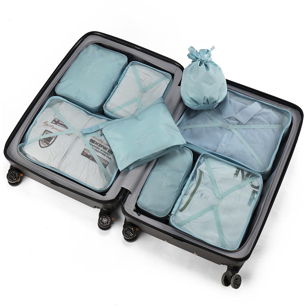 Juego de almacenamiento de viaje de 8 piezas, bolsa organizadora de equipaje, ropa interior, zapatos, neceser portátil, neceser.