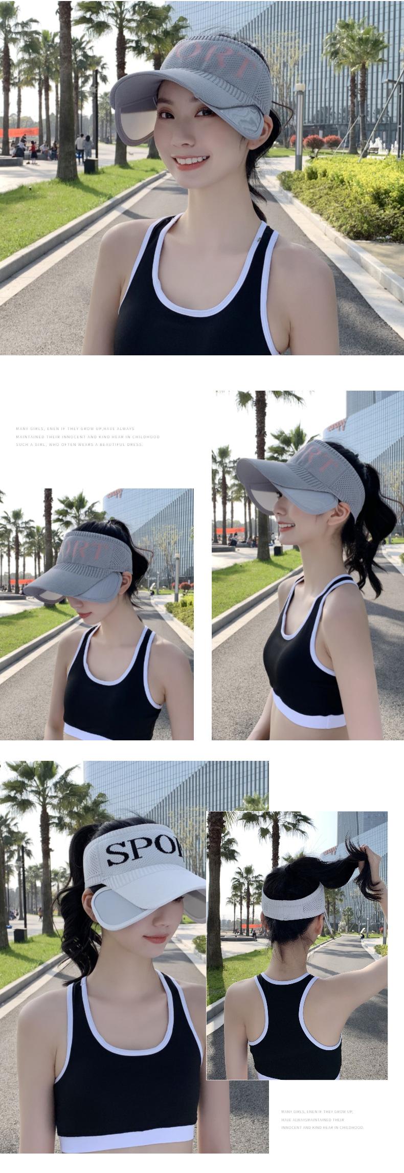 9331 Sombrero Deportivo de Protección Solar para Mujer Verano Estilo Coreano Sombrilla Sombrilla Ala Ancha Sombrero de Copa Vacío Retráctil Sombrero para el Sol