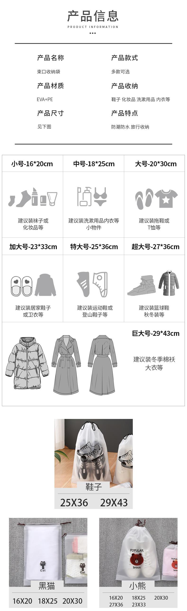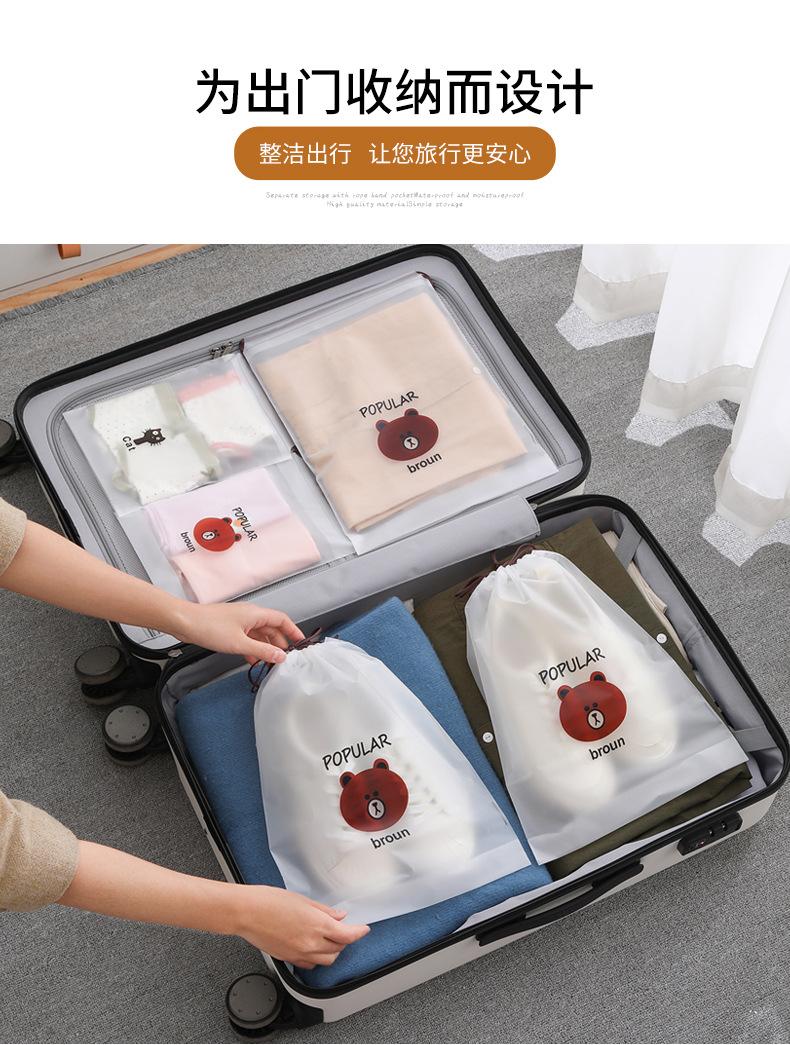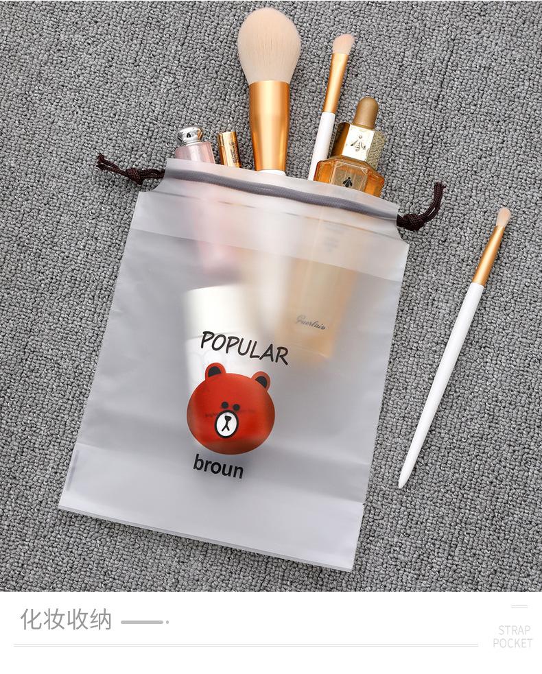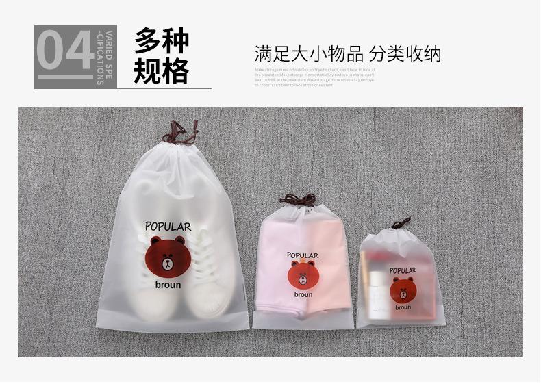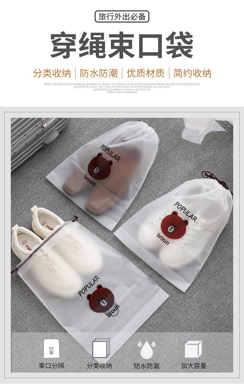 Bolsa con cordón de dibujos animados de PE esmerilado para guardar zapatos, bolsa de embalaje para ropa de viaje, bolsa de plástico transparente al por mayor