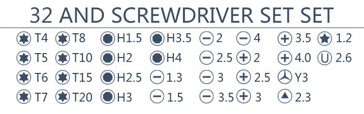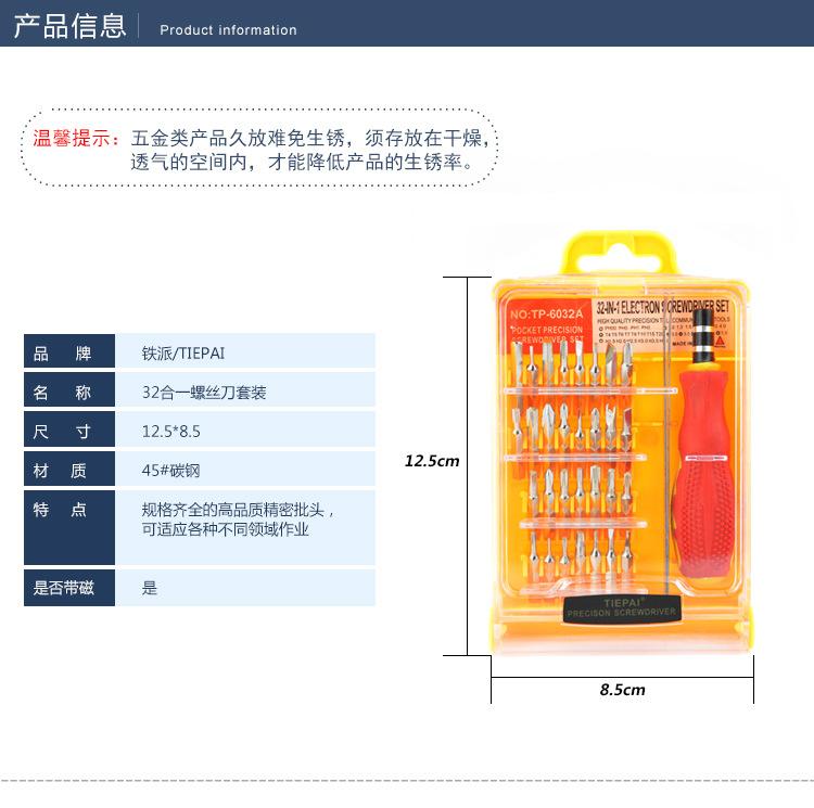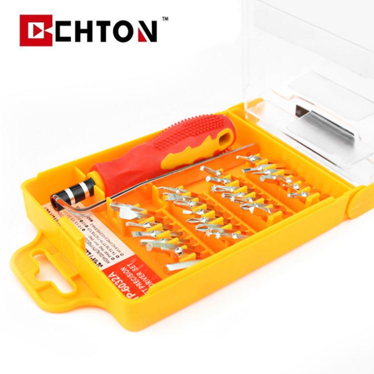 Marca: CHTON Nombre: Juego de destornilladores multifunción Número de artículo:TP6032D Especificaciones: 14*9*3.5CM Material: acero al carbono Empaque: 120 juegos/caja Peso: 0,17 kg