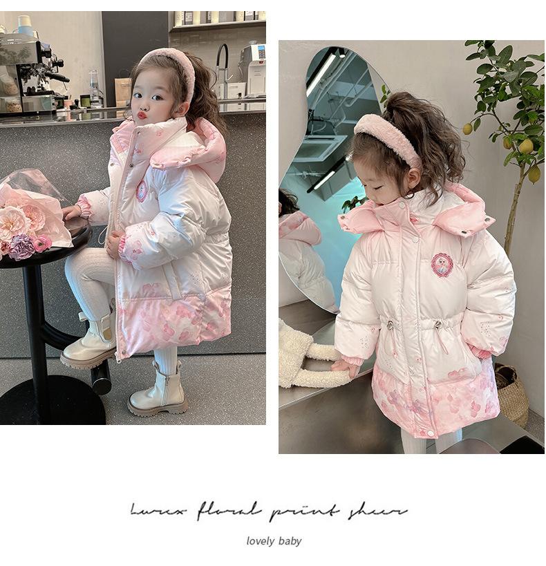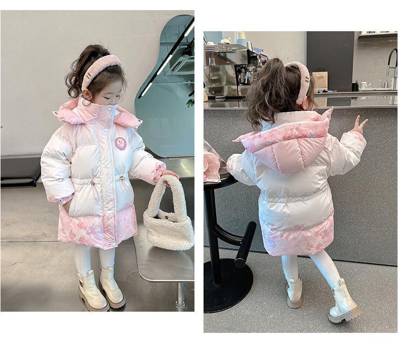 Chaqueta de plumón de invierno para niñas 2025 Nuevo abrigo de algodón elegante para bebé Ropa de algodón de invierno para niñas Abrigo infantil de media longitud