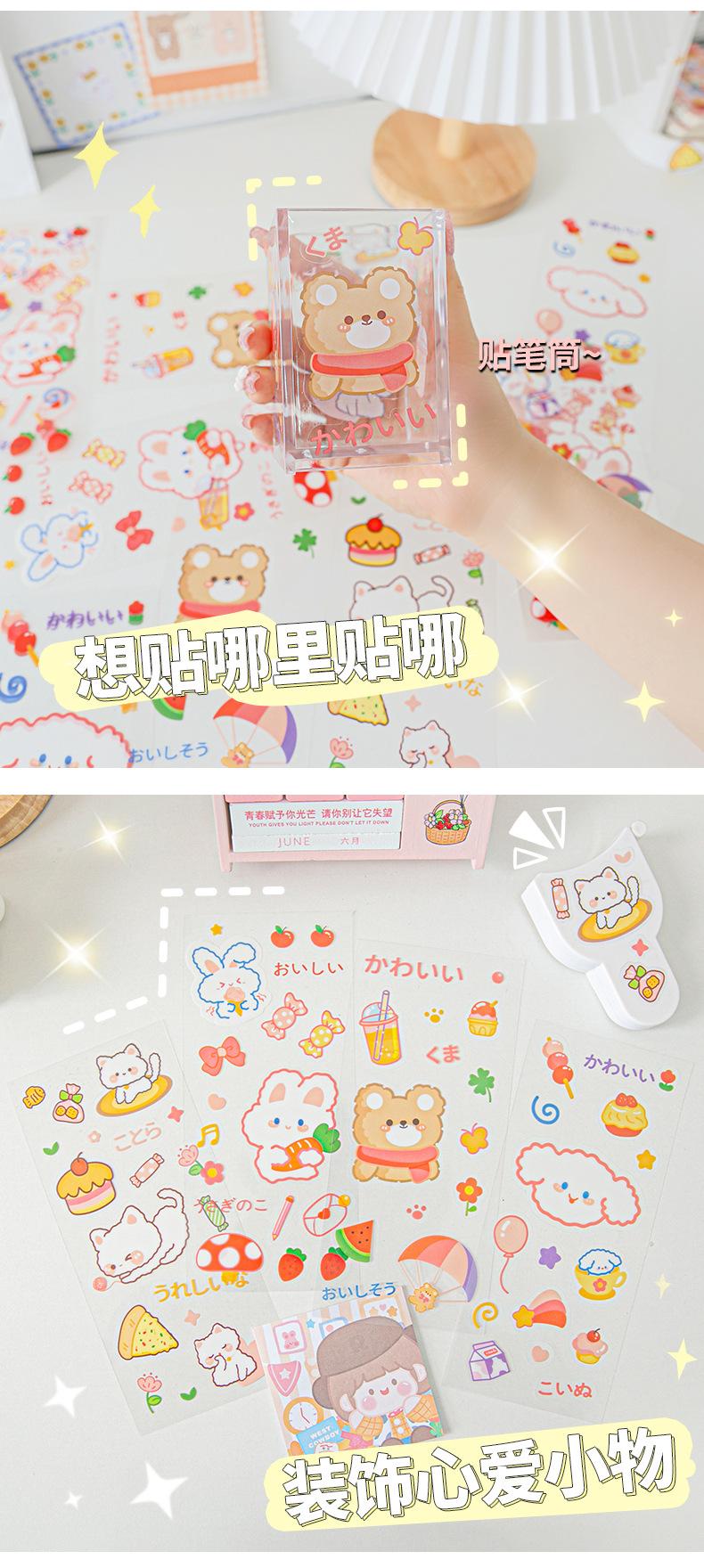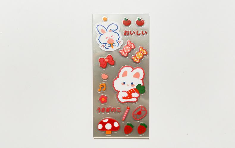 Pegatina de cuenta de mano de conejo con forma de corazón de niña, pegatina de fresa, libro de cuentas de mano, material decorativo, pegatina de taza de PVC
