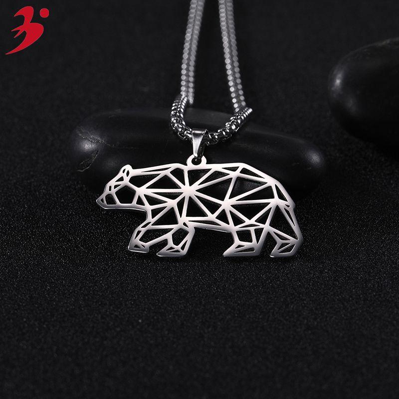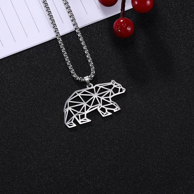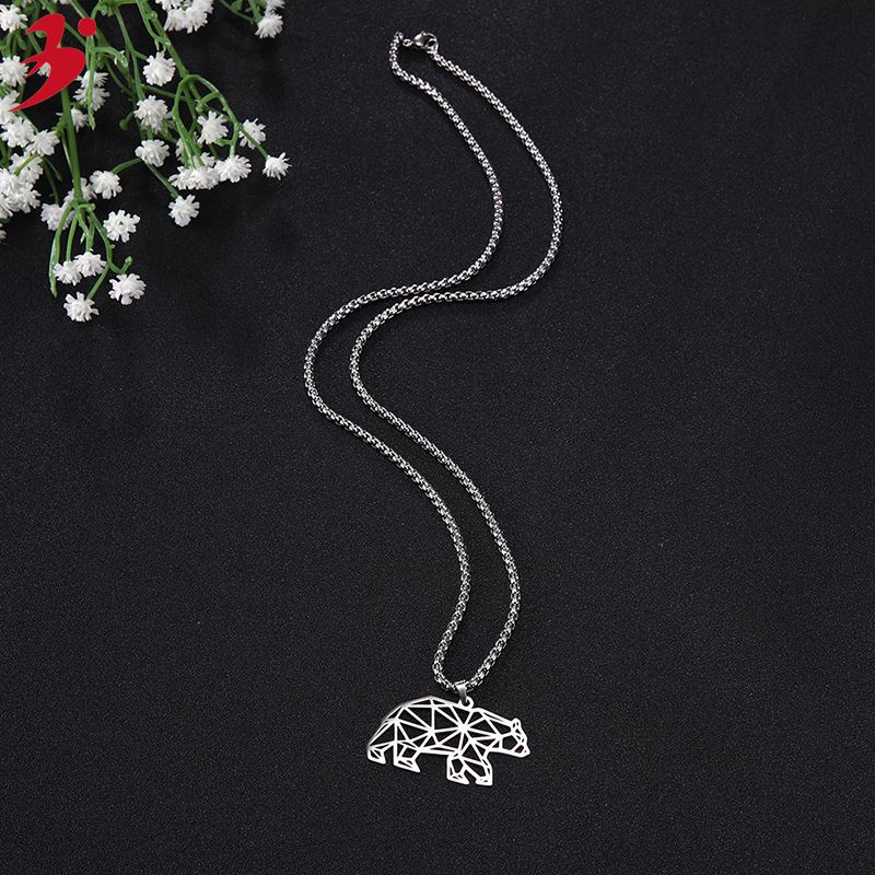 Collar sencillo de oso polar con colgante de animal hueco de acero inoxidable, estilo europeo y americano, venta directa de fábrica.