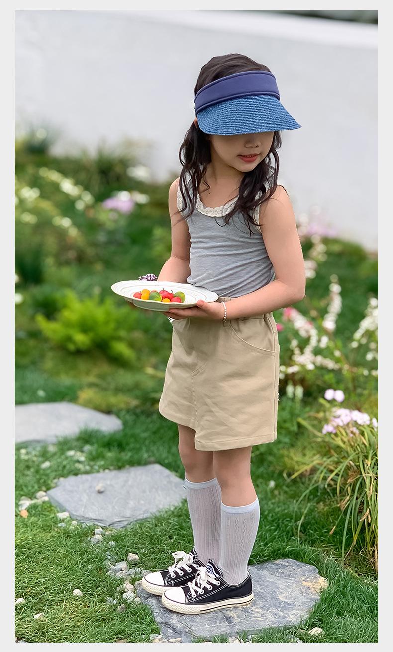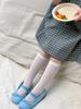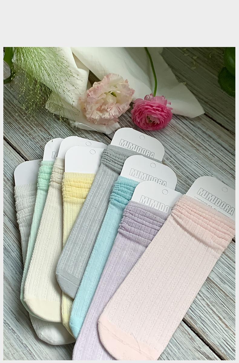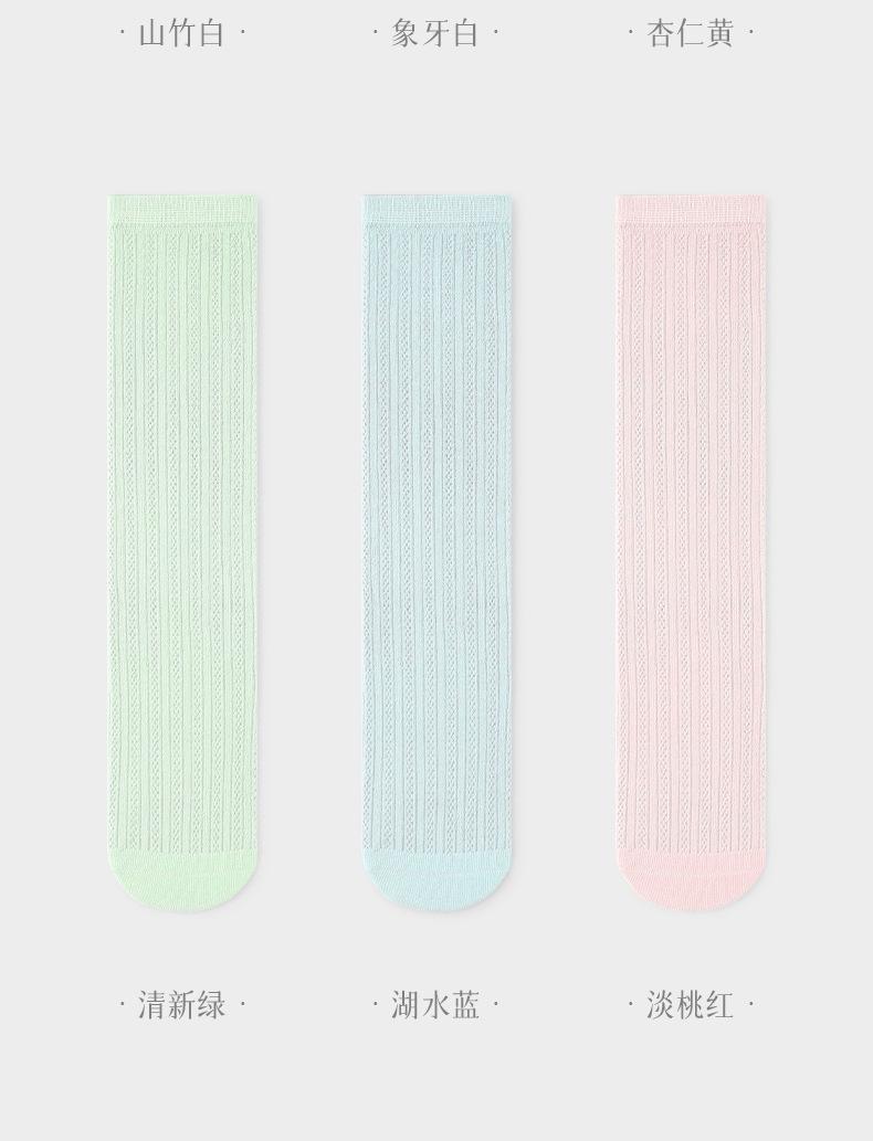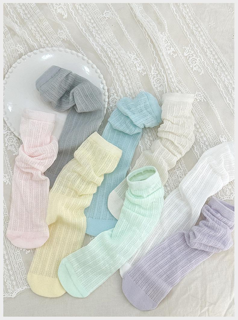 Calcetines de verano para niñas, finos, de clase A, coreanos, de algodón, transpirables, de malla, de color liso, con tiras verticales, de tubo medio para niños.
