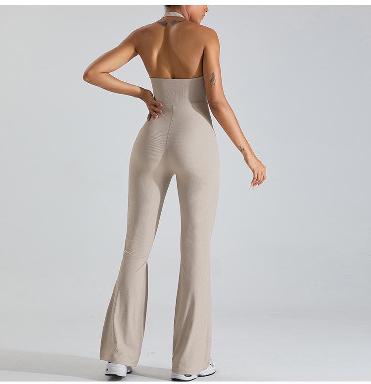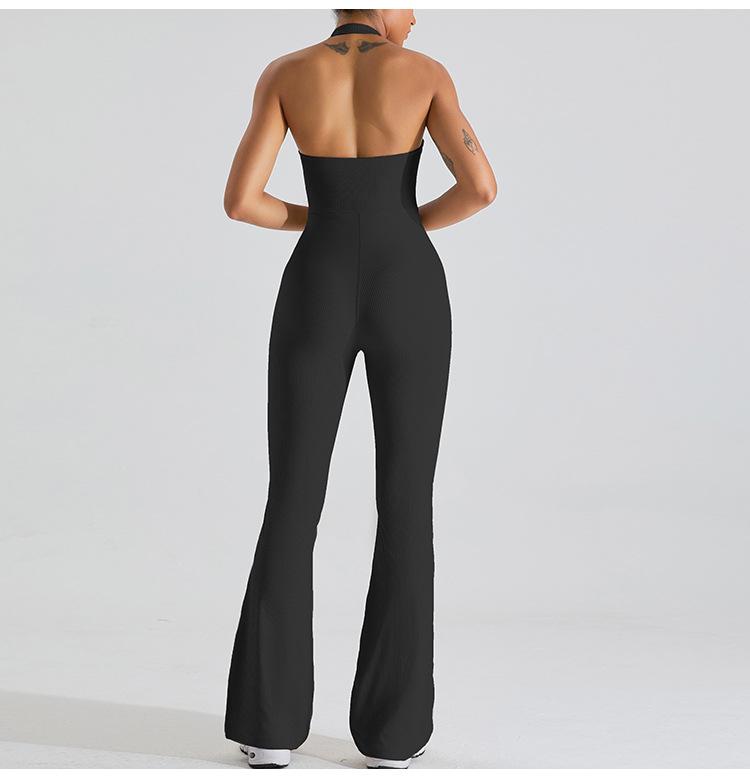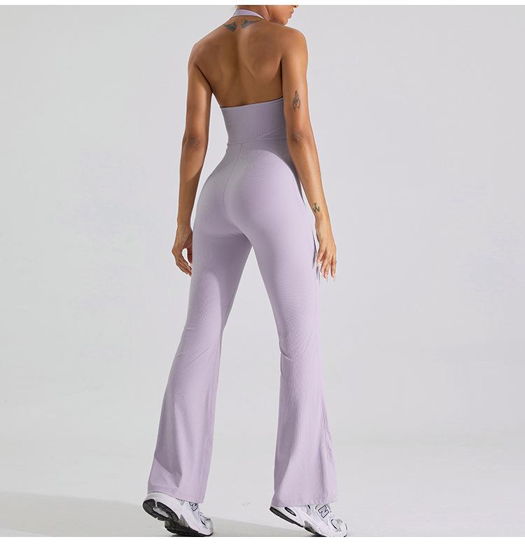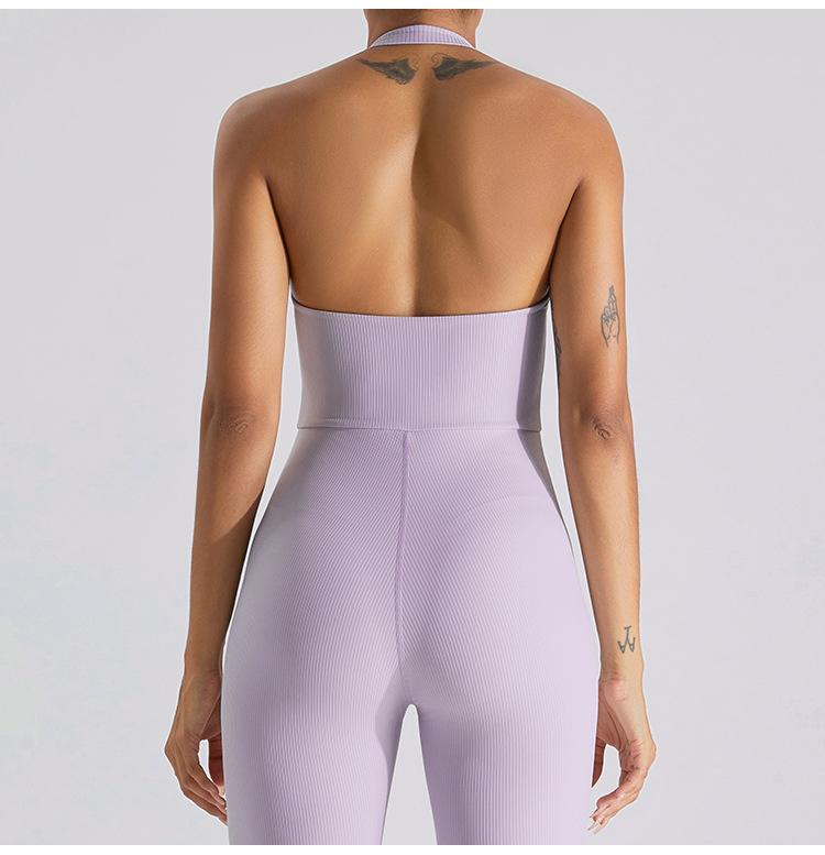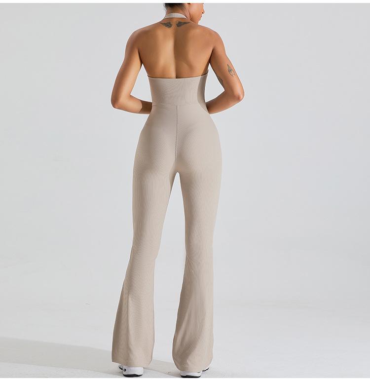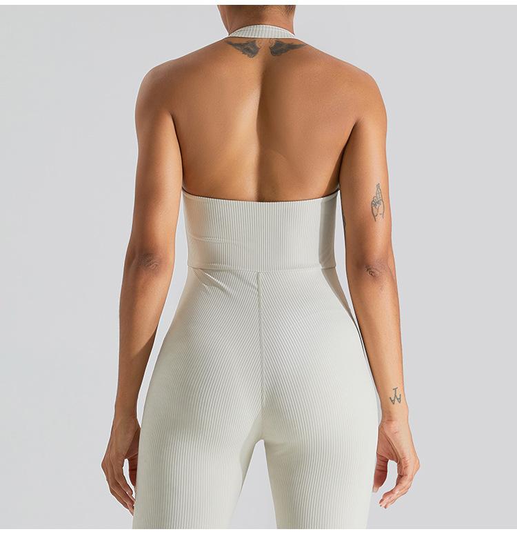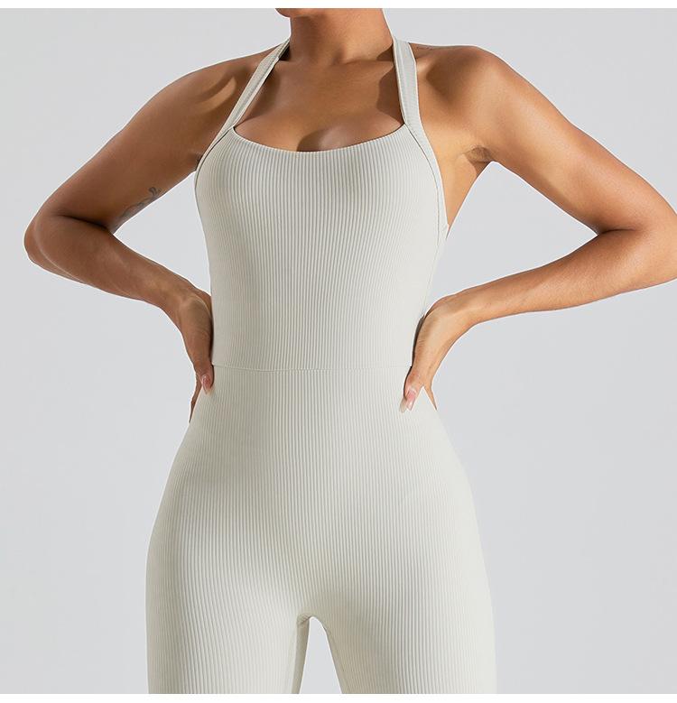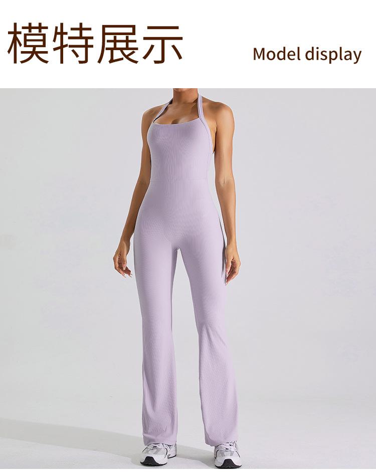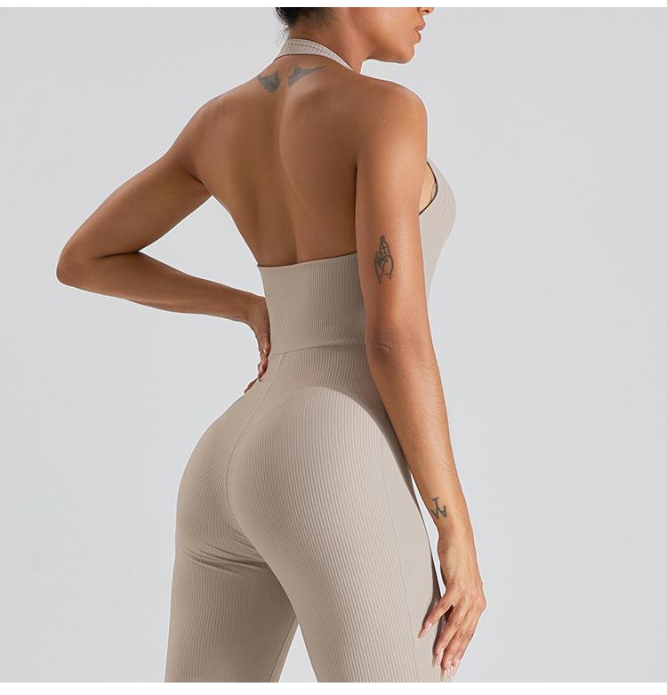 Traje de ropa de yoga de secado rápido de hilo europeo y americano para mujer, ropa deportiva casual para danza y contracción abdominal, mono ajustado de micro-tracción