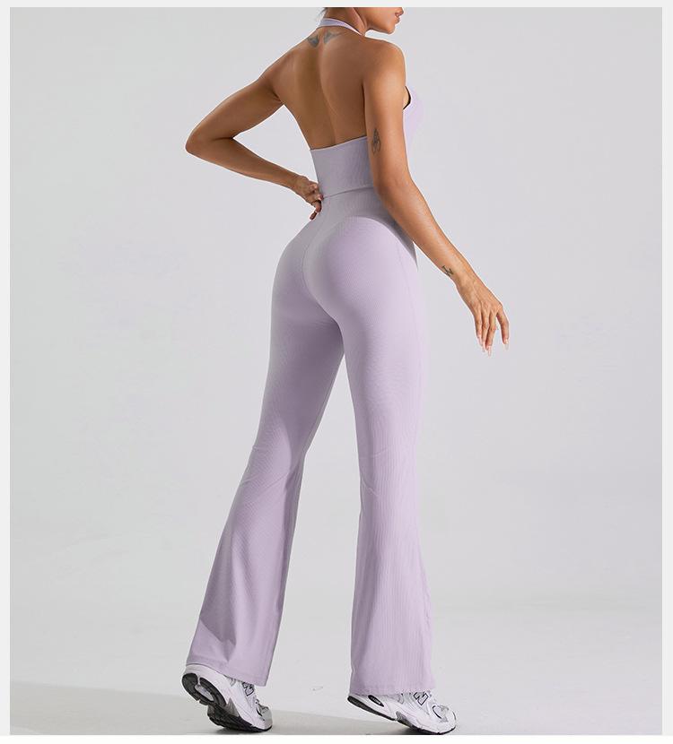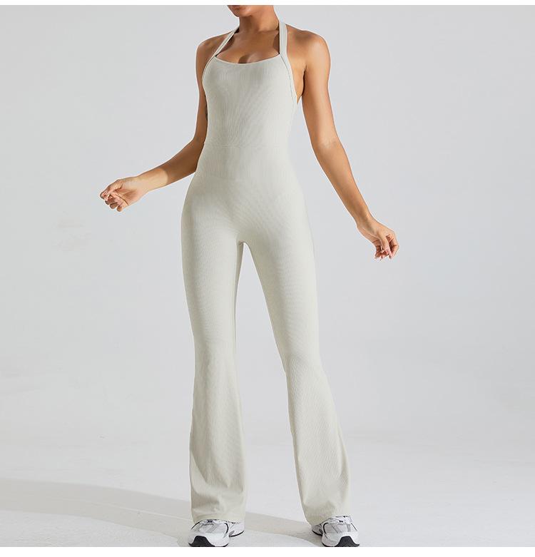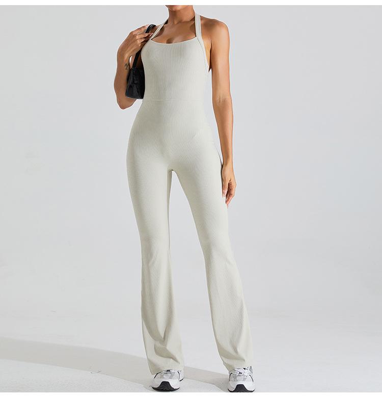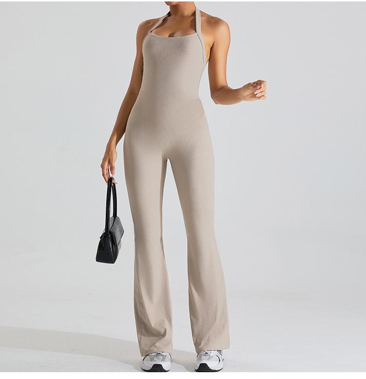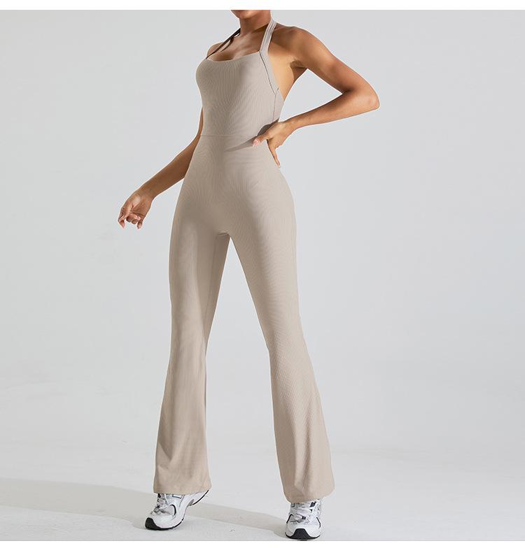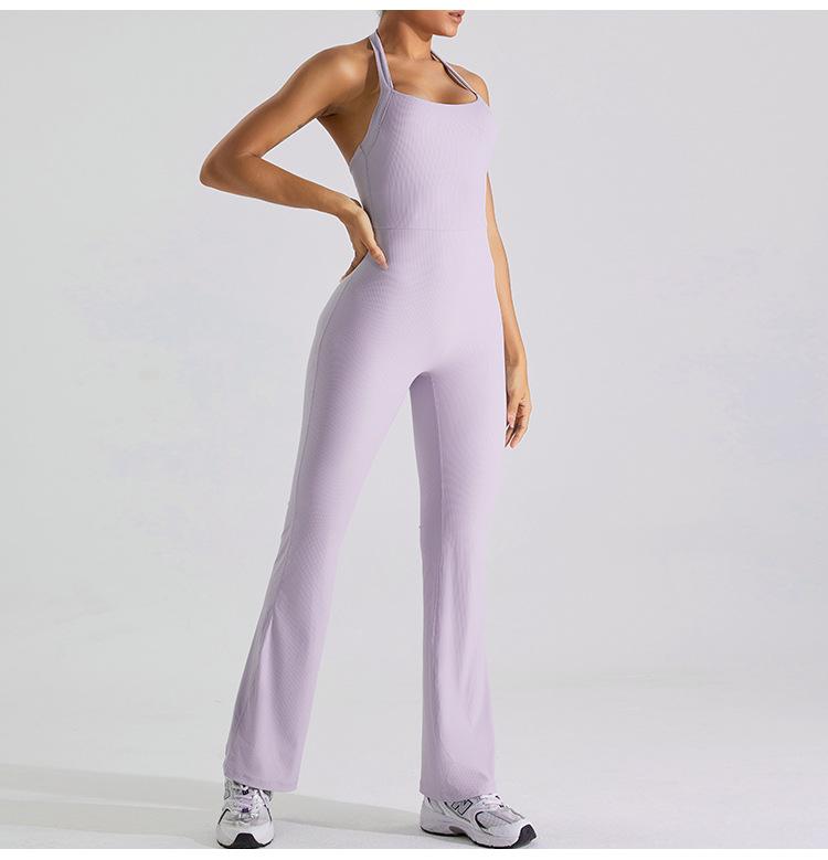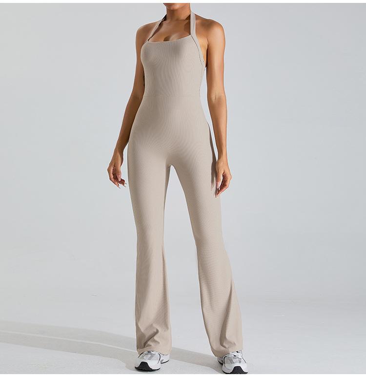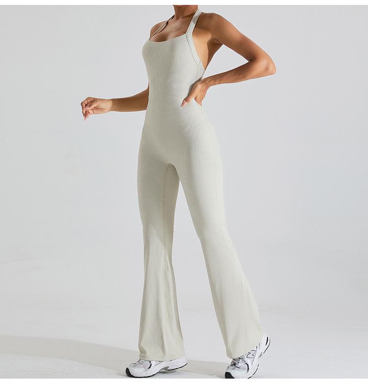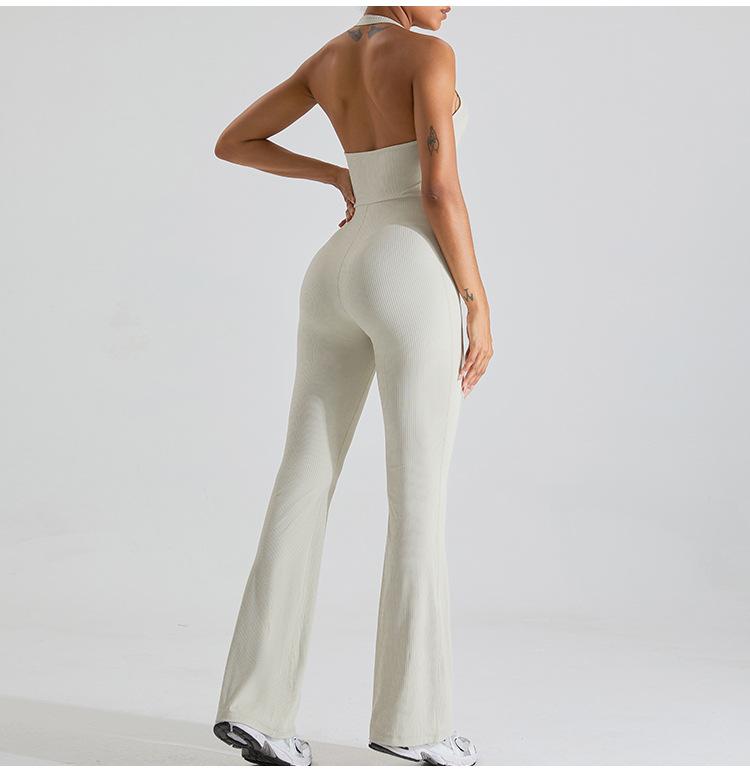 Traje de ropa de yoga de secado rápido de hilo europeo y americano para mujer, ropa deportiva casual para danza y contracción abdominal, mono ajustado de micro-tracción