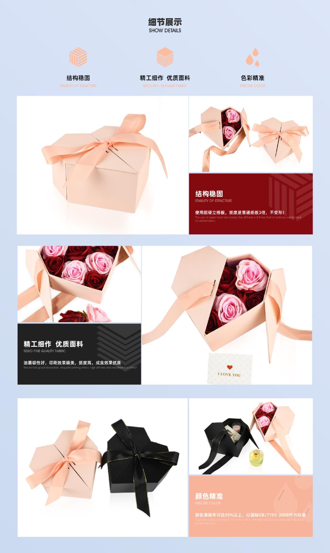 Caja de regalo de alta gama con forma de corazón de doble apertura, nueva caja vacía con lazo para el Día de San Valentín, caja de regalo de boda de amor mano a mano