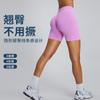 Pantalones cortos de yoga sin costuras transfronterizos europeos y americanos para mujer, pantalones deportivos de cintura alta de tres puntos color melocotón, ropa de yoga fitness de secado rápido color piel