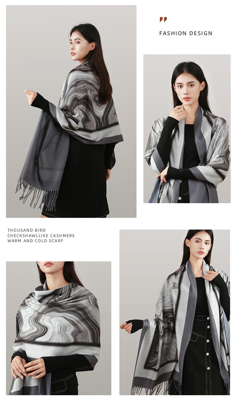 Bufanda Personalizada Estilo Étnico Estampada Largo Medio Textura Cálida Chal con Flecos Bufanda de Imitación Cachemira al por Mayor