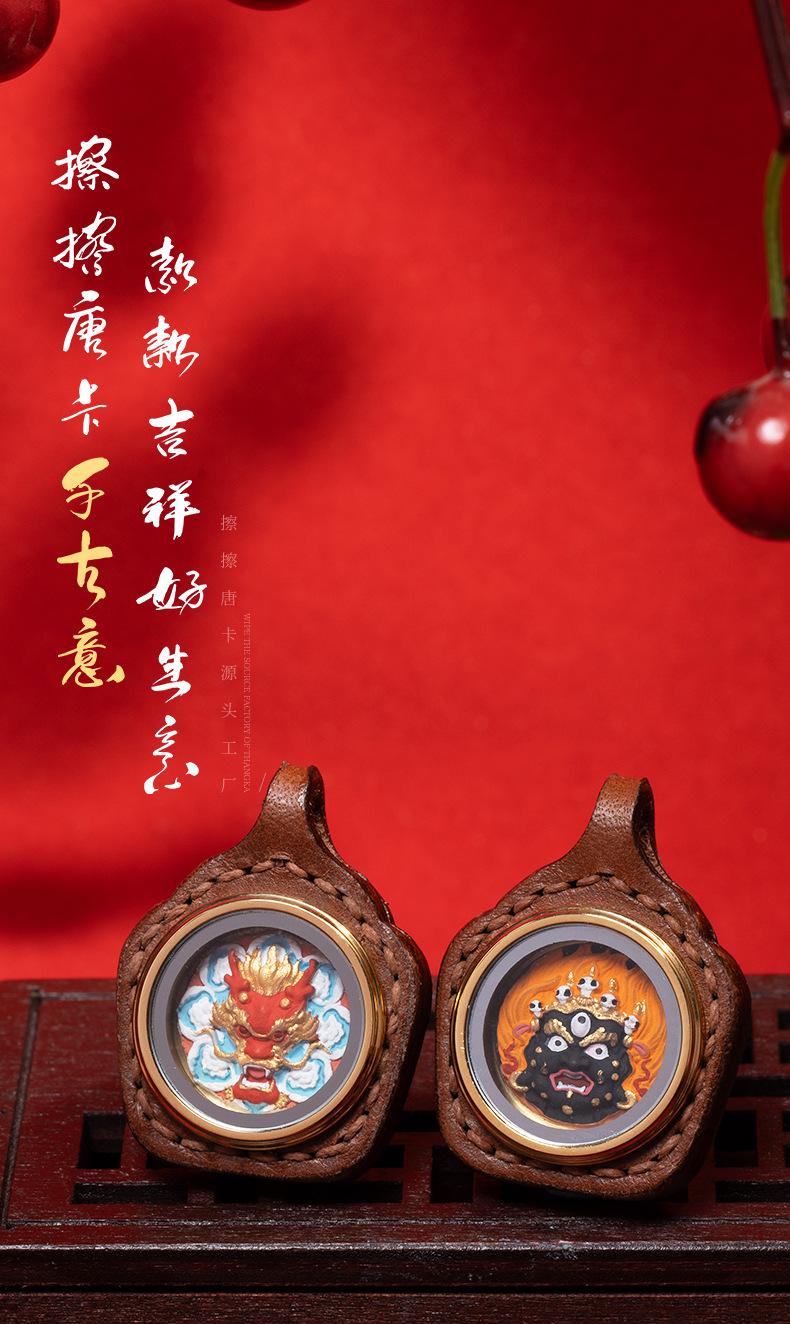 Nuevo Patrimonio Cultural Inmaterial Estéreo 3D Pintado a Mano Zakiram Huangcai Wuye Thangka Colgante Pintado a Mano Caja Gawu de Cuero Frotado