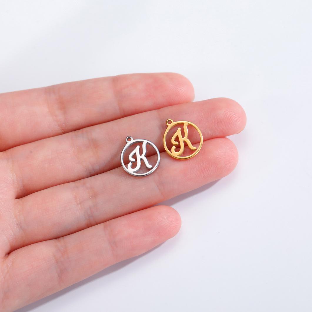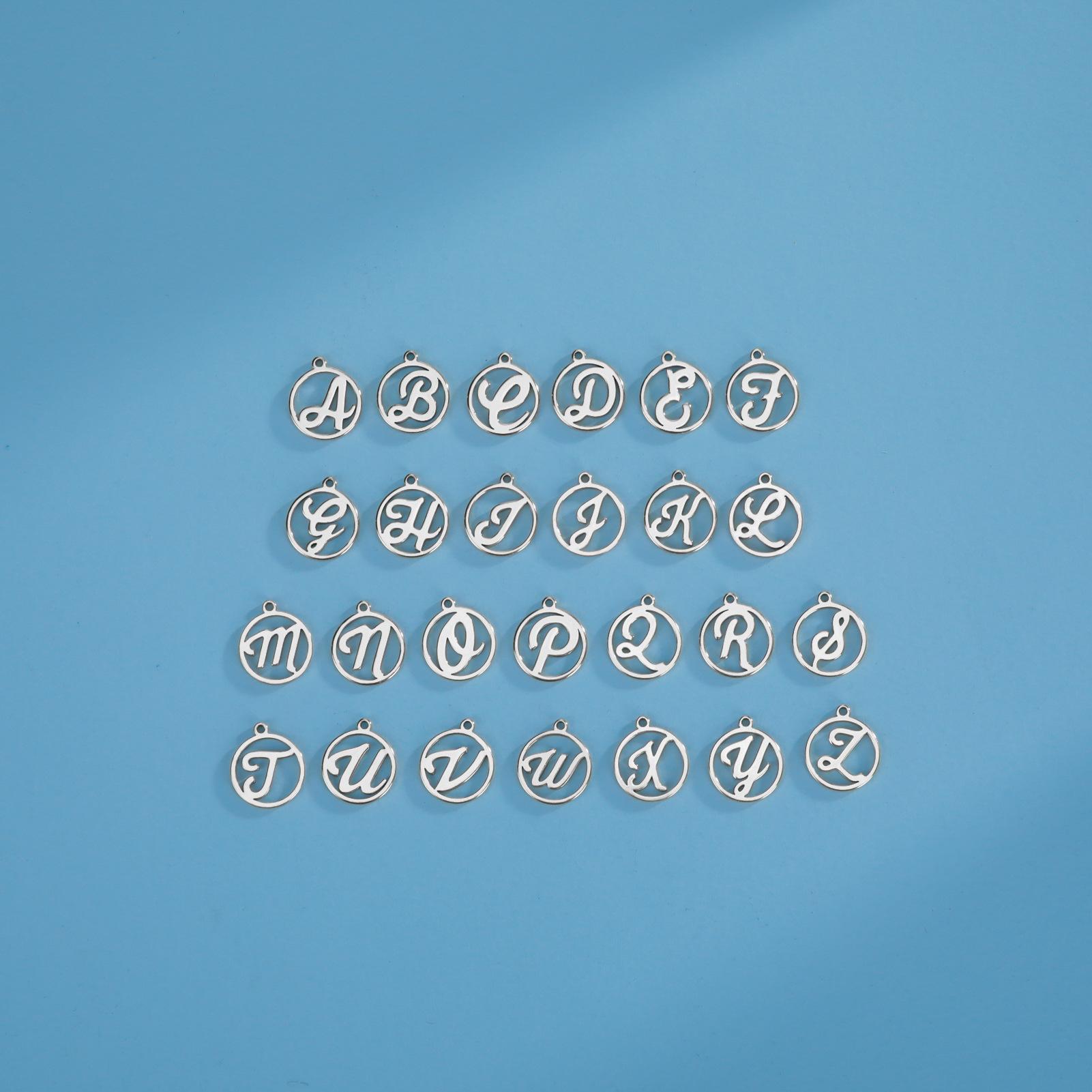Dije de letra inicial de dibujos animados 26, joyería del alfabeto, dije de acero inoxidable, estilo de nombre, collar, pulsera, colgante DIY