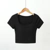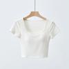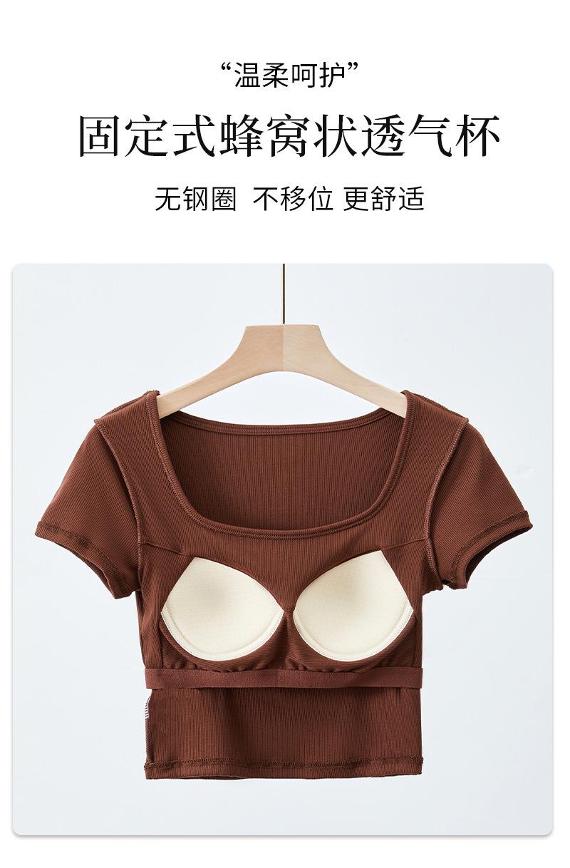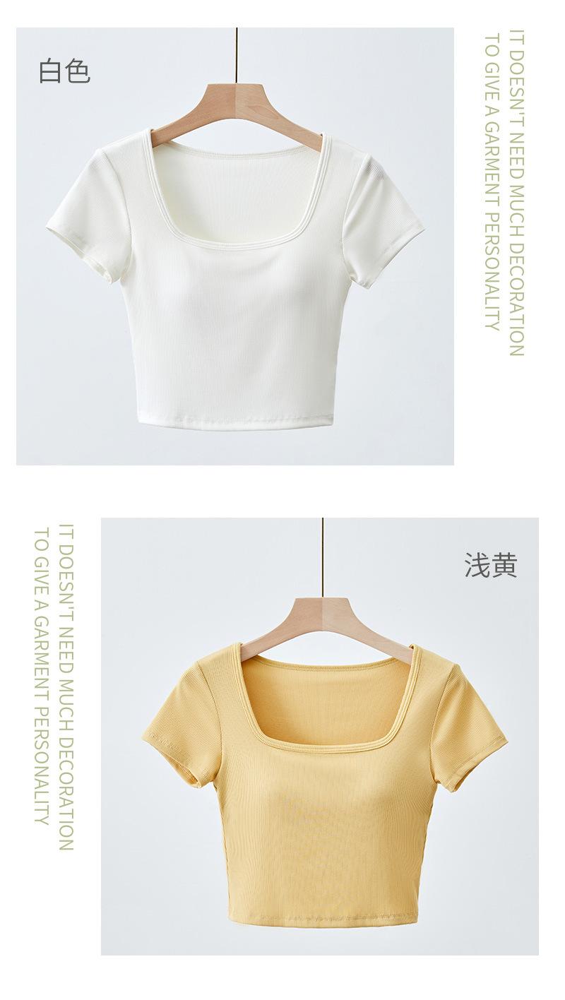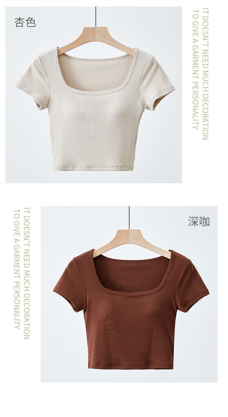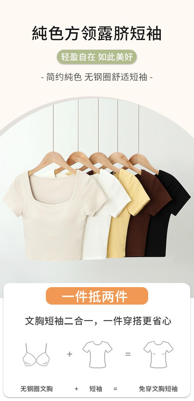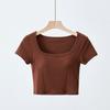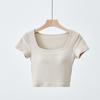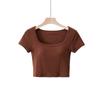 Camiseta corta de verano integrada al ombligo con cuello cuadrado, manga corta y base de copa con almohadilla en el pecho, casual deportiva para mujer