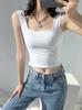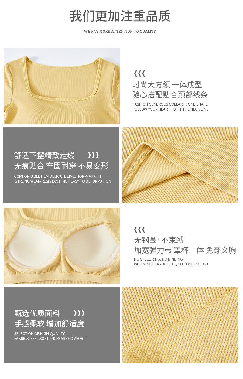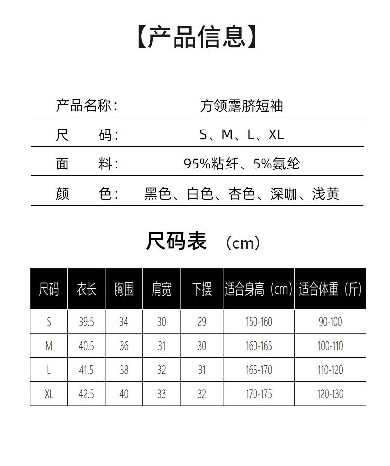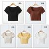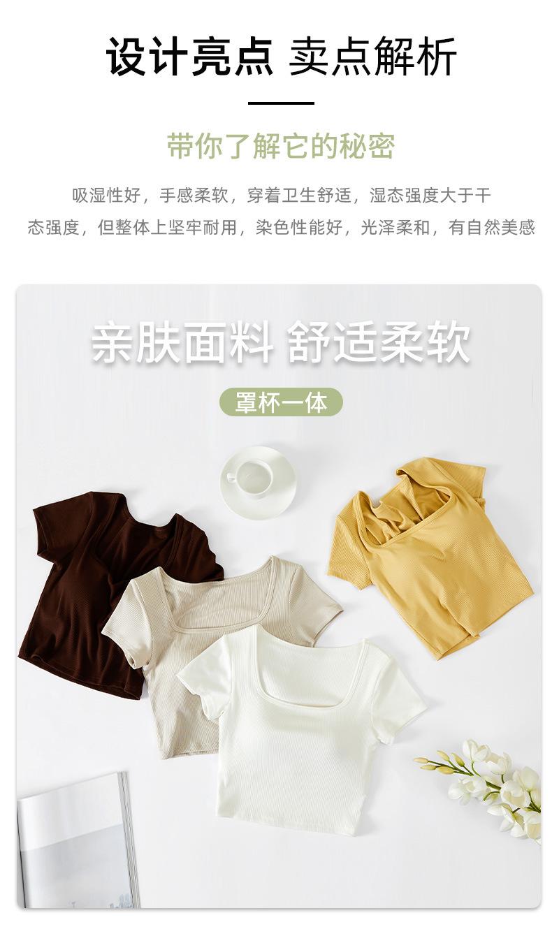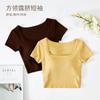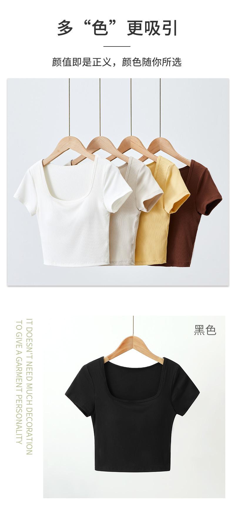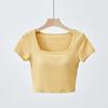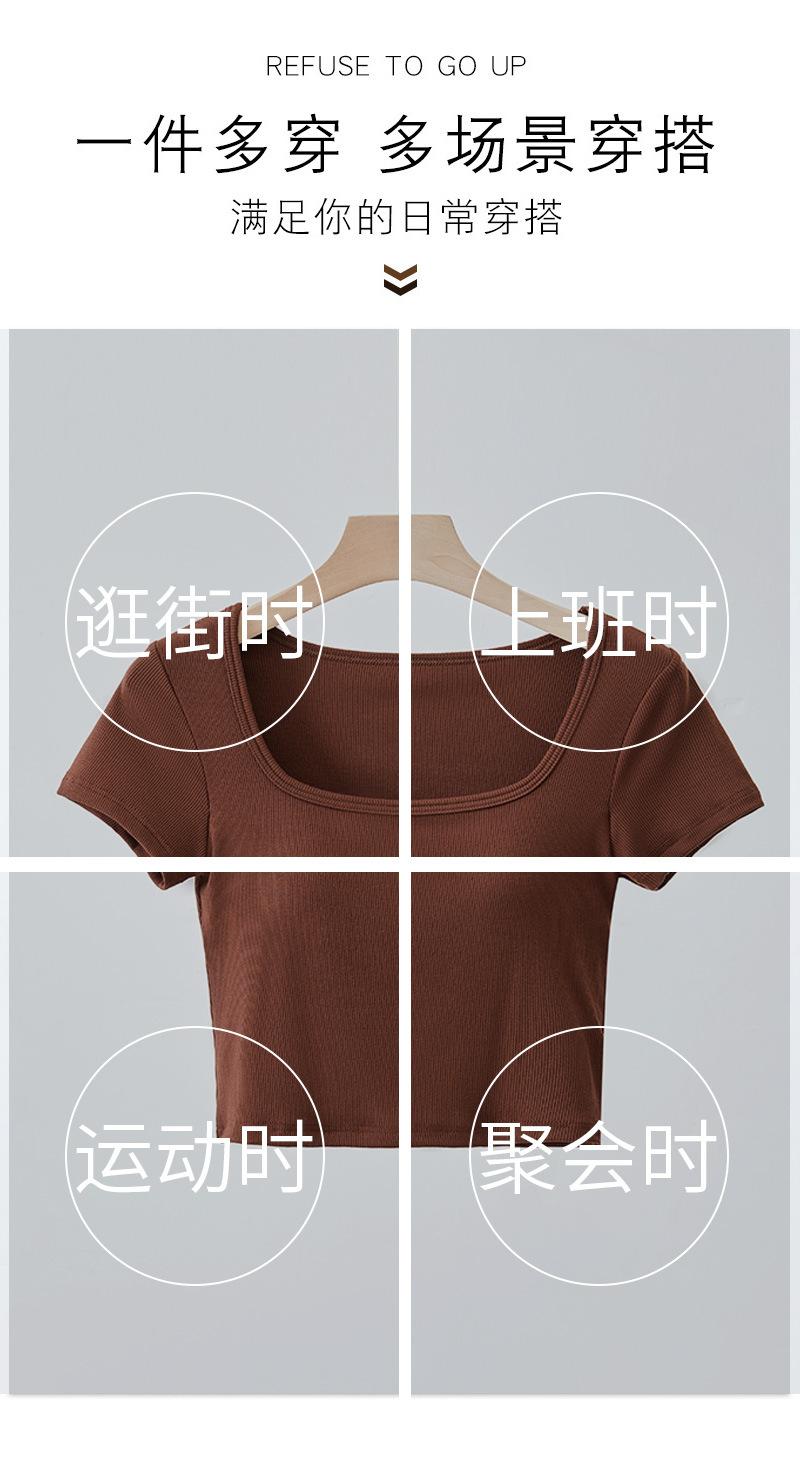 Camiseta corta de verano integrada al ombligo con cuello cuadrado, manga corta y base de copa con almohadilla en el pecho, casual deportiva para mujer