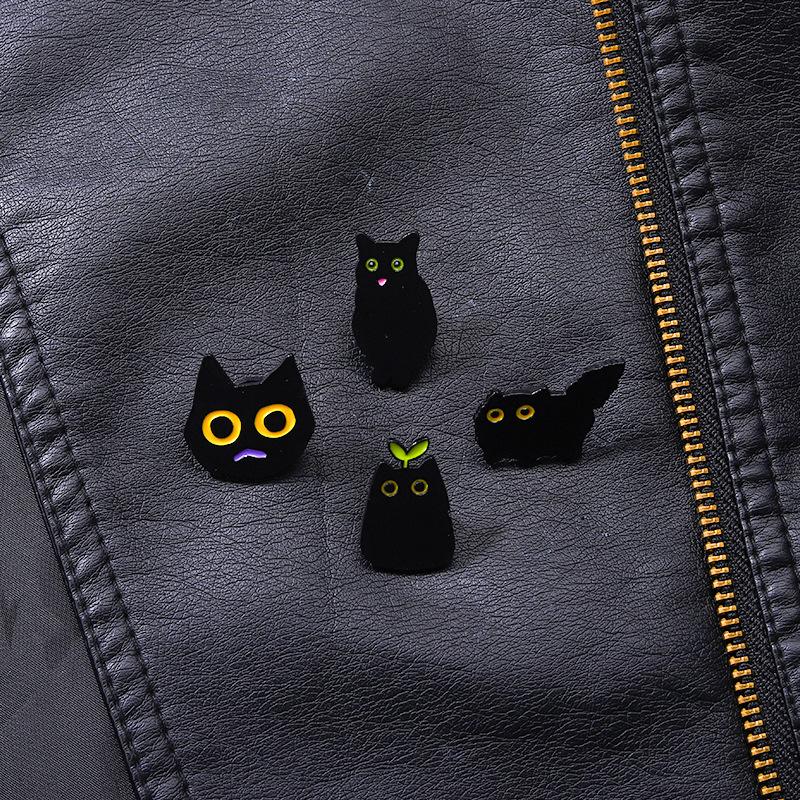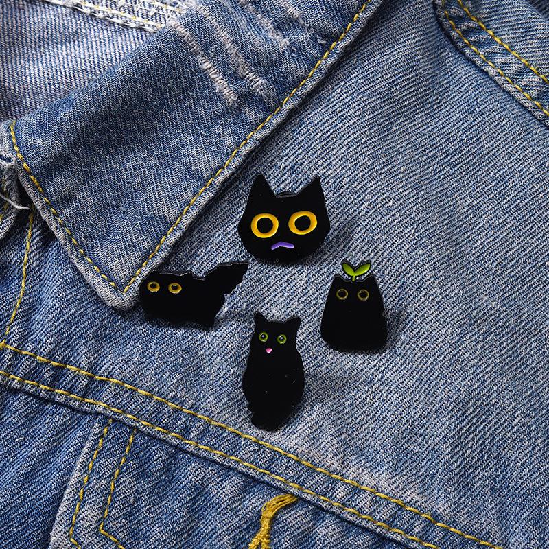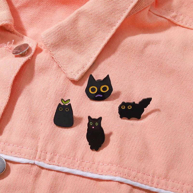 Broche de gatito negro cabeza de gato negro Miau enseñar metal chapado insignia pin de cintura cuadrado alejarse pin de cuello accesorios hebilla