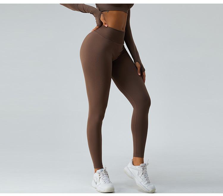 Pantalones de yoga con realce de cadera y cintura en V para mujer, ajustados, con efecto contracción abdominal, para correr y fitness, de otoño, transfronterizos