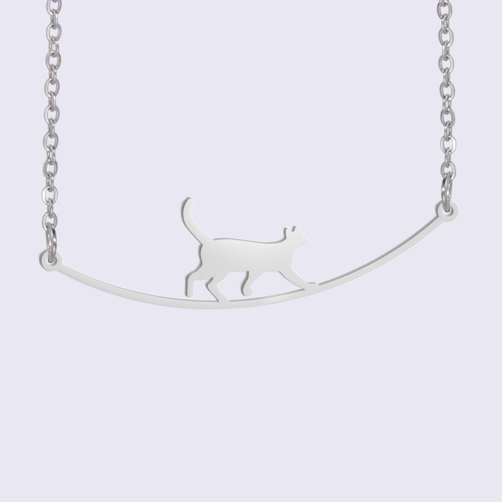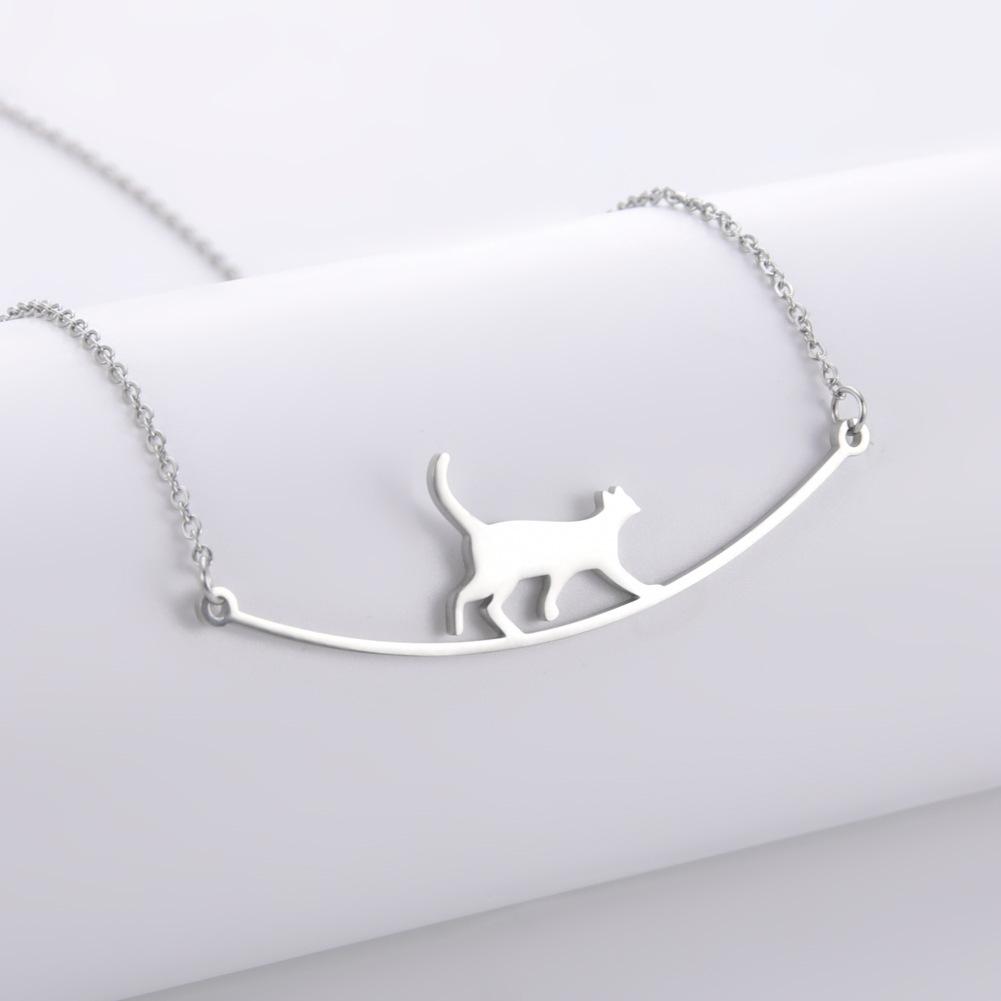 Fabricante Venta al por Mayor Joyería de Acero Titanio Cadena Clavícula Joyería Colgante de Gato Corte Acero Inoxidable Collar de Acero