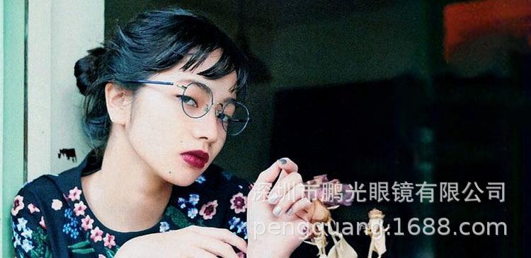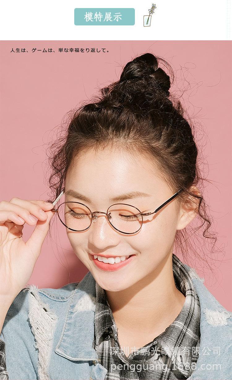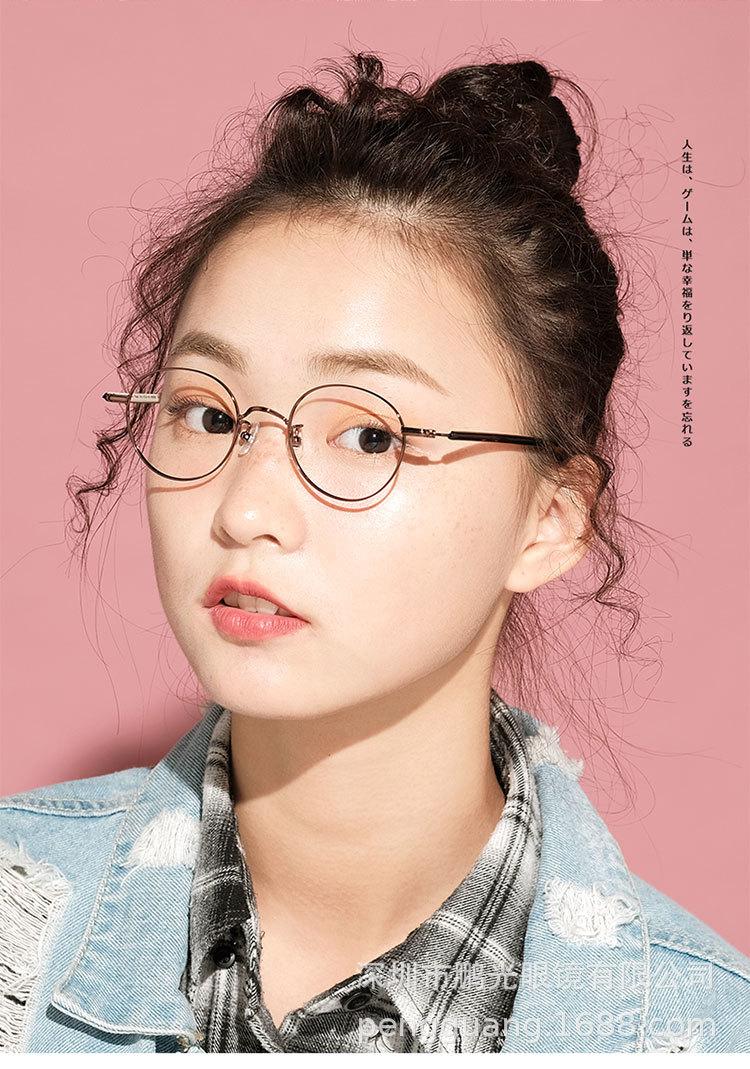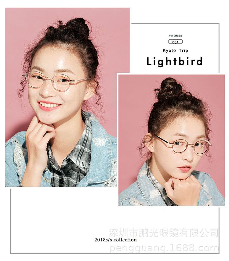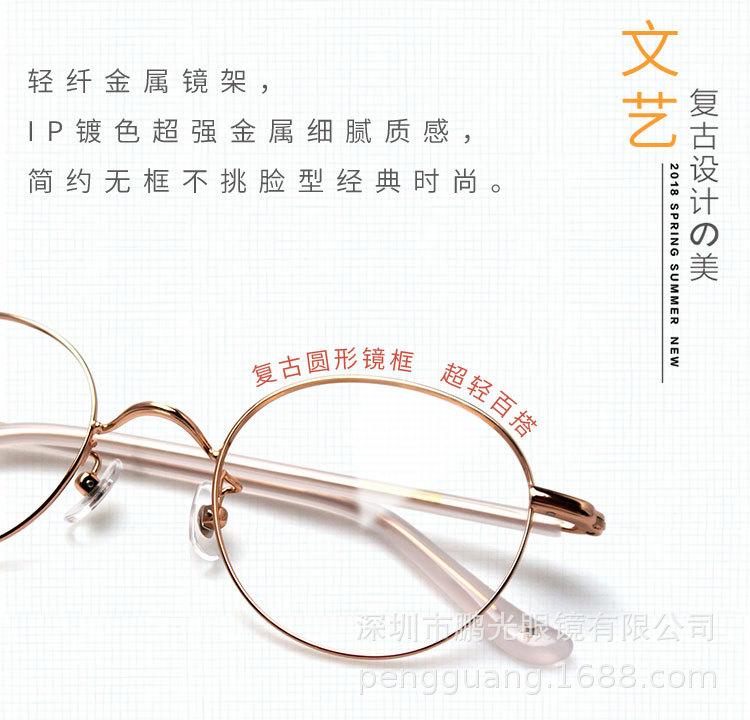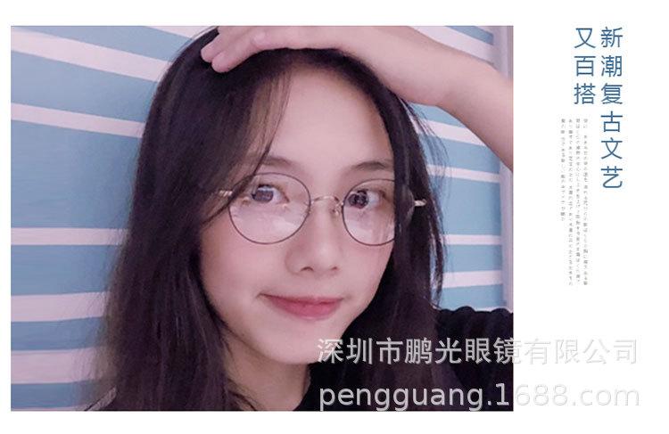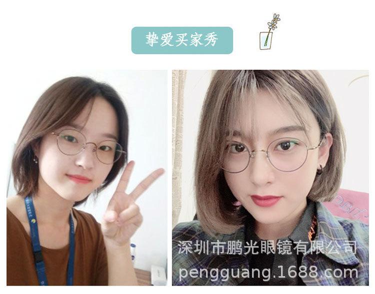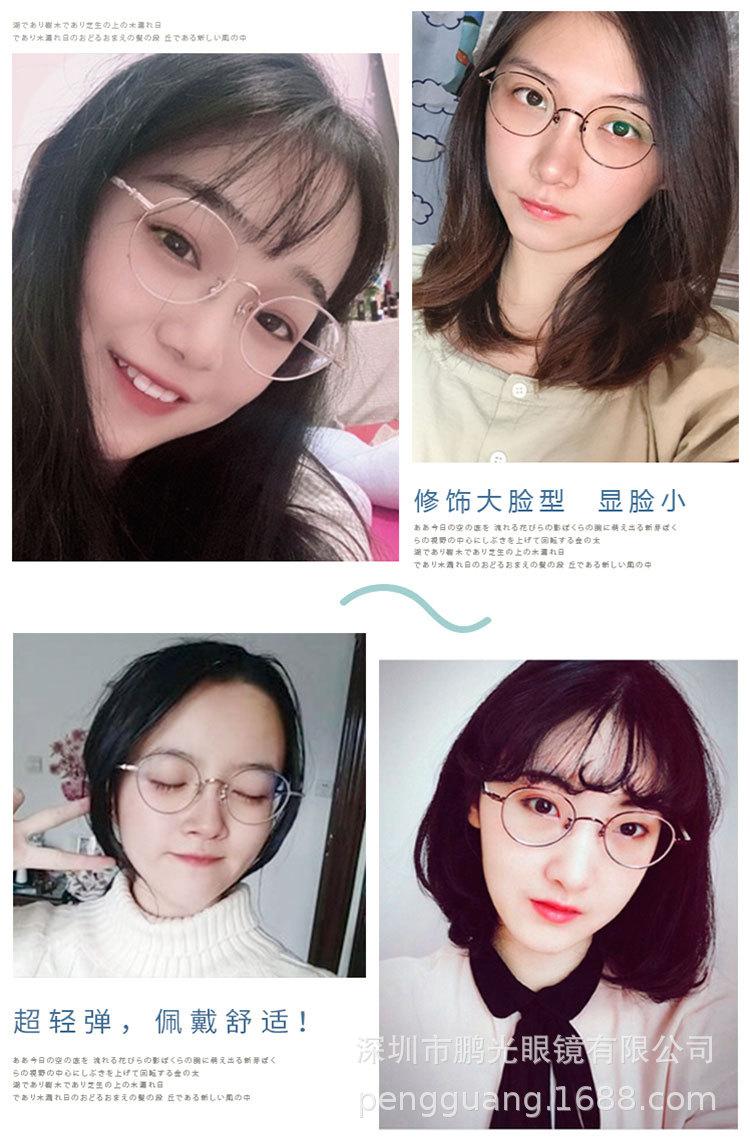 Gafas de Montura Redonda de Metal Ultraligero con Luz Antiazul para Miopía de Montura Completa para Mujer y Estilo Japonés de Luz Plana Retro de Placa Montura de Gafas para Cara Pequeña