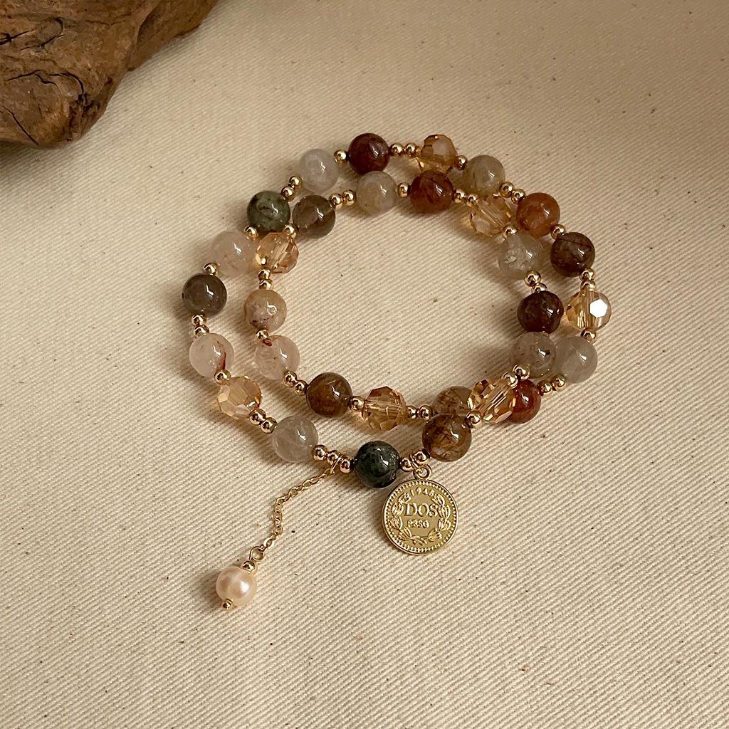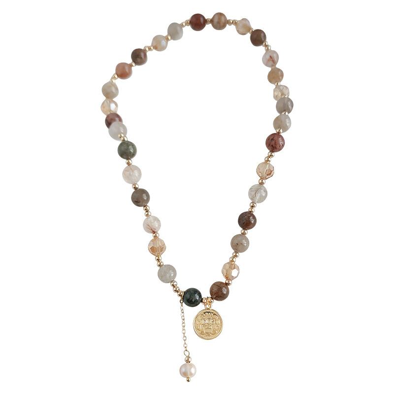 Cristal transparente de ágata gris. El color es irregular y contiene impurezas minerales. Esto es normal. La parte metálica está compuesta principalmente de cobre.