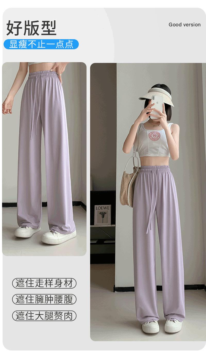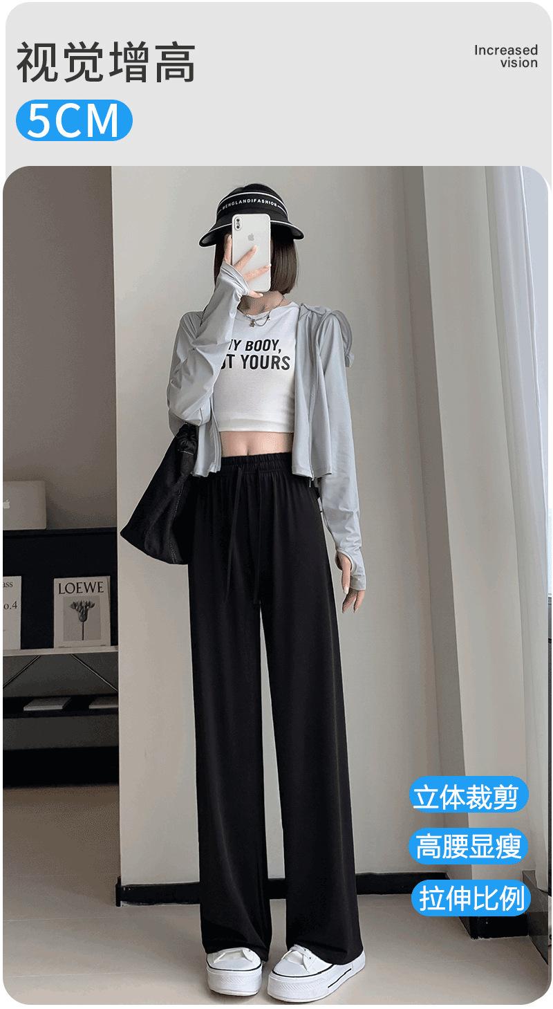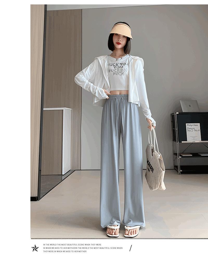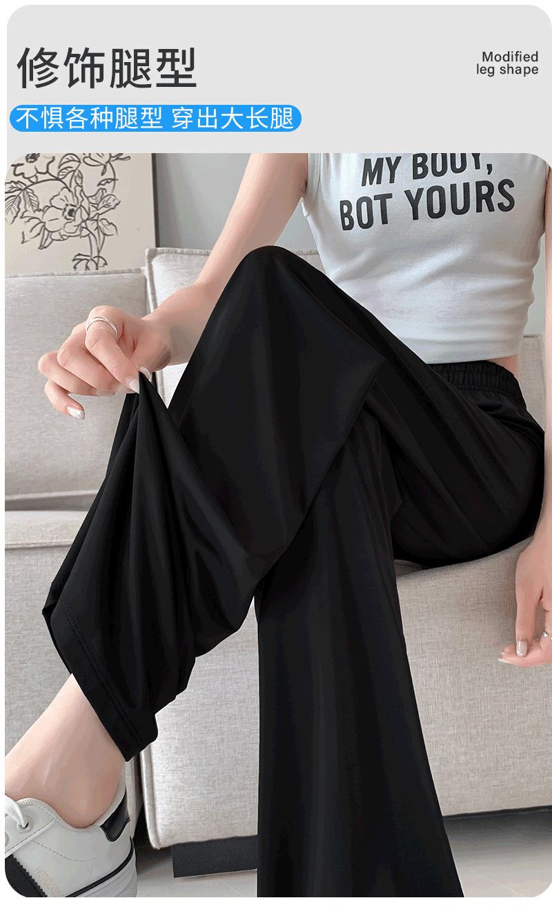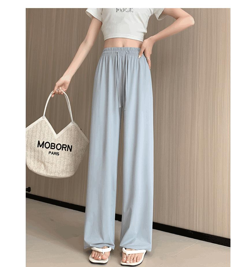 Pantalones de pierna ancha de seda de hielo con protección solar, pantalones rectos pequeños de verano para mujer, cintura alta con caída, adelgazantes, transpirables, casuales