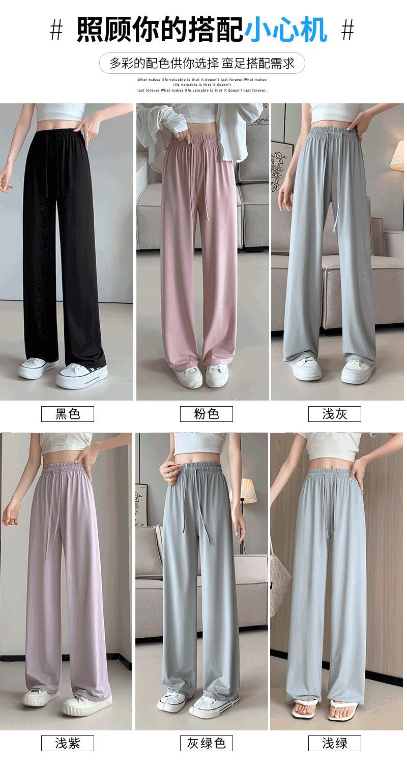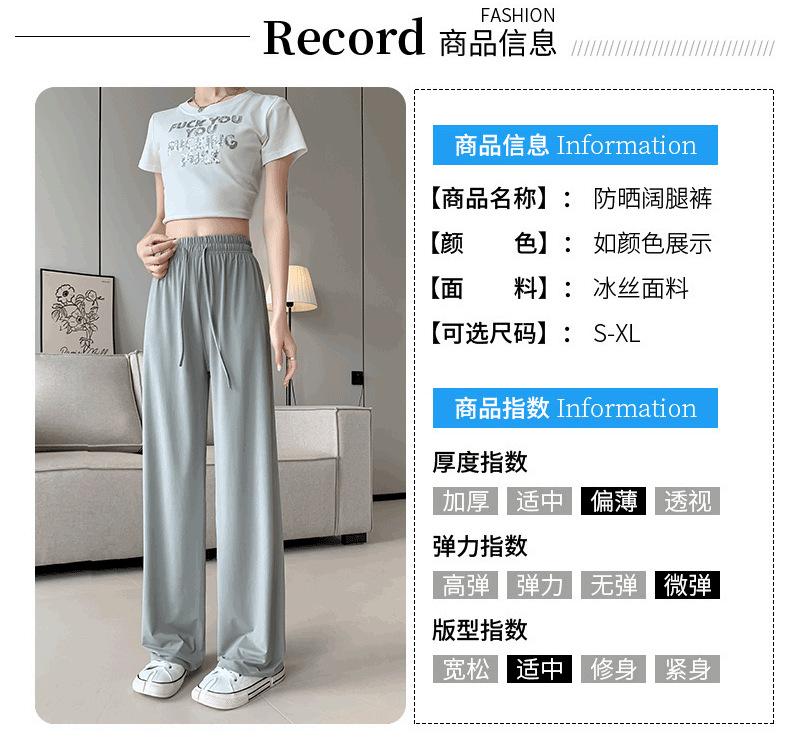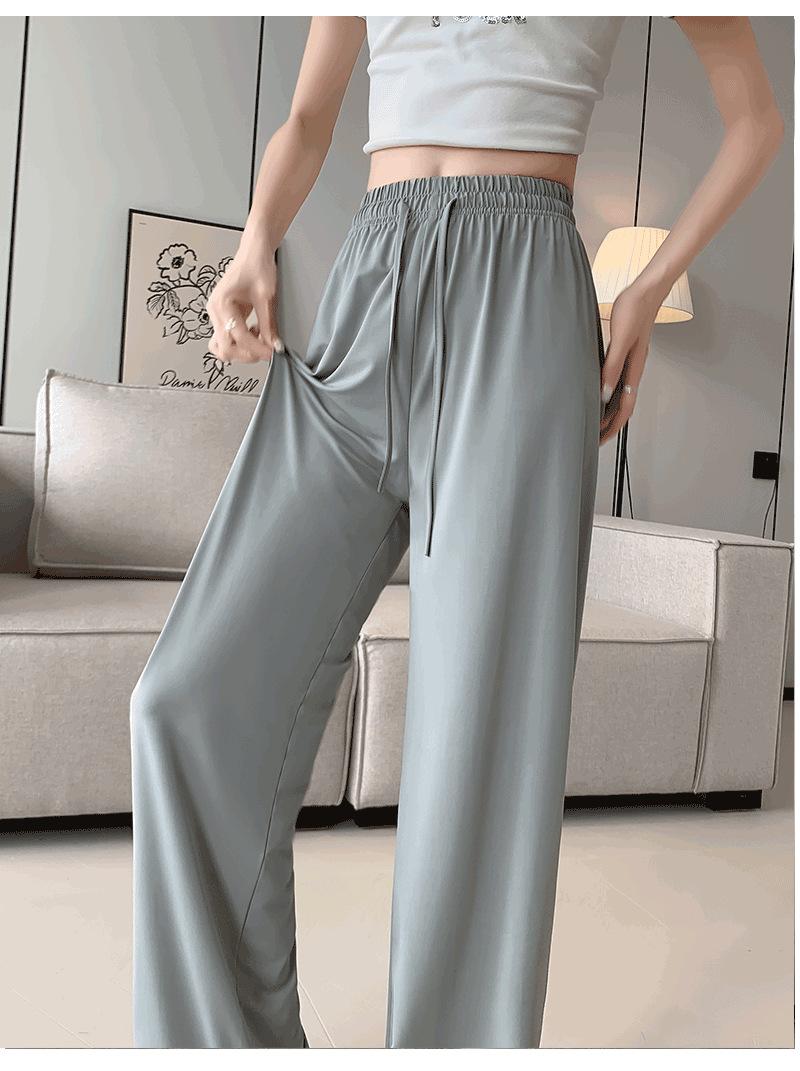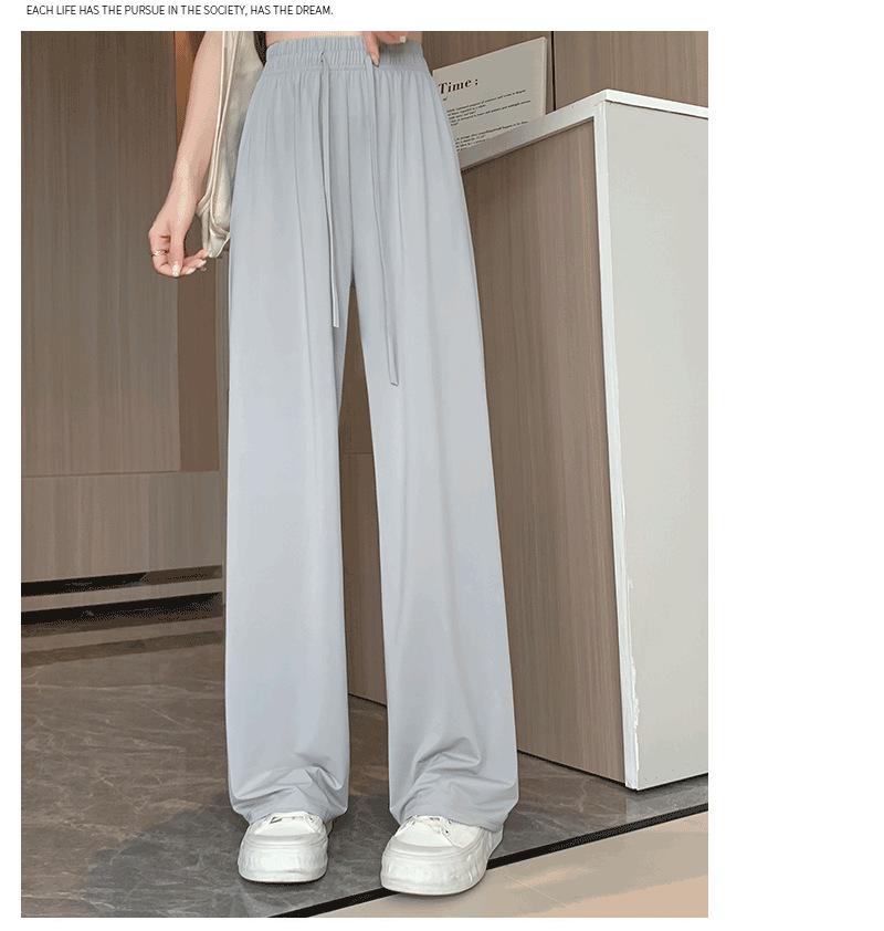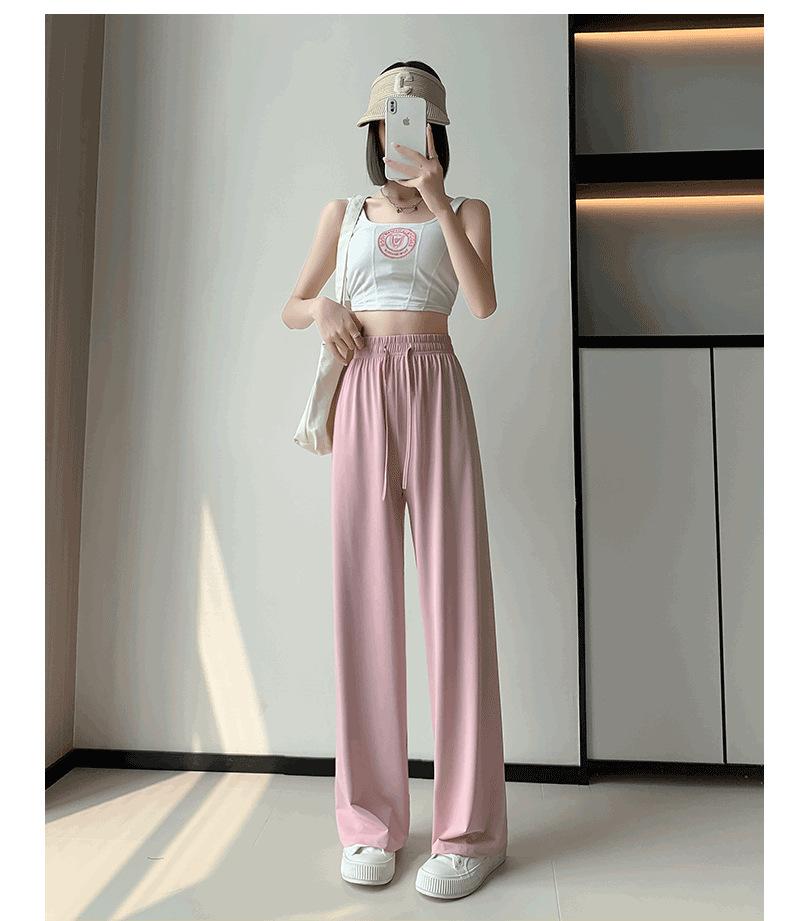 Pantalones de pierna ancha de seda de hielo con protección solar, pantalones rectos pequeños de verano para mujer, cintura alta con caída, adelgazantes, transpirables, casuales