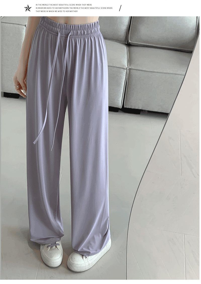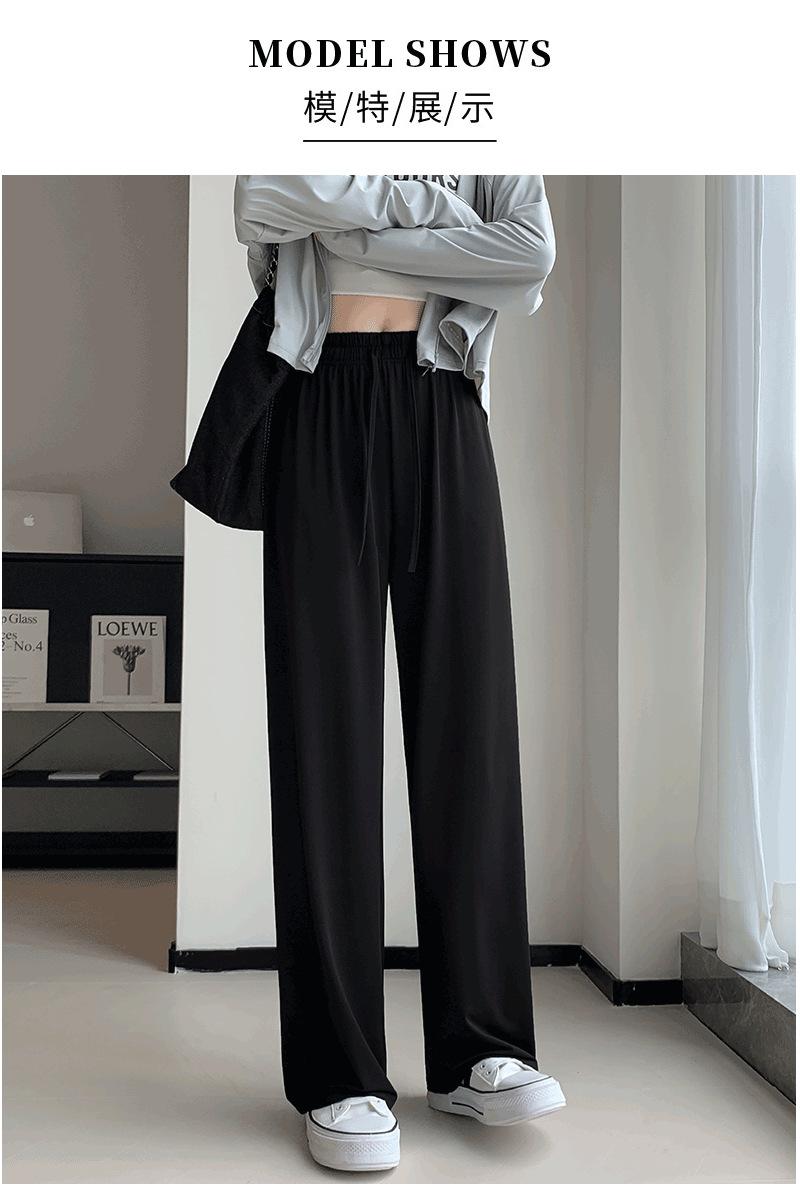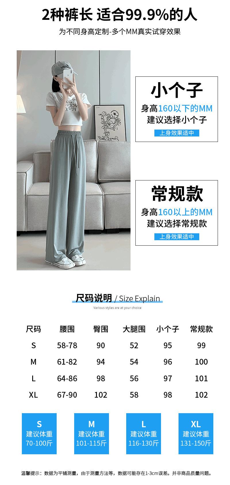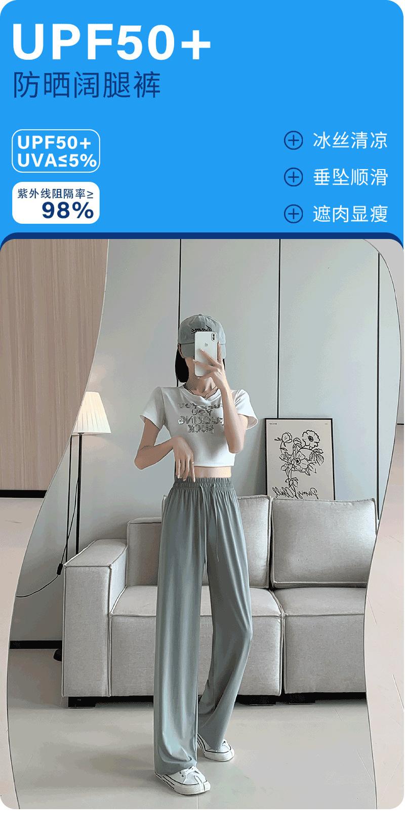 Pantalones de pierna ancha de seda de hielo con protección solar, pantalones rectos pequeños de verano para mujer, cintura alta con caída, adelgazantes, transpirables, casuales