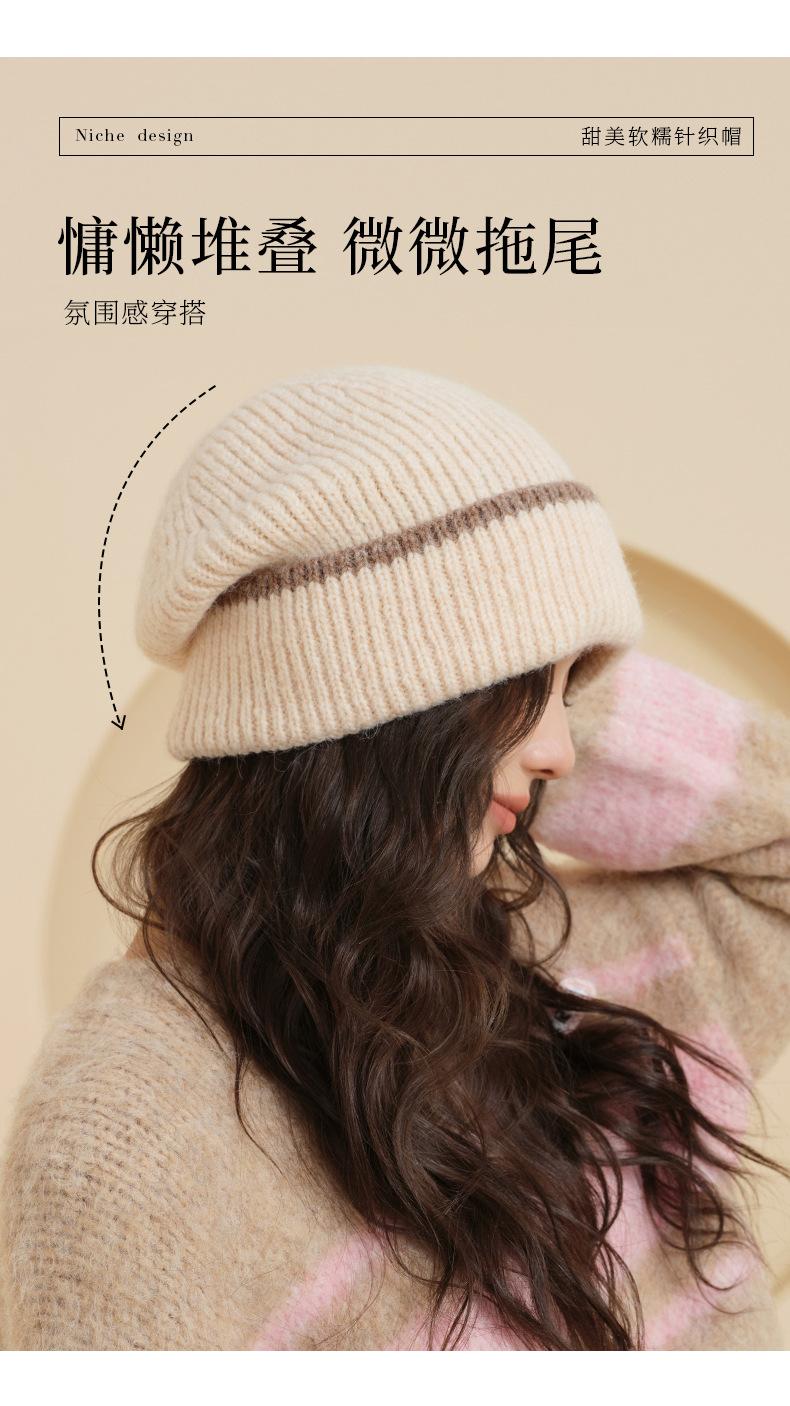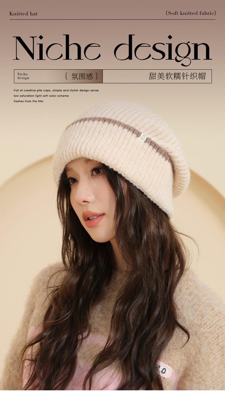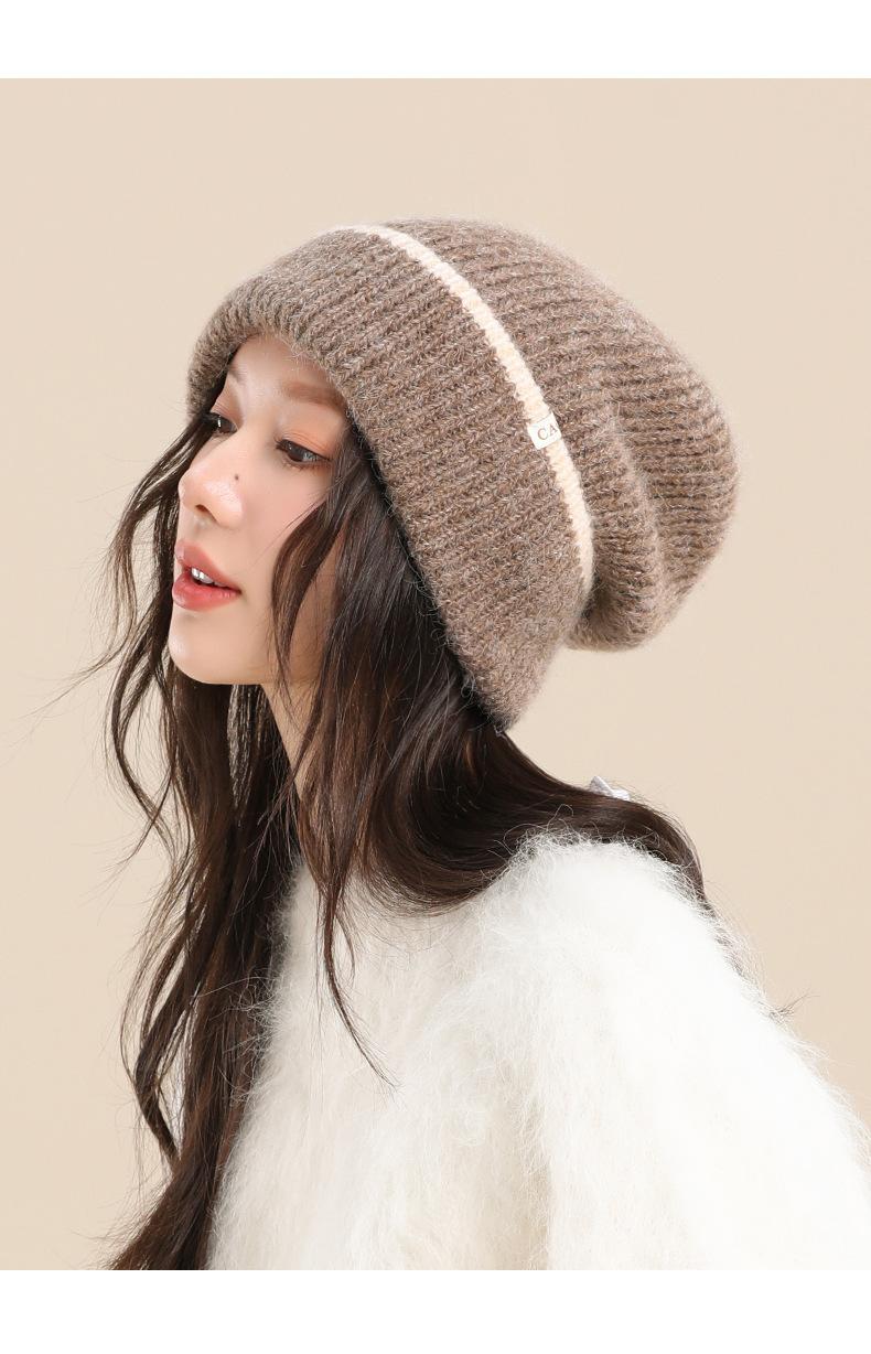 Gorro de punto de otoño e invierno para mujer, gorro holgado y cálido de estilo coreano con gran circunferencia de la cabeza, gorro frío con puntera a prueba de frío para exteriores