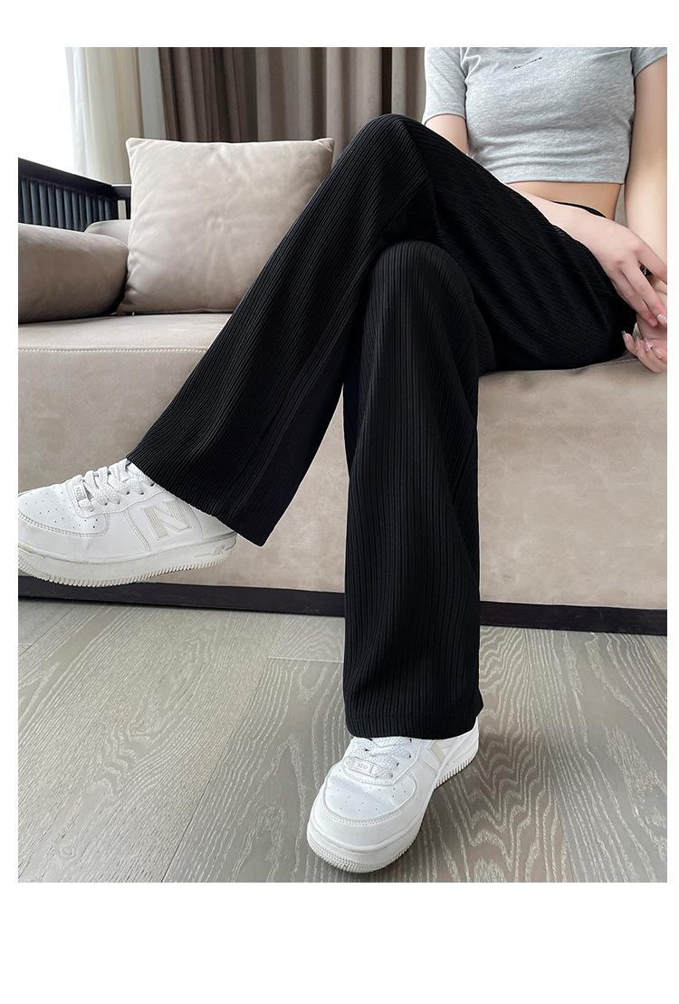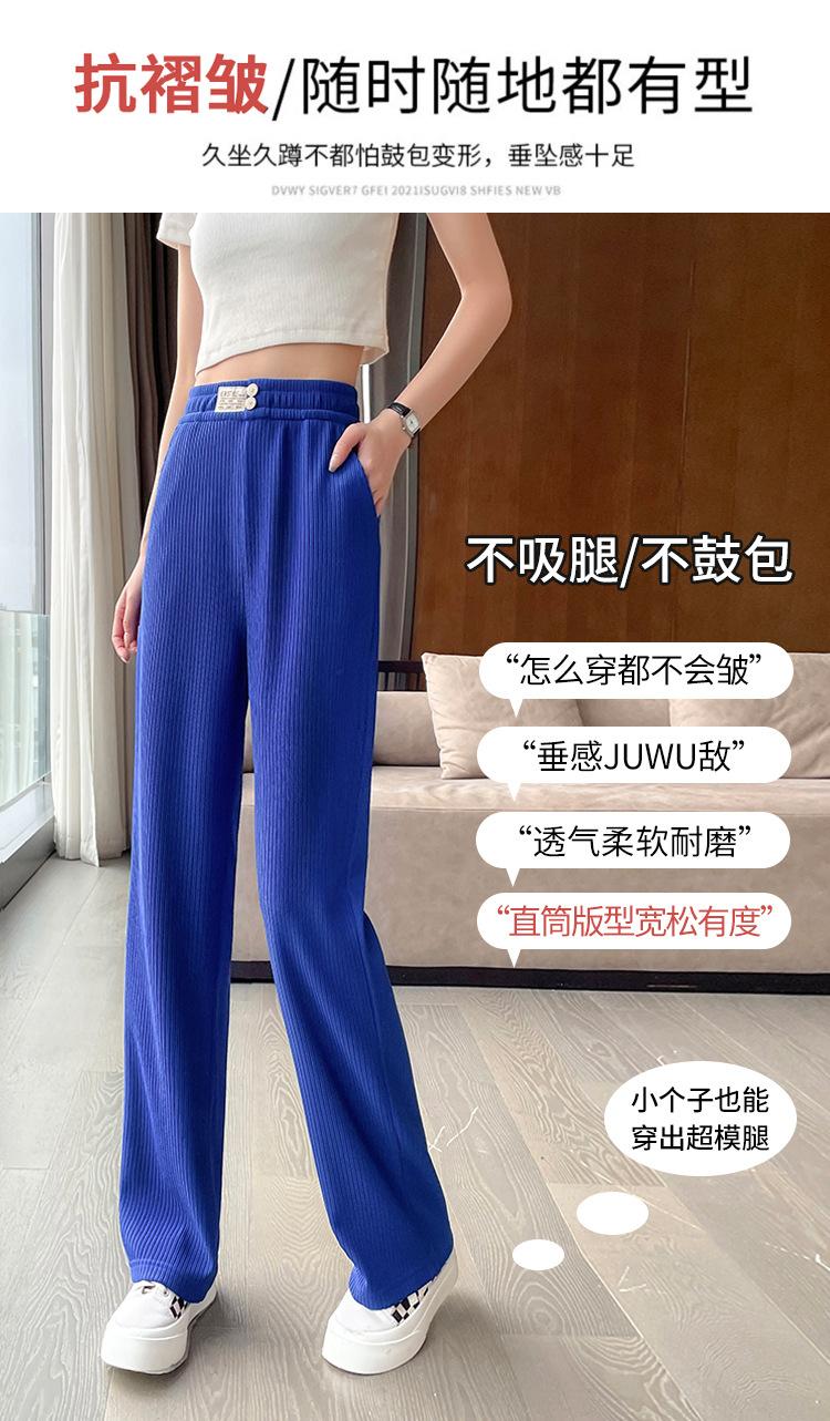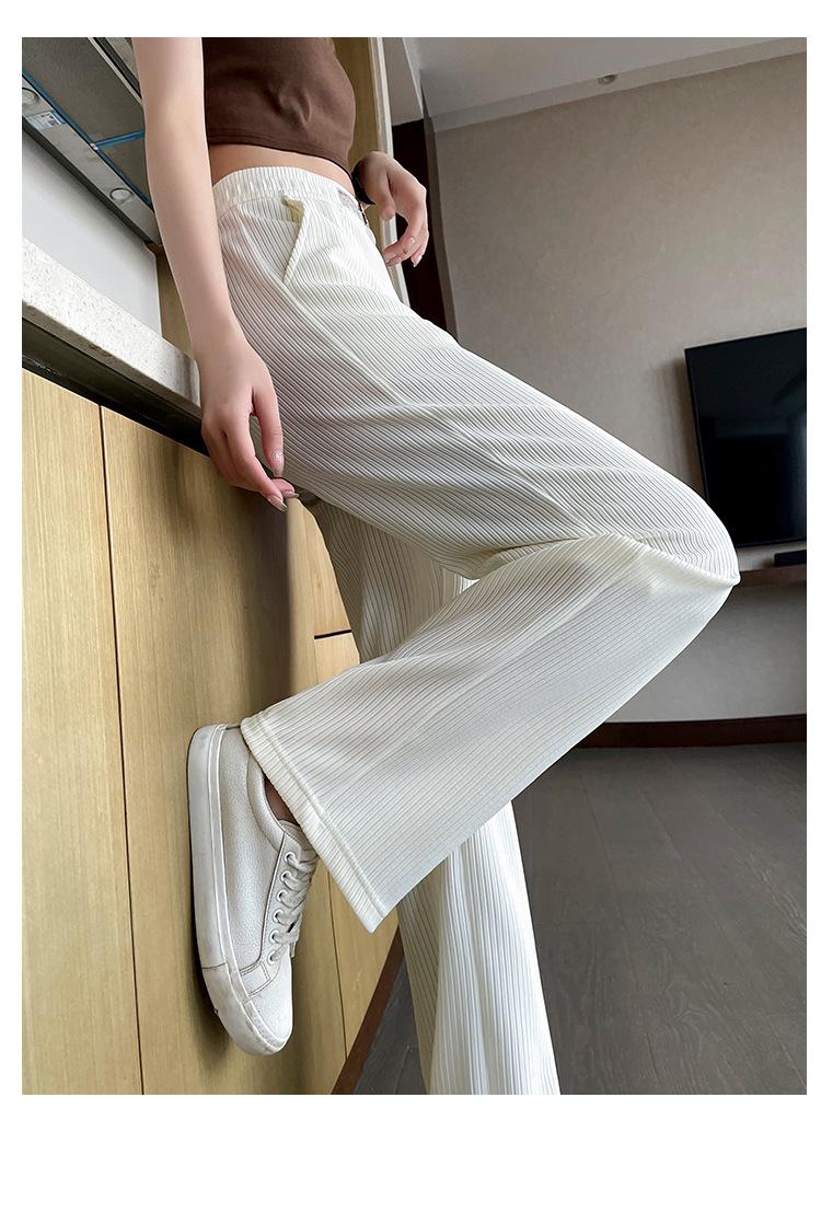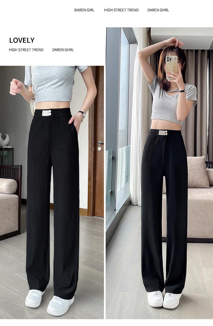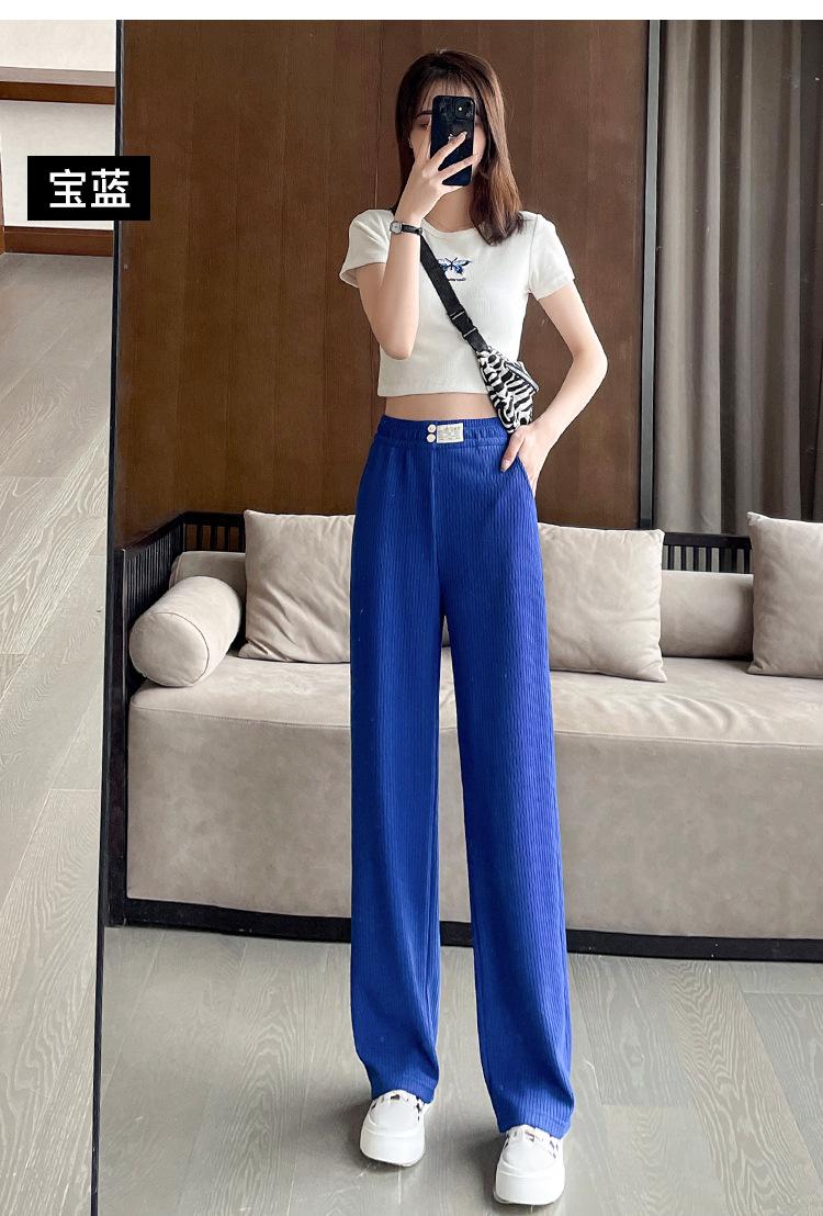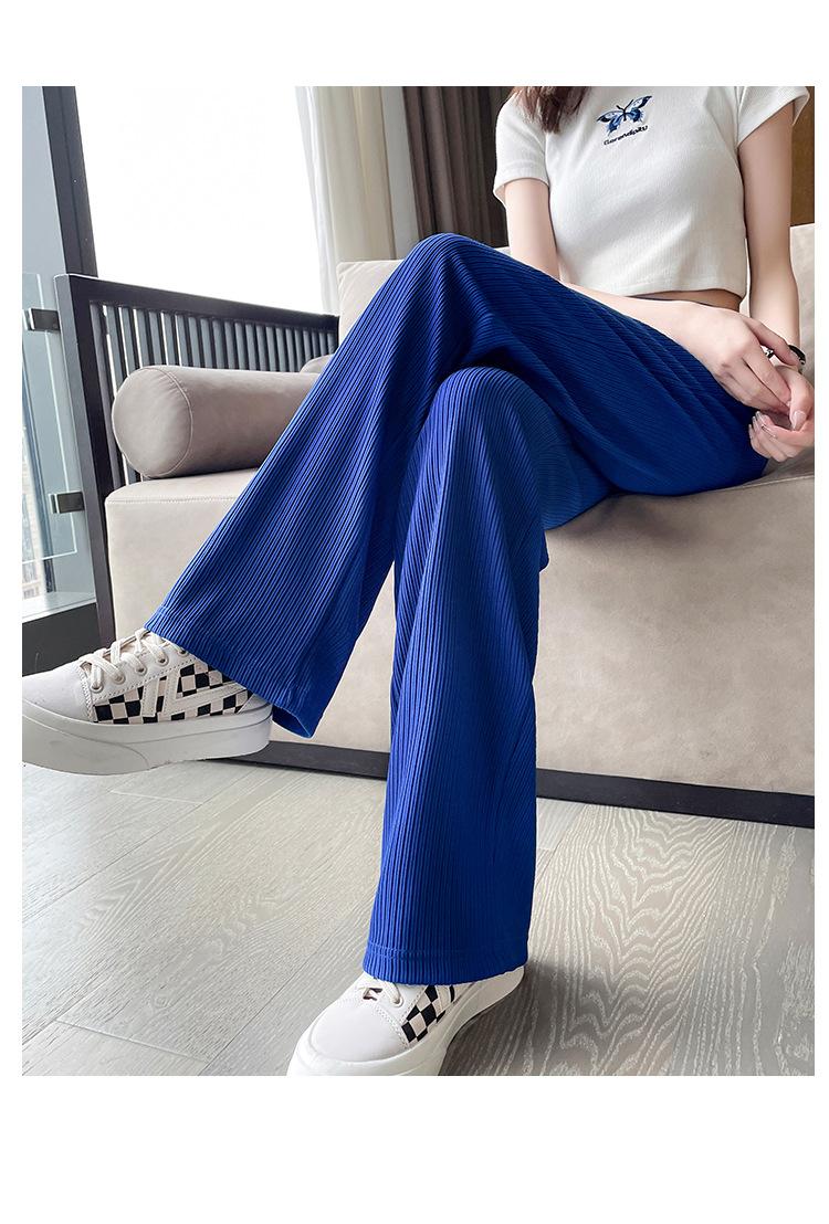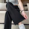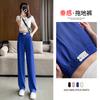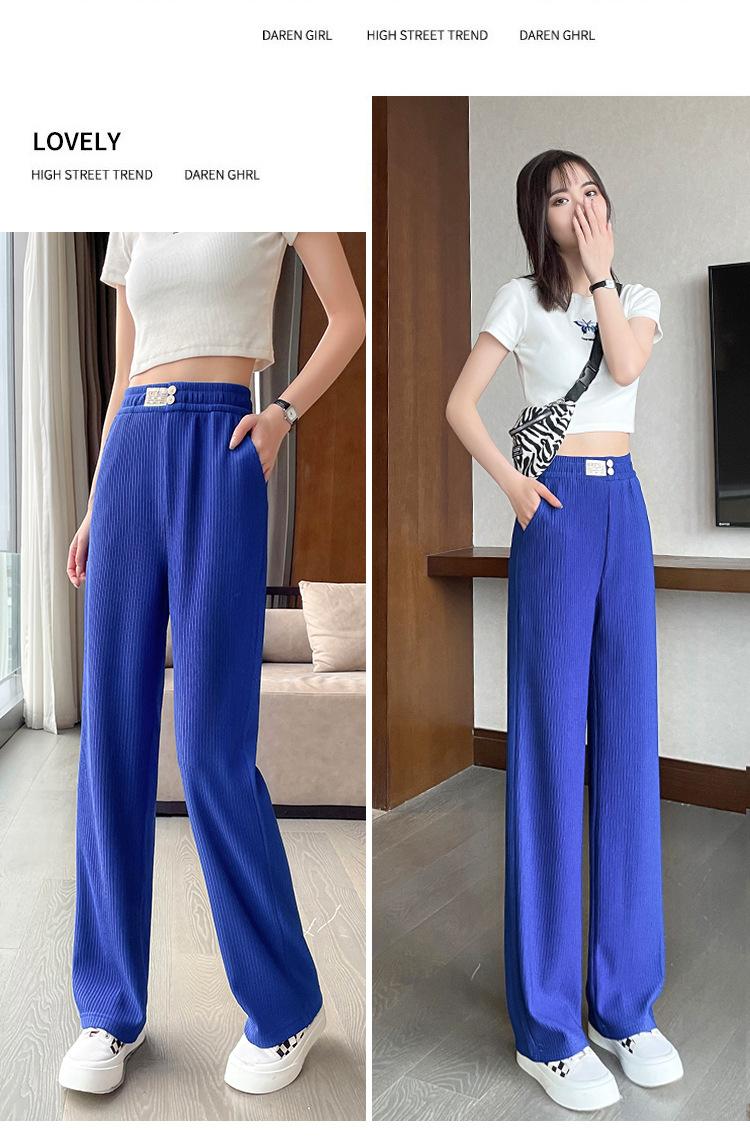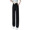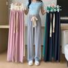 Pantalones deportivos de pierna ancha de seda de hielo negro para mujer, de cintura alta, drapeados, nuevos de verano 2025, azules, holgados, de pierna recta, casuales