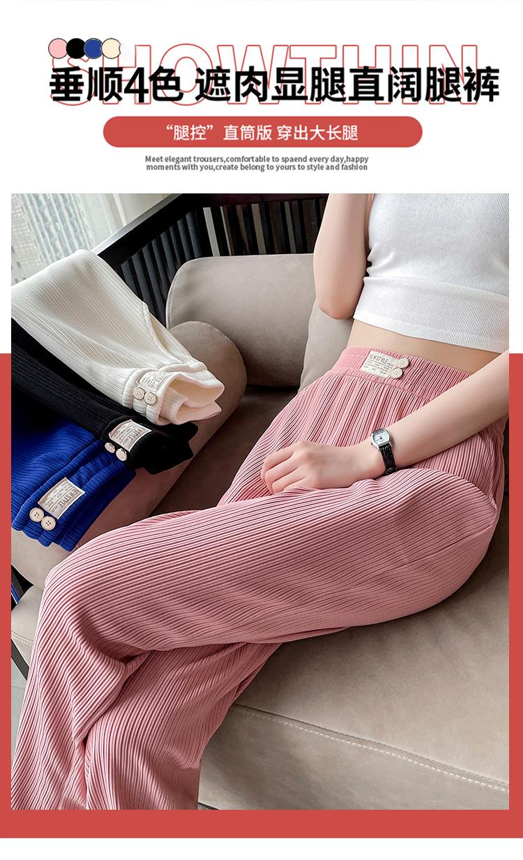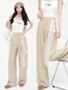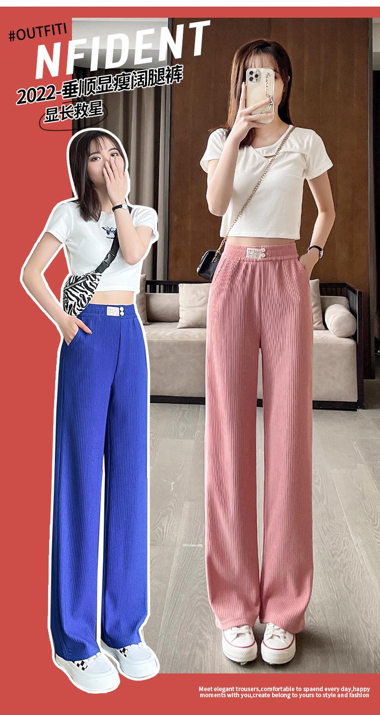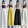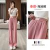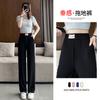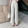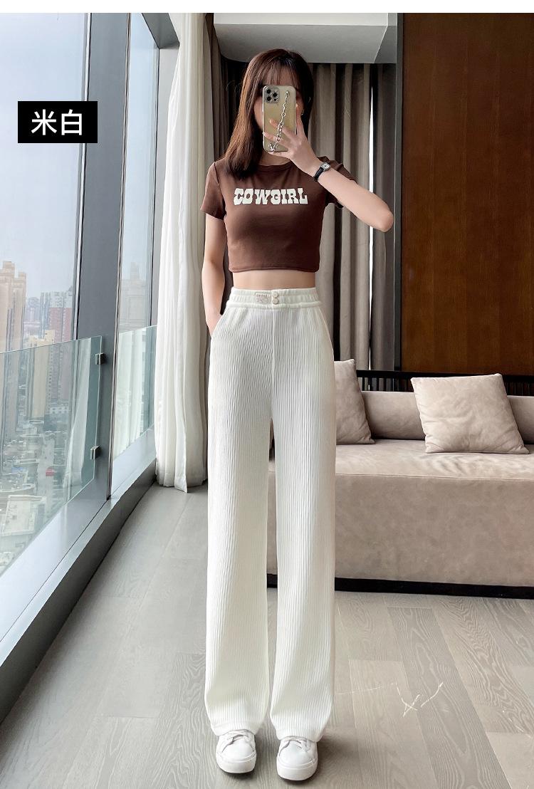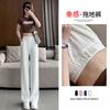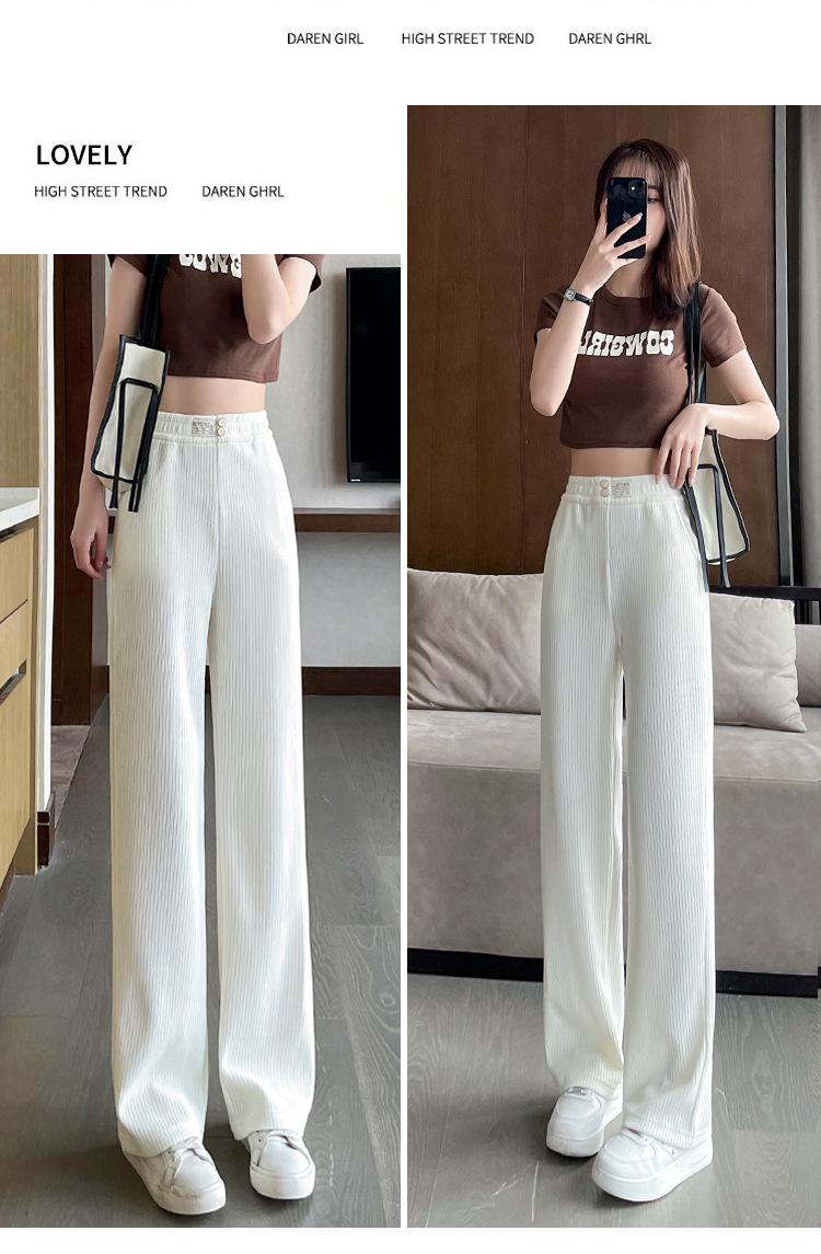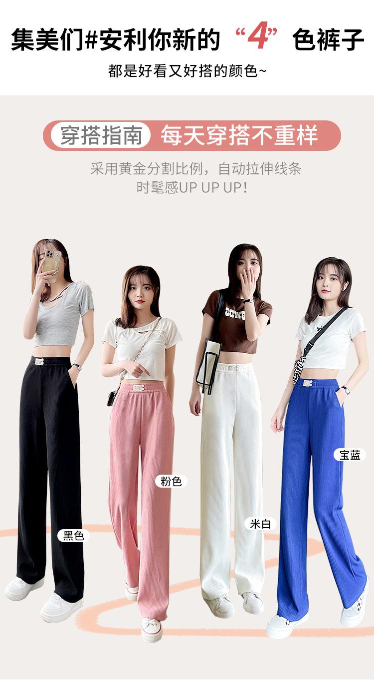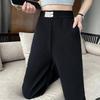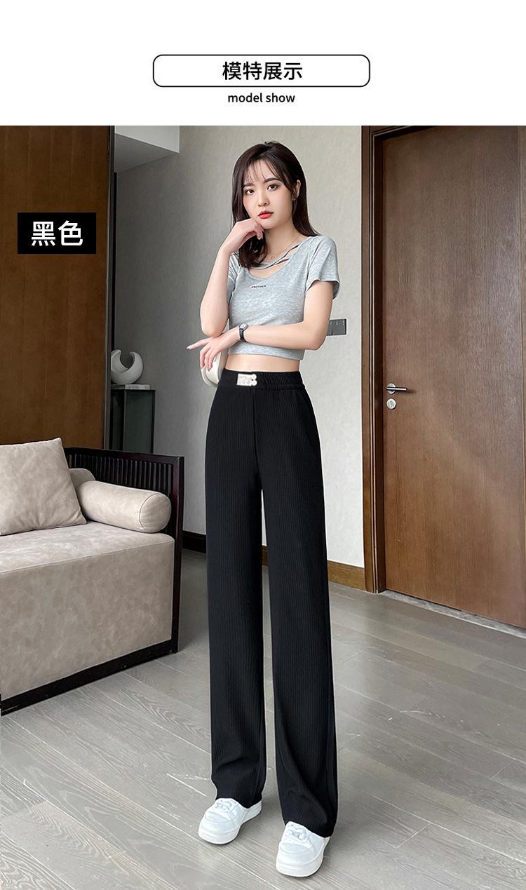 Pantalones deportivos de pierna ancha de seda de hielo negro para mujer, de cintura alta, drapeados, nuevos de verano 2025, azules, holgados, de pierna recta, casuales