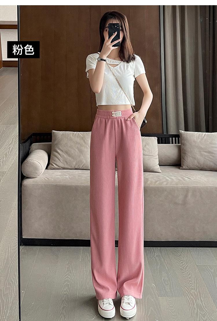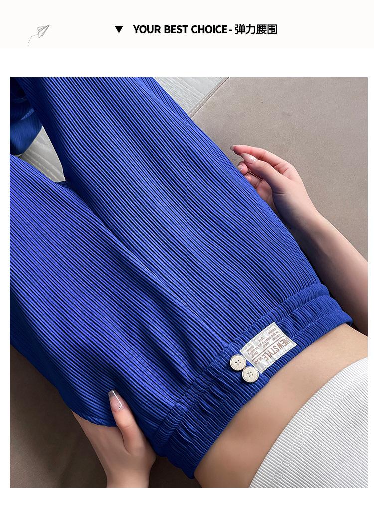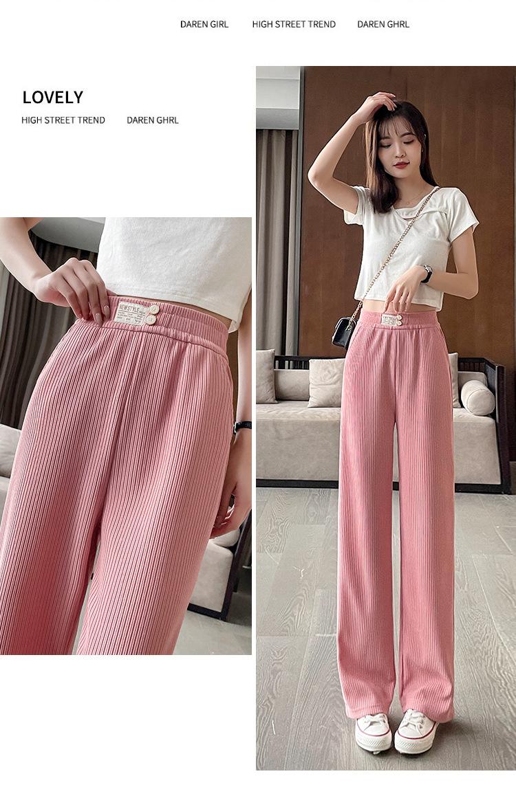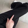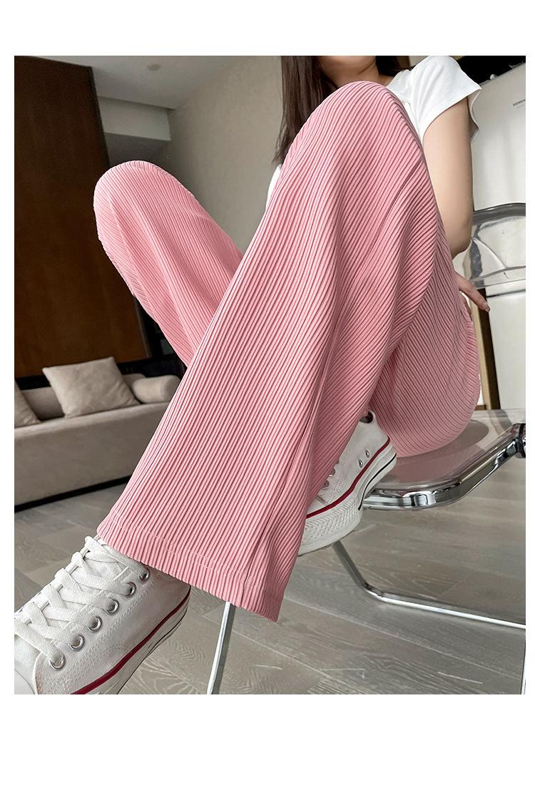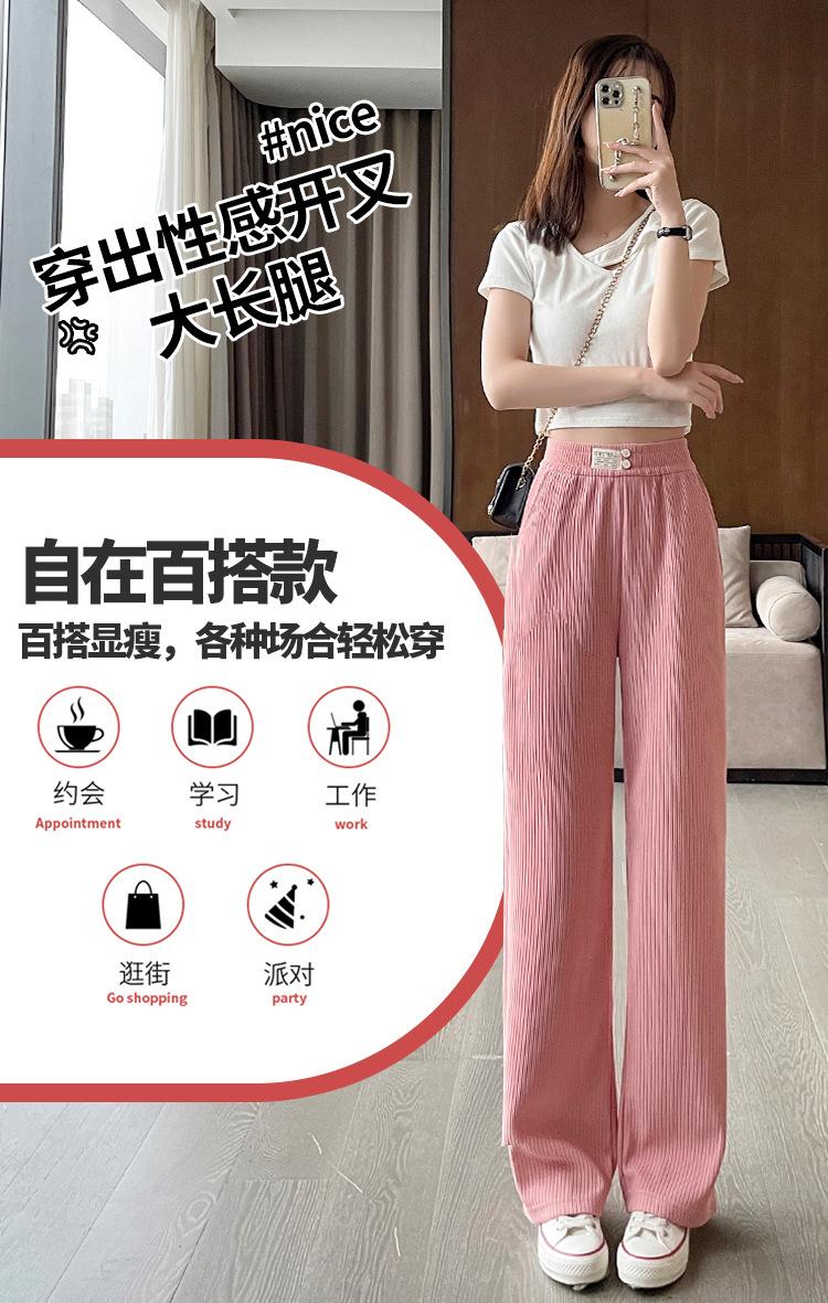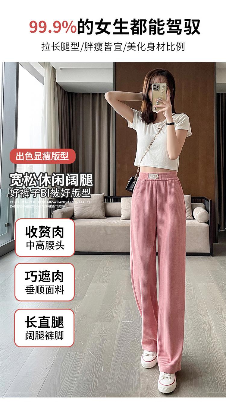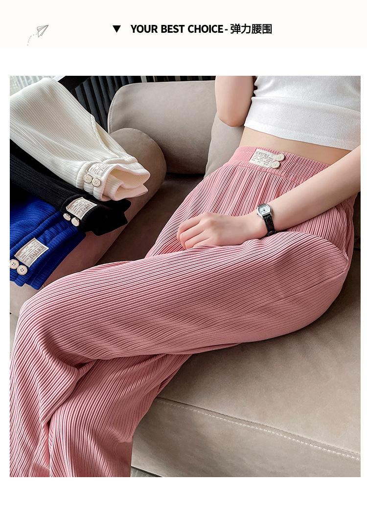 Pantalones deportivos de pierna ancha de seda de hielo negro para mujer, de cintura alta, drapeados, nuevos de verano 2025, azules, holgados, de pierna recta, casuales